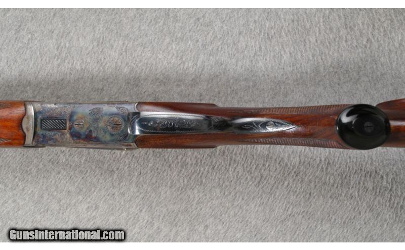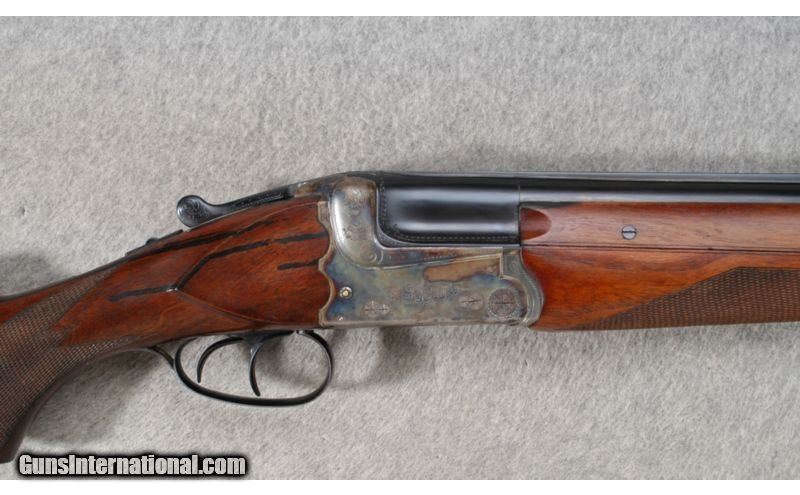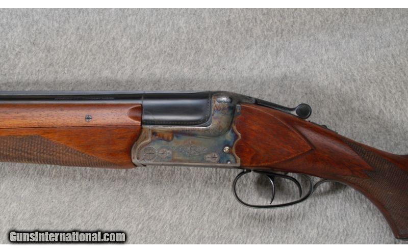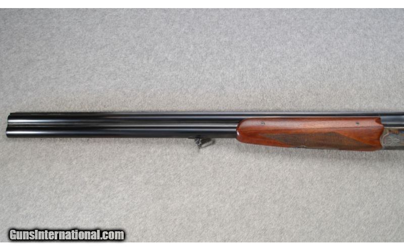 Description: Very nice European over and under shotgun. Case colored box-lock action with Greener bolt. Beautiful checkered walnut stock with raised cheek, plastic capped pistol grip and two piece forend. SOLD Caliber Info: 12 Gauge. Chambers: 2 3/4" chambered over and under with case colored box-lock action. Metal Condition: Very good. Wood Condition: Very good light handling marks. Bore Condition: Very good, bright and shiny. Barrels: 27 1/2" blued. Triggers: Double blued triggers. Stock: Checkered walnut with raised cheek. Stock Dimensions: 1 3/4" DAC, 3 1/8" DAH, 14 1/2" LOP. Fore End: Matching two-piece checkered. Butt Pad: Factory butt plate. Weight: 7 lb. Sights: Sold rib with sing. Item Location: Dundee, MI |
