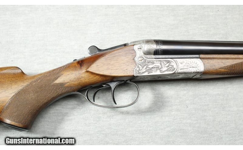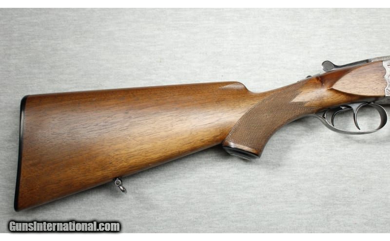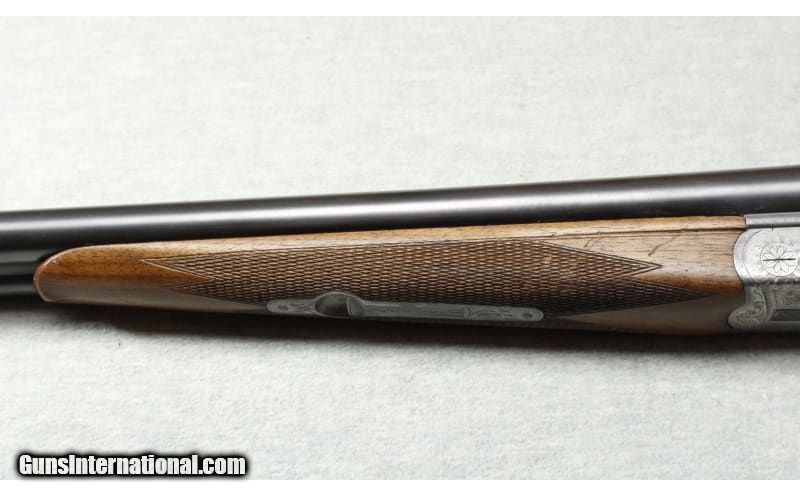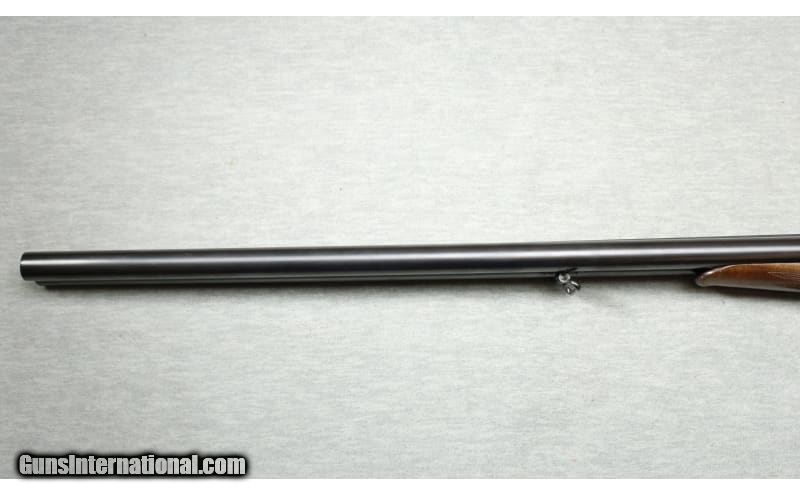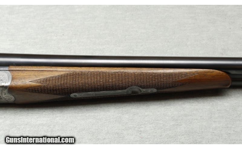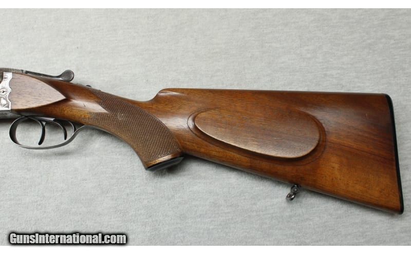 Description: Excellent condition, light wear, small scratches & dents. 20 Gauge SxS shotgun with 27 1/4" solid rib barrels choked IC / Mod. Double triggers, blued barrels, nicely engraved receiver, premium checkered wood forend and stock with right hand cheek rest and factory butt plate. 20 Gauge SOLD Metal Condition: Excellent Wood Condition: Excellent Bore Condition: Bright Barrels: 27 1/2 Triggers: Double triggers Stock Dimensions: 14 1/2" LOP Fore End: Checkered Butt Pad: Factory butt plate Sights: Single brass bead Chokes: IC / Mod Item Location: La Vista, NE |