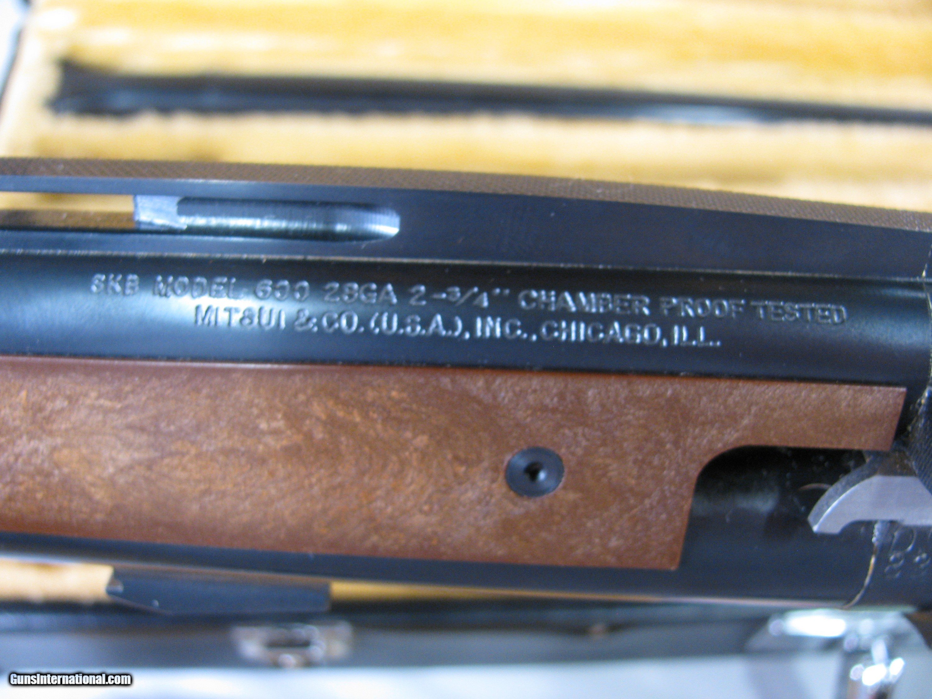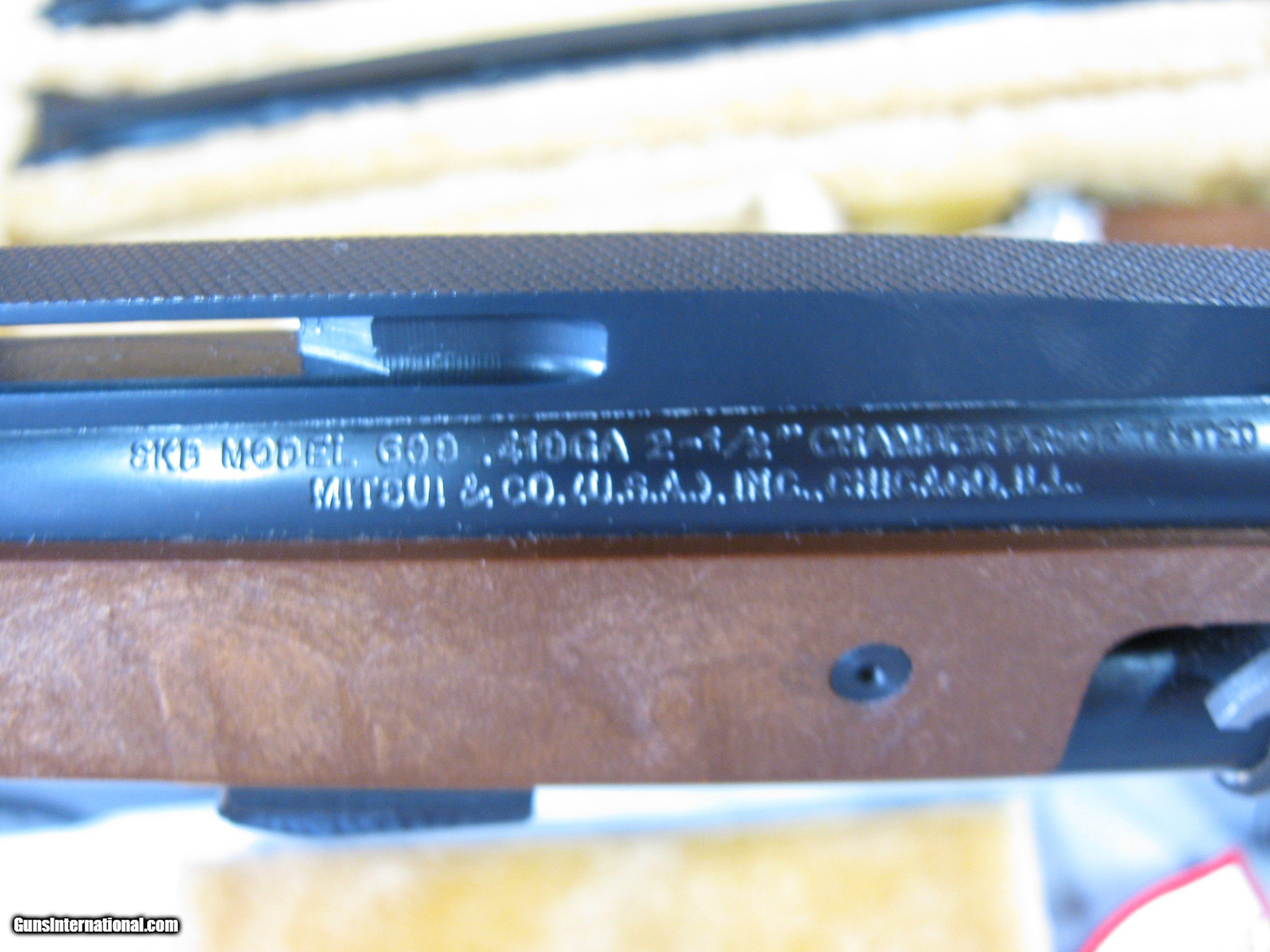 7908 SKB ITHACA MODEL 600 3 BARREL SKEET SET 410GA-28GA-20GA GAUGE 410 - 28" VENT RIB BARRELS SKT AND SKT CHOKED (.002 AND .003 CONSTRICTIONS) 2 1/2