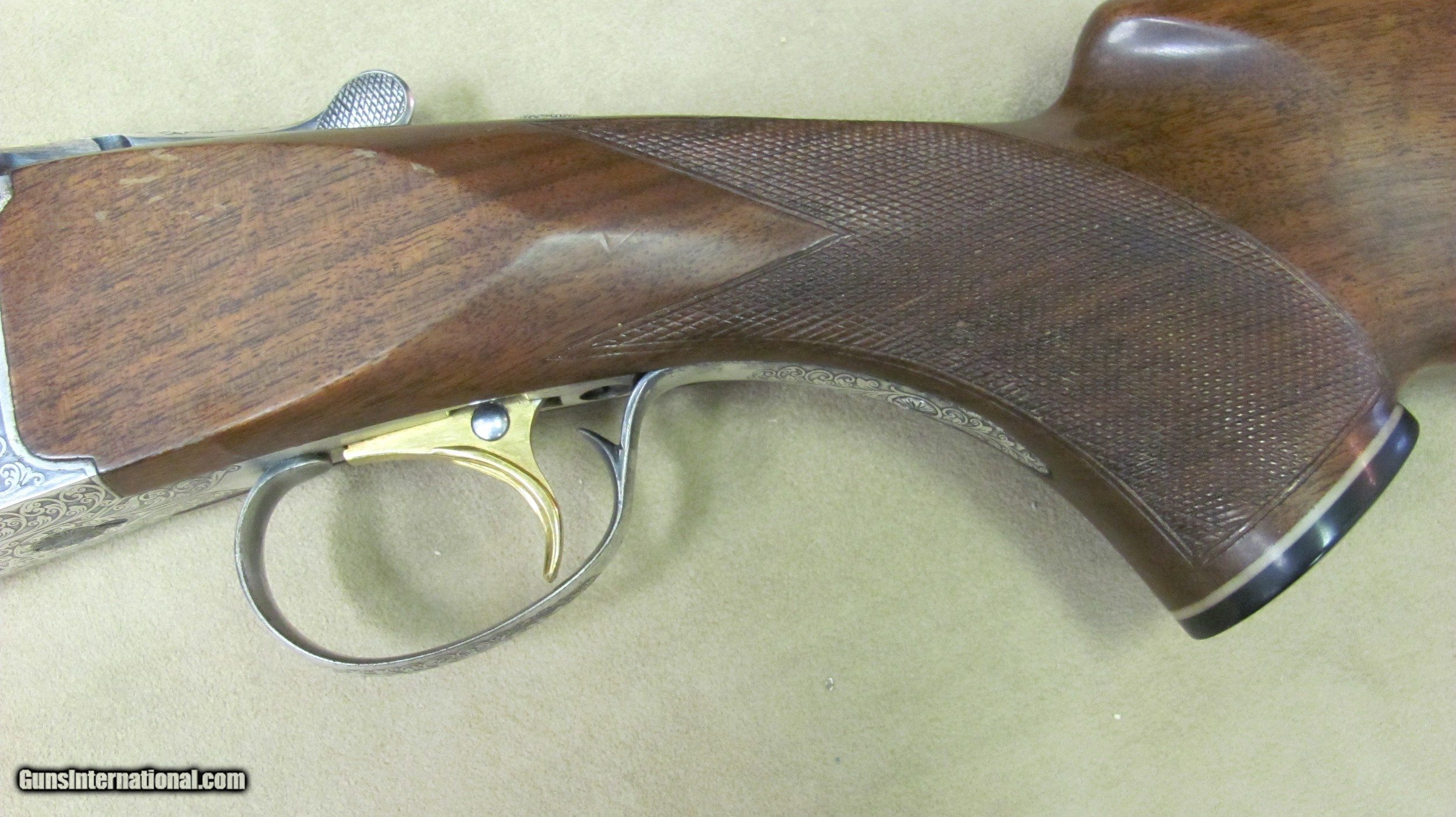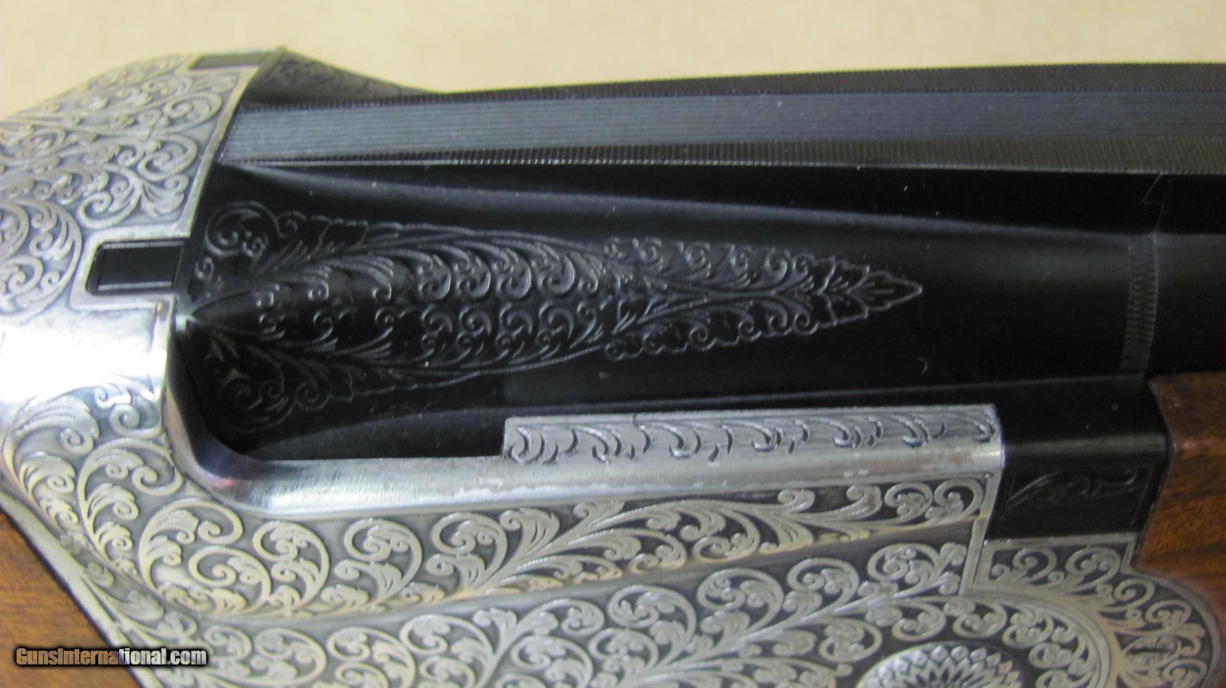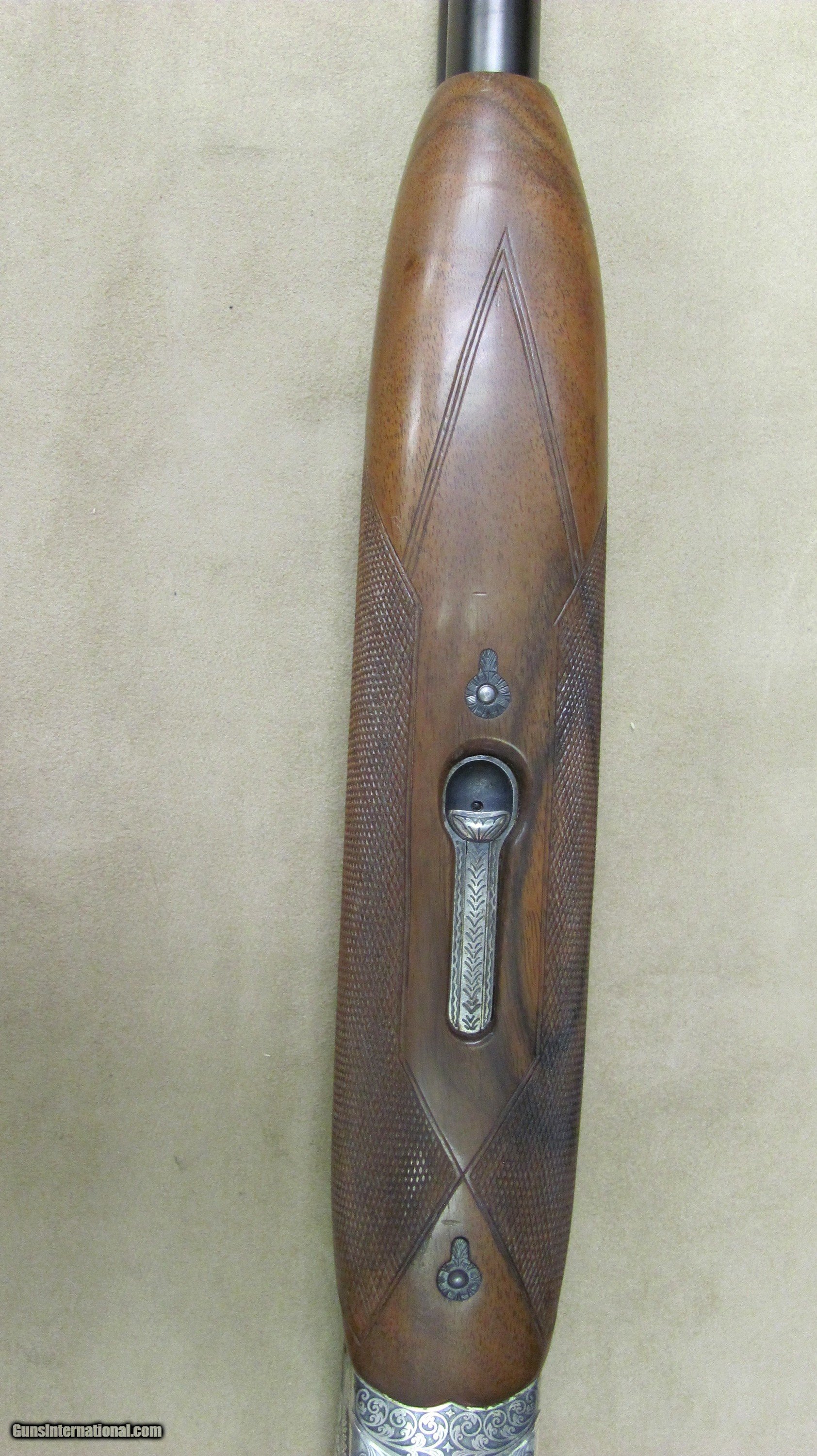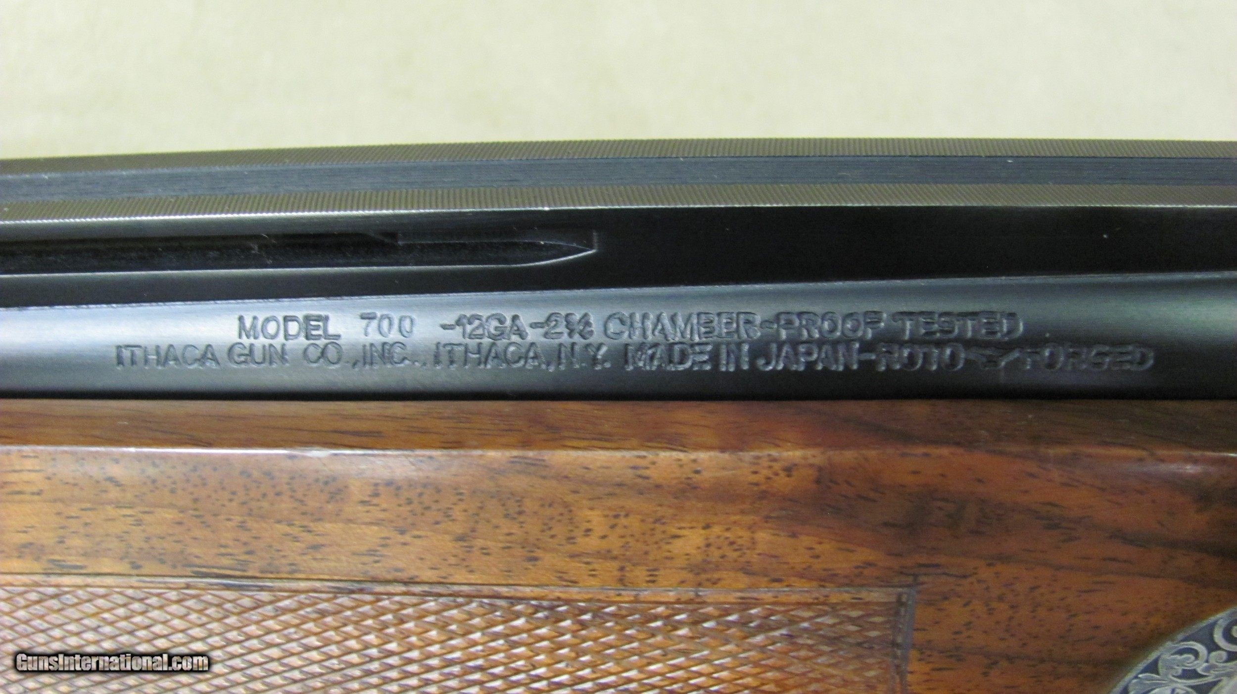 Description: Ithaca 700 Series O/U 12 Gauge shotgun custom crafted for Ithaca by SKB. This is a trap O/U shotgun with 30 inch ported barrel with vent rib. The shotgun has an adjustable stock with figured walnut on the stock and forend. These shotgun were manufactured between 1969 and 1975 and this one remains in excellent condition. 5 Briley Screw in chokes and Briley papers come with this shotgun. SOLD Shotgun Gauge: 12 Gauge Manufacturer: SKB for Ithaca Model: 700 Series Serial Number: CM 714135 Barrel Length: 30 Inches Chambers: 2 3/4 Inches Ejectors: Yes Condition: Excellent Metal Condition: Excellent Wood Condition: Excellent Bore Condition: Excellent Barrels: Ported with Vent Rib Triggers: Single Select Stock Comb: 1 1/2 Inches Stock Heel: 2 Inches (Adj. Butt Pad) Stock Cast: None Butt Pad: Adjustable Butt Pad LOP: 14 3/8 Rib: Raised Vent Rib Finish: Original Weight: 8 lbs. 8 oz. Manufacture Date: 1969-1975 Chokes: Briley (5) Screw In Chokes Engraving: Heavily Engraved Proof:Nitro: Nitro |