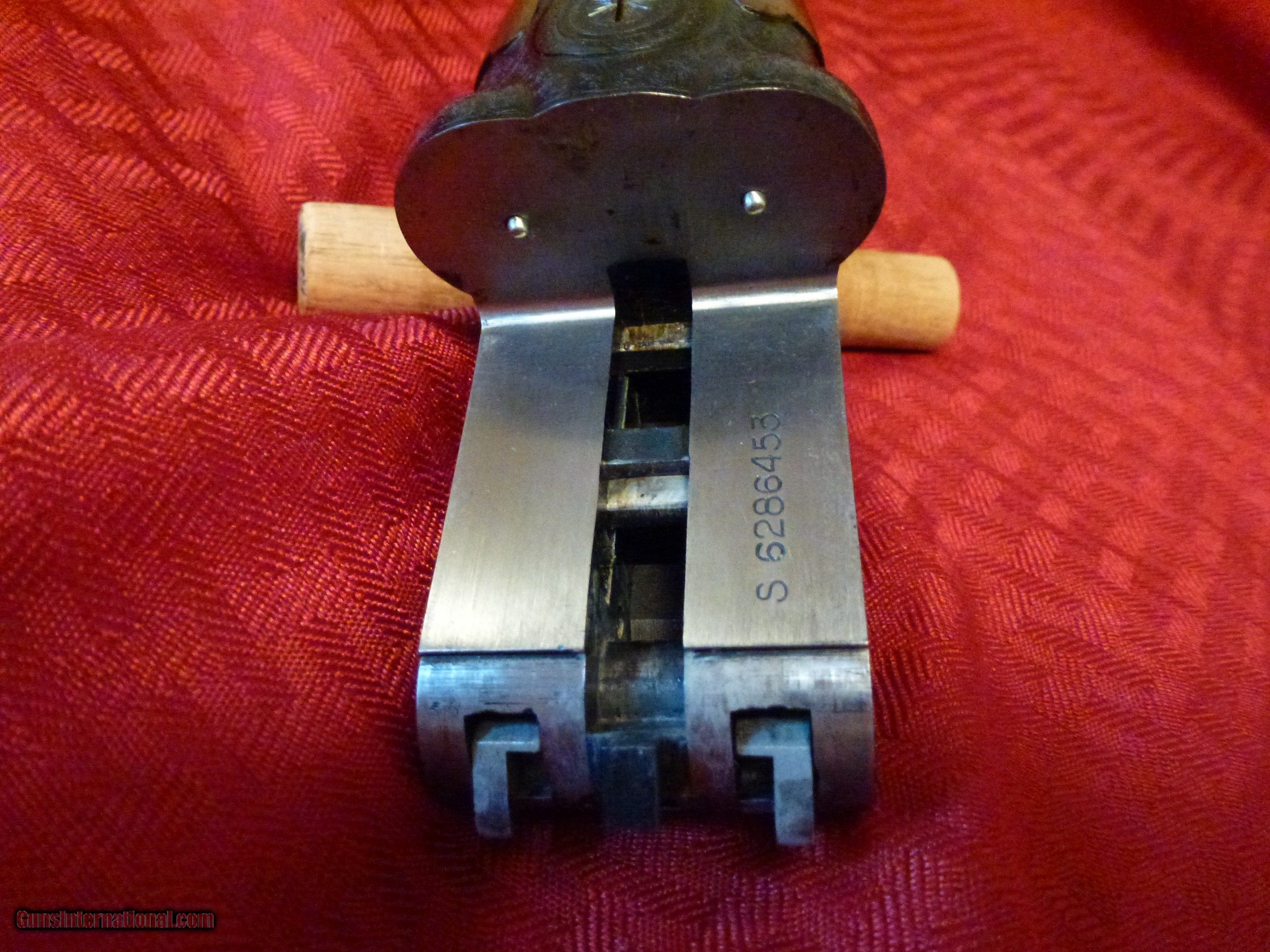 Description: This is a beautiful Ithaca by SKB (Japan) Model 280 side by side shotgun in 20 gauge M/IC and a 3 inch chamber. I would rate the metal at 99%. It has gold SST, ejectors, raised matte flat filed rib and chrome barrels. The blued receiver has hand cut game scene with scroll engraving wrapping around the receiver. I would rate the checkered walnut stock at 96% due to light handling marks. It has an English straight grip stock and beavertail forend. There is no box with this gun. Please e-mail me with any questions as NO RETURNS ARE ALLOWED. Shipping is included in the price of this gun. SOLD Shotgun Gauge: 20 Gauge Manufacturer: SKB (Japan) Model: 280 Serial Number: S6286453 Barrel Length: 25 inches Chambers: 3 inch Ejectors: Yes Condition: Excellent Metal Condition: 99% Wood Condition: 96% Bore Condition: Excellent Barrels: 25 inches Barrel Type: Side by Side Action: Boxlock Triggers: Gold SST Stock: Checkered Walnut Straight Grip Stock Comb: 1 1/2 inches Stock Heel: 2 3/8 inches Stock Cast: Zero Fore End: Beavertail Butt Pad: Plastic Ithaca-SKB Buttplate LOP: 14 1/4 inches Rib: Raised Matte Flat Filed Finish: Blued Manufacture Date: 1970 - 1977 Chokes: M/IC Choke Left: M Choke Right: IC Engraving: Yes |