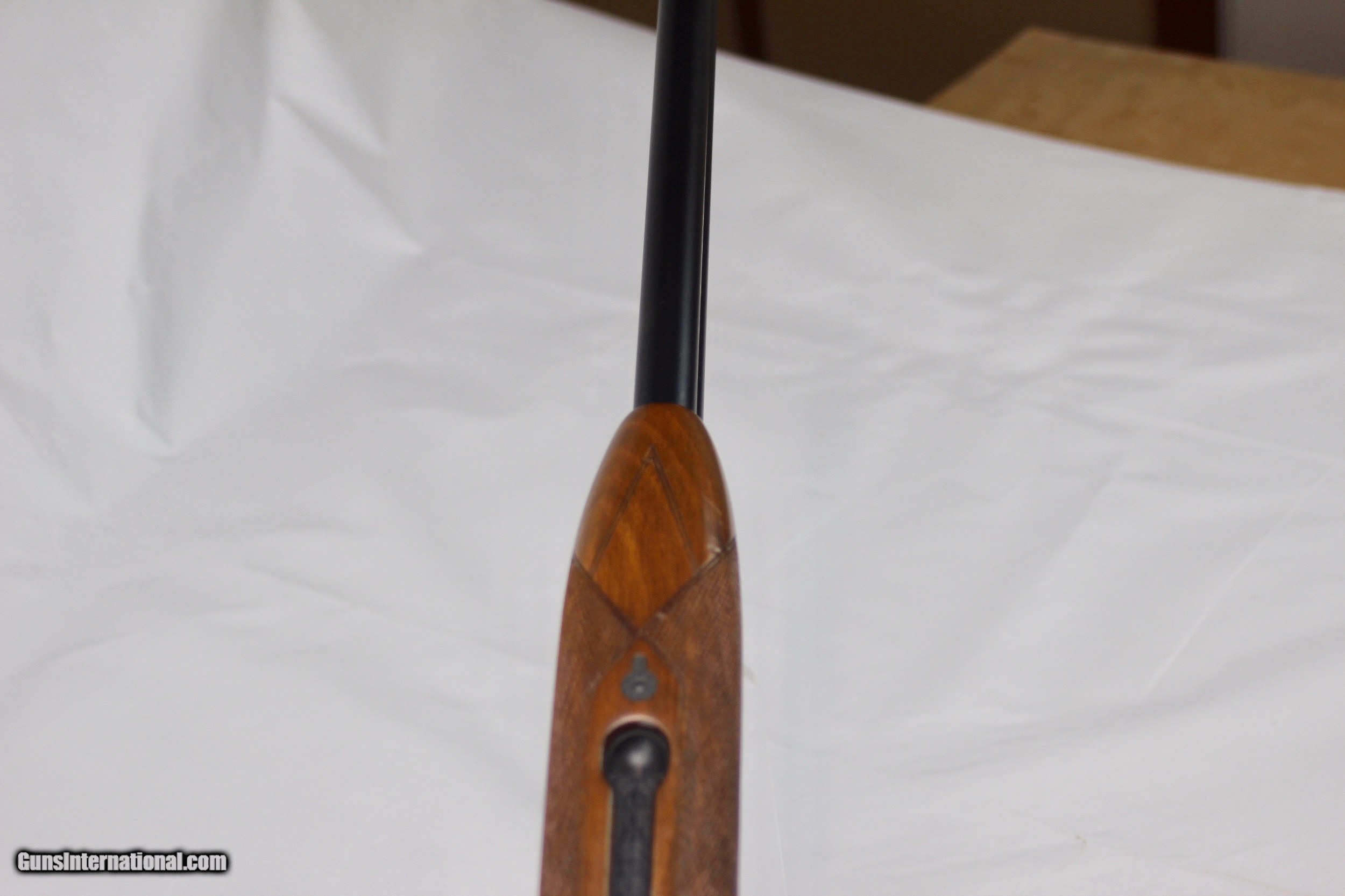 Description: Offered for sale is a very nice SKB 500 20 gauge O/U shotgun. This light little 20 gauge is equipted with 26" barrels choked Mod./IC. Length of pull is 14"over a factory butt plate. Drop at comb is 1 1/2". The drop at heel is 2 1/2".the gun is quite light weighing in at 6 1/2 lbs. The metal surfaces of the gun are spotless in a very attractive black chrome finish. There are no sighs of wear or abraslion, no dents and no corrosion. the receiver and trigger guard are nicely engraved with a duck on the left panel and a pheasant on the rilght. The nicely figured walnut stock and forend are in good condition with the usual marks of handling. There are no deep scratches, splits or cracks. There is a round dent in the right side of the forend just above the checkering line. The gun is equipted with factory butt plate and grip cap. While the gun appears to have been carried a bit, the barrel release leveer is still well to the right. This is a very nice light little 20 gauge that will make a very nice quail or pheasant gun and also make a good gun to train a yooung shooter. SOLD Shotgun Gauge: 20 Gauge Manufacturer: SKB Model: 500 Serial Number: S 6508061 Barrel Length: 26 Bore: 20 gauge Chambers: 3 Ejectors: Selective Ejectors Condition: Very good Metal Condition: Excellent Wood Condition: Good Bore Condition: Clean and Bright Barrel Type: Over/Under Action: Box Lock Triggers: Single selective Stock: Checkered Walnut Stock Comb: Drop at Comb 1 1/2 Stock Heel: drop at Heel 2 1/2 Stock Cast: Very slight Cast-on) Fore End: Checkered Walnut Butt Pad: Factory Butt Plate LOP: 14 Rib: Full Vented Rib Finish: Semi gloss Weight: 6 lbs Manufacture Date: 1967 - 1977 Chokes: Mod/IC Engraving: Receiver Border & Pins Item Location: Coweta, OK |