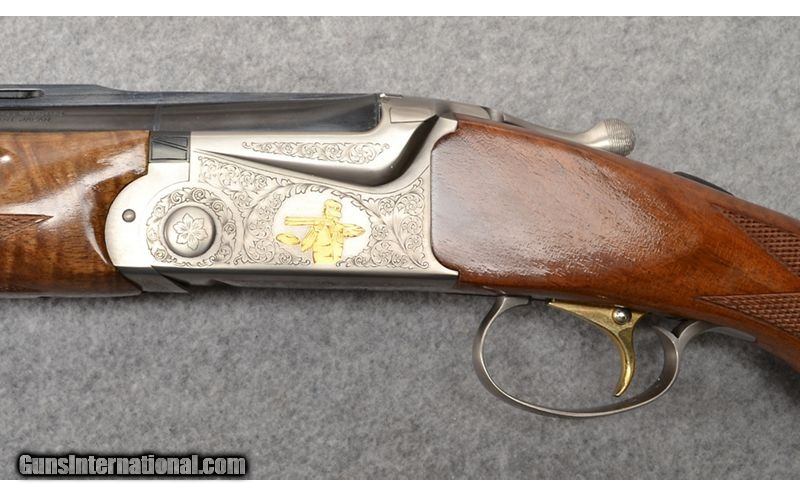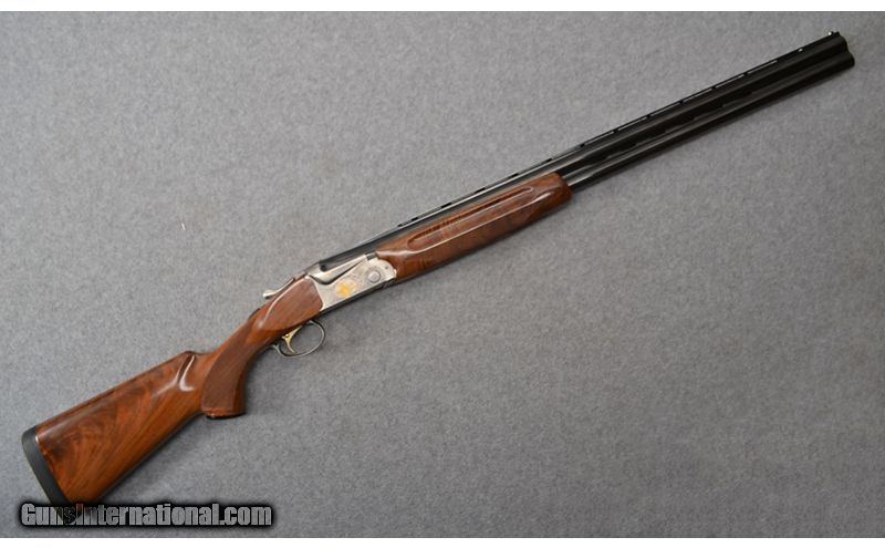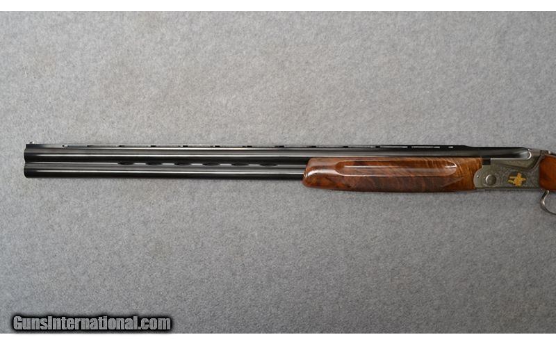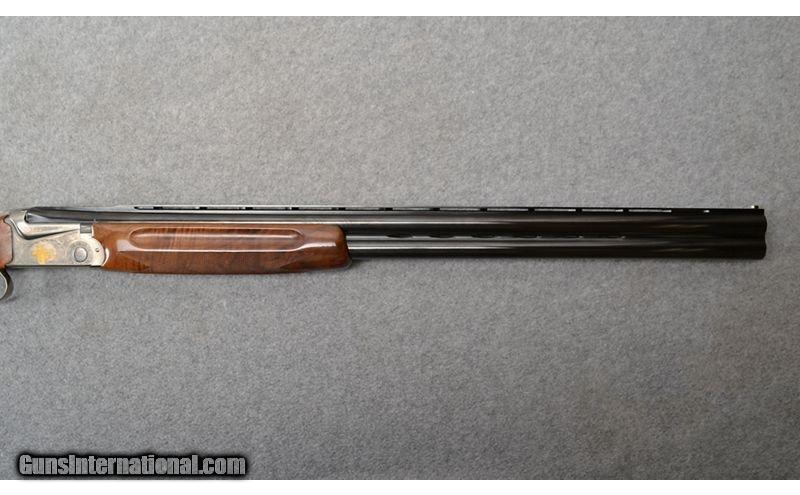 Description: New SKB Arms model 685 with 28" barrels and three inch chambers and ejectors. Raised vented rib with center metal bead and white bead at muzzle. Bluing on barrels is in excellent condition with no dings, dents, or scratches noted. Bores are bright and shiny with some plastic residue noted. No dings, dents, rings, or bulges noted. Receiver is engraved all around, featuring a trap shooter and clay on both sides. High gloss, checkered walnut pistol grip stock and fore end are in excellent condition. A finish chip is noted on the left-hand side of the stock. Single selective gold trigger and tang safety. Comes with factory box and two choke tube wrenches. 12 Gauge SOLD Chambers: 3" chambers. Metal Condition: Barrel bluing is in excellent condition. Receiver is engraved all around with gold inlay of trap shooter and clay on both sides. Wood Condition: High gloss walnut checkered pistol grip stock/checkered fore end are in excellent condition. Finish chip noted on the left hand of the stock. Checkering on the bottom of the pistol grip stock is slightly worn down. No other scratches or dings noted. Bore Condition: "Bores are bright and shiny with some plastic fouling noted. No dings, dents, rings, or bulges noted. Barrels: 28" barrels. Triggers: Single selective gold trigger. Stock Dimensions: "14 1/2"" LOP, 1 1/4"" DAC, 1 1/2"" DAH Fore End: Checkered walnut fore end is in excellent condition. Butt Pad: Old English Pachmayr recoil pad. Weight: 8 lb. - 3 oz. Sights: Raised vent matte rib with center metal bead and white bead at muzzle. Chokes: Both barrels have flush screw in modified chokes. Item Location: Mitchell, SD |