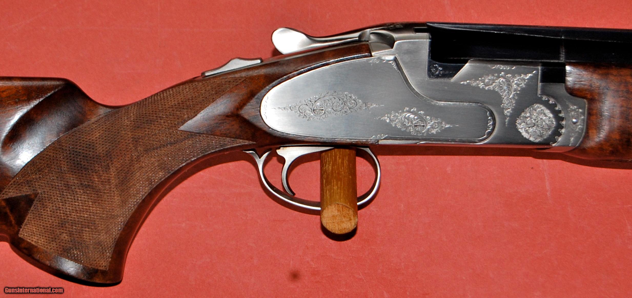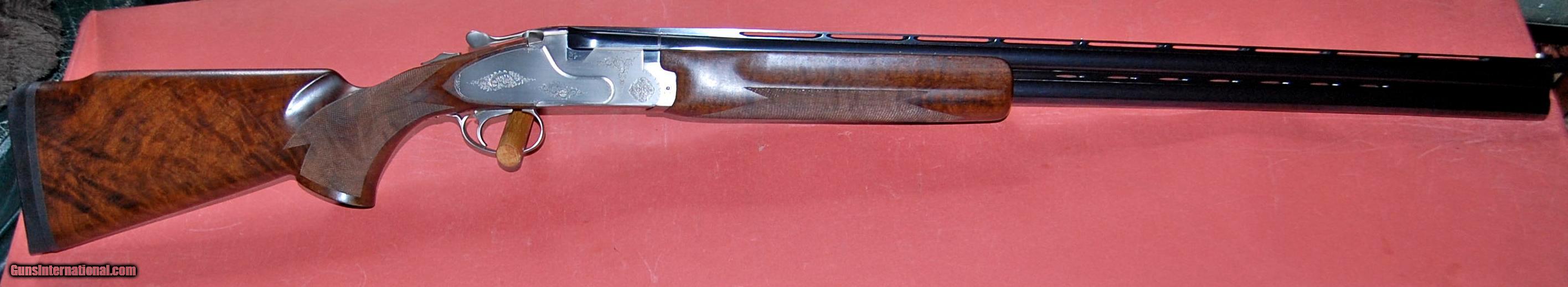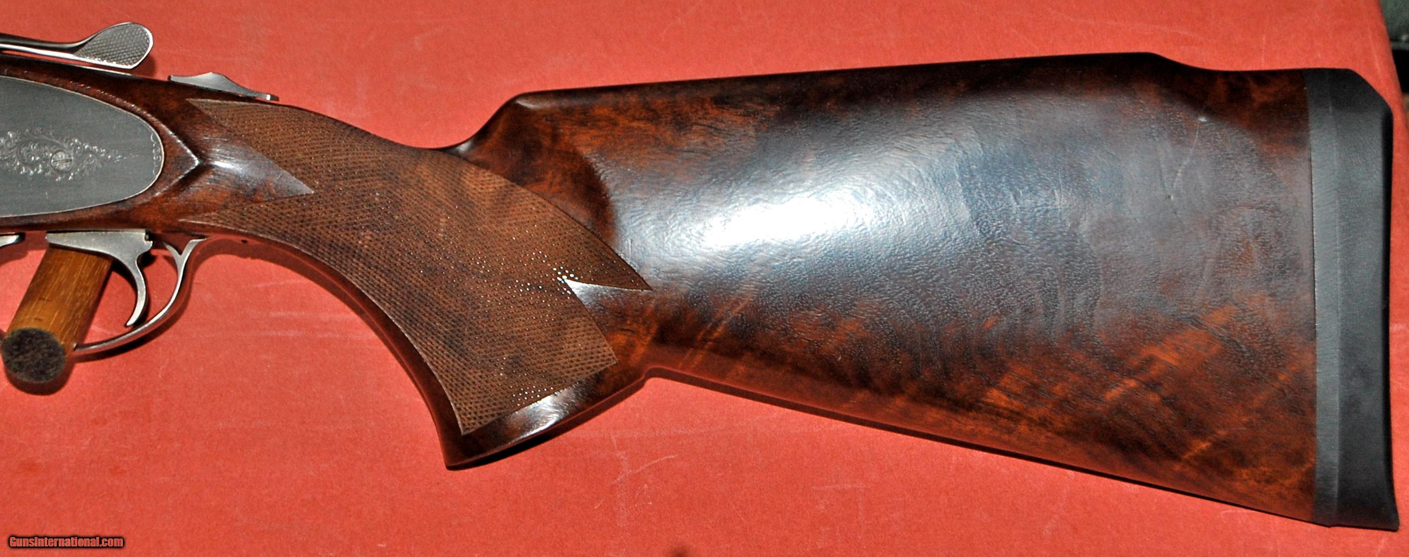 Description: Very rare SKB model 5000 sporter.Built originaly for the European market,these guns are much finer built and finished than the typical SKB.This gun has hand engraved sideplates,a removable mechanical trigger,ejectors,a Greener style crossbolt,a flat sporting rib,ventilated side ribs,outstanding dark oil finished wood,and hand cut checkering.It has 30" barrels with SKB chokes.Only about 50 of these guns were brought into this country so you seldom see one.This gun has British proof marks from the Birmingham proof house.The person I got it from bought it from the original buyer who imported it.The gun is in mint condition retaining 99% of the original finish.This would make a great sporting clays,trap,or live pigeon gun.Equal in quality to a Perazzi or Kreighoff at 1/3 the cost.Cased in a Browning luggage case. SOLD Manufacturer: SKB Model: 5000 sporter Serial Number: NS14110 Chambers: 23/4 Ejectors: yes Metal Condition: mint Wood Condition: mint Bore Condition: mint Action: over/under Triggers: single non selective machanical Stock Dimensions: 141/8"x13/8"x13/4"x2 Rib: flat sporting Chokes: SKB chokes |
