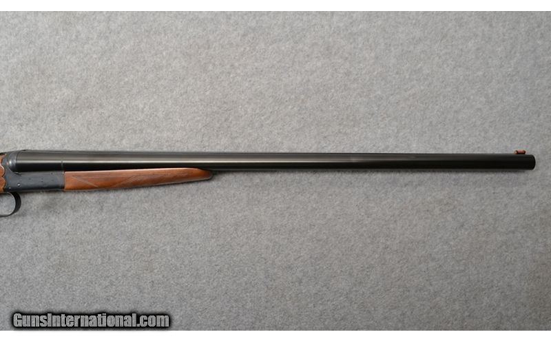 Description: Ithaca model 100 in 12 gauge with single selective trigger and 2 3/4" chambers with extractors. The 26" barrels sport a solid raised rib with orange front bead. Right barrel choked improved cylinder and left barrel choked modified. Bores are bright with no dings, dents, rings, or bulges. Checkered walnut stock and splinter fore end have a few light handling marks, though none are through the finish. 12 Gauge SOLD Chambers: 2 3/4" chambers. Metal Condition: Action and barrels are in excellent condition with only some minor wear. Wood Condition: Stock and fore end have a few light handling marks and dings. None are through the finish. Bore Condition: "Bright bores with no dings, dents, rings, or bulges. Barrels: 26" barrels. Triggers: Single selective trigger. Stock Dimensions: "14 1/4"" LOP, 1 3/4"" DAC, 2 3/4"" DAH Fore End: Checkered pistol grip stock and splinter fore end. Butt Pad: Factory black plastic butt plate. Weight: 6 lb - 12 oz Sights: Solid raised matte rib with orange bead. Chokes: Right barrel choked improved cylinder and left barrel is choked modified. Item Location: Mitchell, SD |