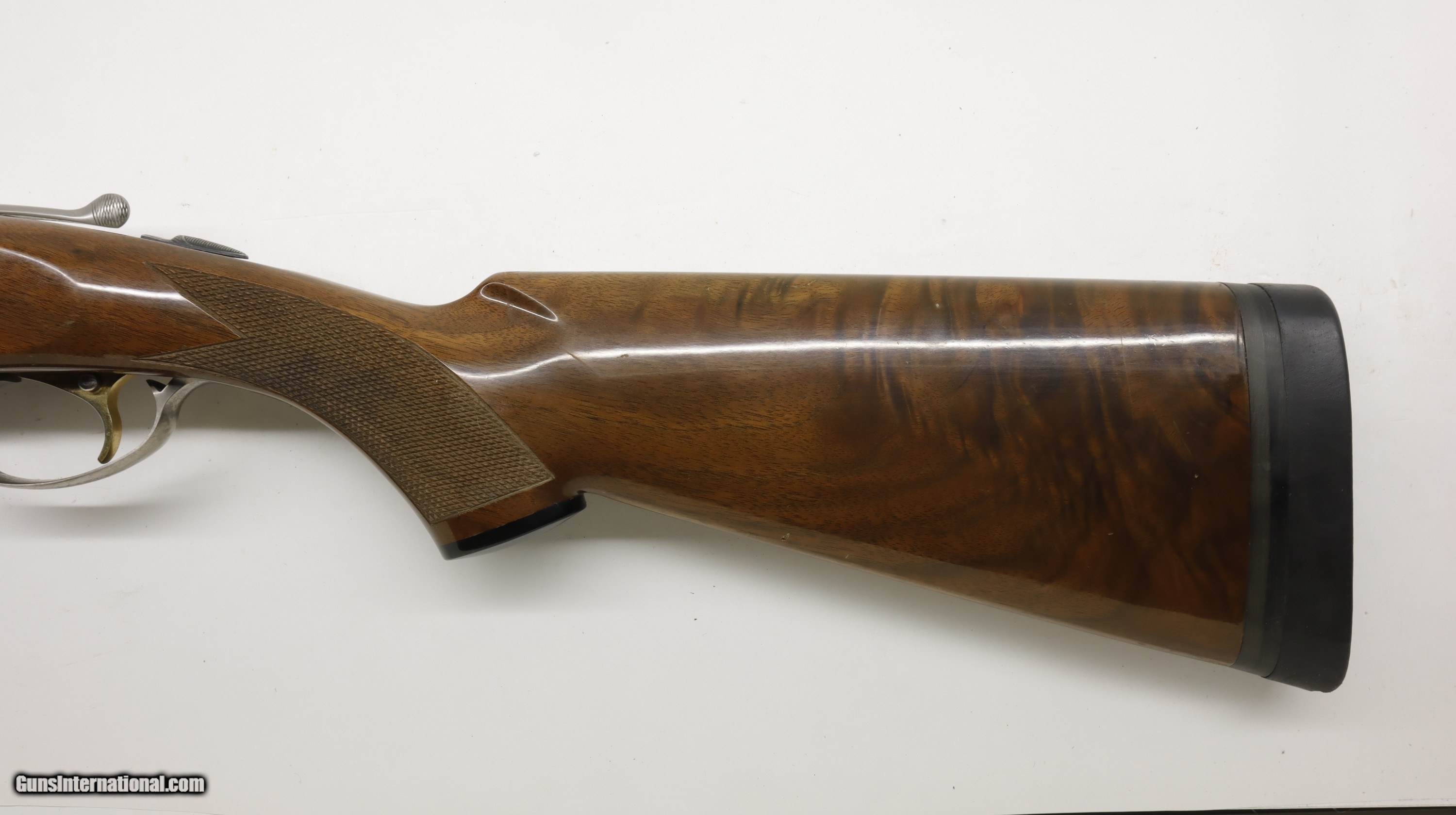 Description: SKB 385, made in Japan. 20ga, 28" barrels, 3" mag chambers. SIngle selective triggers, auto ejectors. SN is NS4032xx. Factory finsih on both wood and metal. LOP is 14 3/4" as pictured, LOP of just wood is 13.5". Perfect bores. I do not think its been shot all that much. Nice classic gun! We will trade for silver and gold. We accept personal check, any certified funds, Venmo or Zelle. We can also take your credit card, +3%. Email me if you would like these pictures sent to you, they will come through bigger and better than on the listing page here. We do offer Layaway. Our standard terms are 25% down, 90 days. Initial deposit is not refundable. Email me with any questions. Please check your local laws to confirm it is legal to own in your state! Buyer pays $60 shipping and insurance in a brand new PLANO hard case to your FFL in the lower 48. AK, HI or PR is extra. I will ship to California, as long as it is legal, NO PROBLEM! All my guns come with a non-firing, 3 day unconditional return privilege, from the day UPS delivers to your dealer. Buyer pays shipping both ways if the gun comes back. Please make sure to make it to your FFL to inspect within the 3 days. I am a licensed FFL, and will include a copy of my FFL with the gun for your dealer’s records. I will ship to a C&R if the gun is eligible. I will ship to California, but you need to confirm the gun is legal where you are, California or other. WE BUY AND CONSIGN GUNS AND GUN COLLECTIONS! We will travel to pick up collections! I am always looking for good clean, old original Winchesters to buy, consign, or trade, especially Pre '64's model 70's and model 54's. WE ALSO TRADE FOR CLASSIC CARS AND TRUCKS! We also trade for gold and silver. SOLD Shotgun Gauge: 20 Gauge Manufacturer: SKB Model: 385 Barrel Length: 28 Condition: Used |