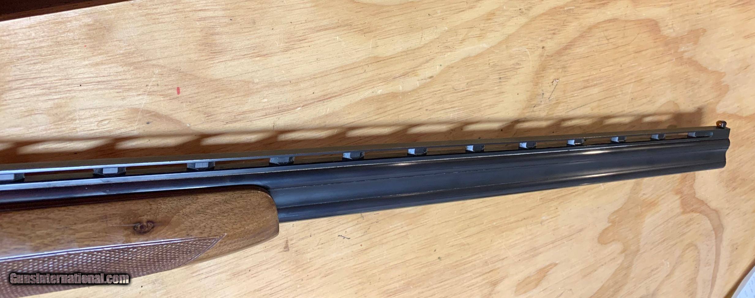Description: SKB 410 O/U model 500. Engraved receiver with birds. Metal flawless, wood has nicks that appear to be from storage not use. 28" M/F barrels. Ejectors. 1 1/4"X2"X14" to single trigger. Original butt plate and grip cap. Raybar front sight. Gold on ttrigger very slightly worn. SOLD Curio/Relic: Yes |