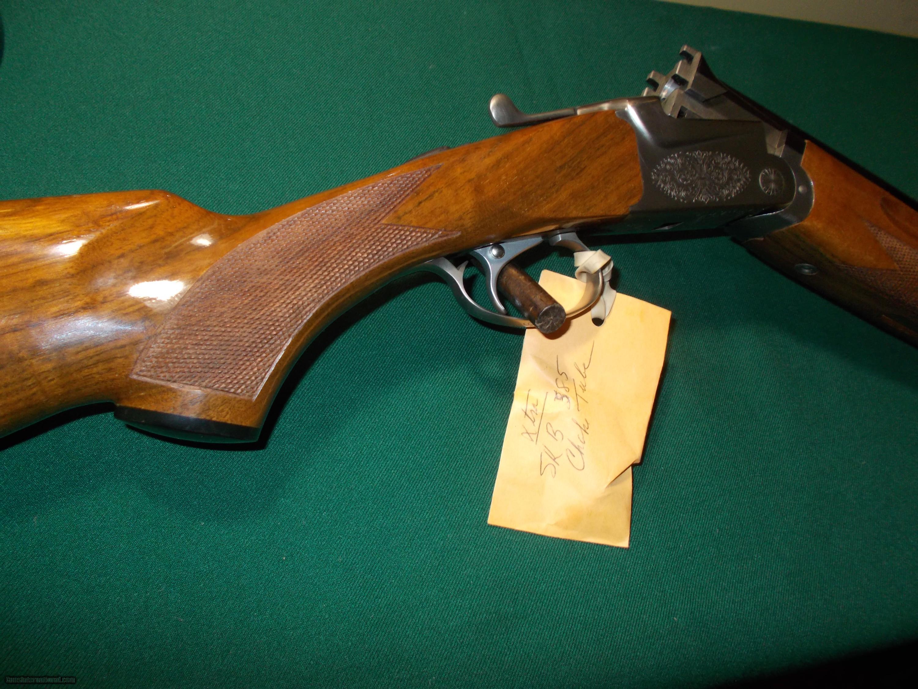 Description: 28" vent rib bbl., factory multi-chokes (3), single select trigger, ejectors, coin finished engraved receiver, crossbolt action, preminum walnut PG checkered stock & small fingergroove forearm, 14 3/8"+ LOP over mentiuoned pad, great field gun - also skeet shooting, 99%+ as new in new in attractive brown almost endangered Nauga fleece lined hard case, SOLD |