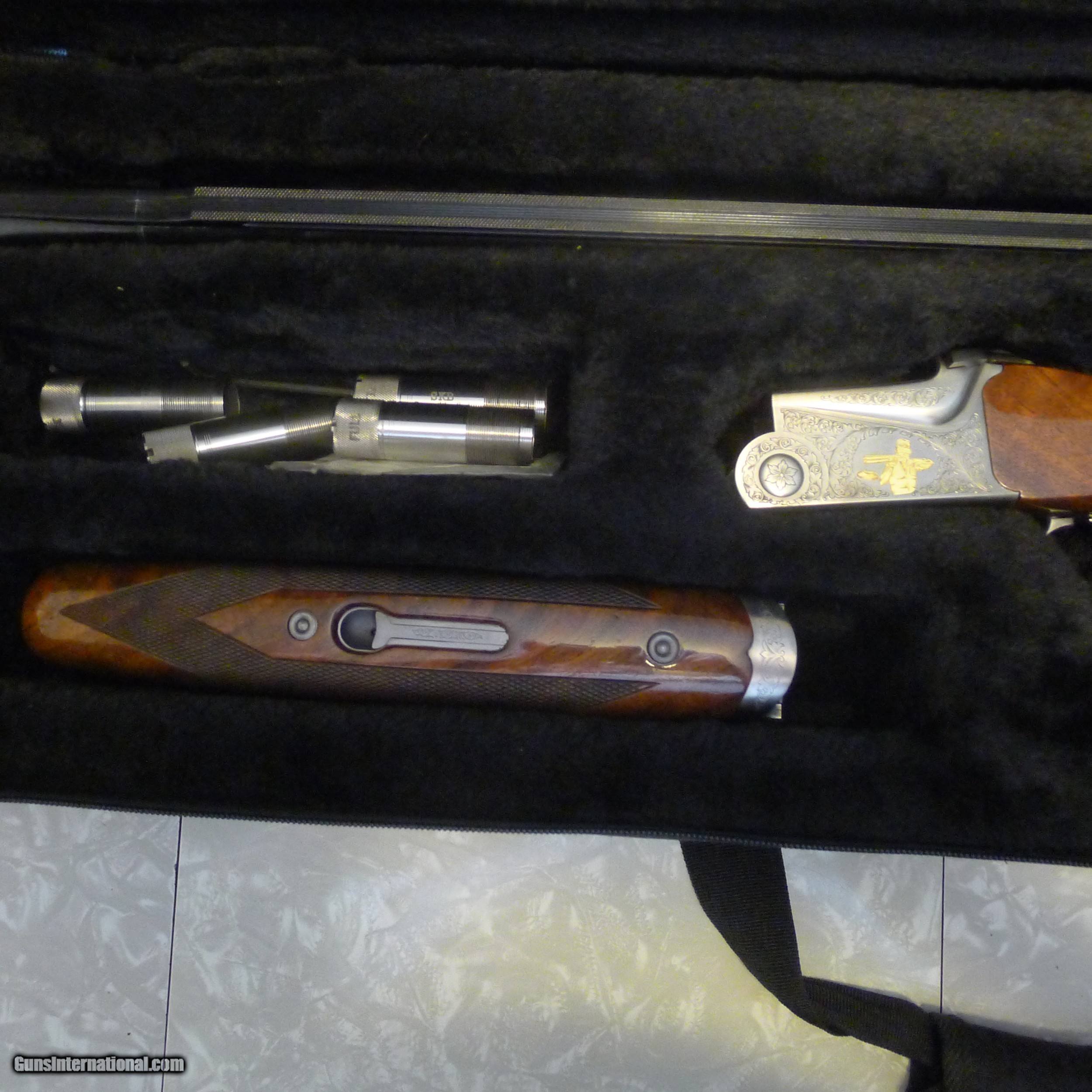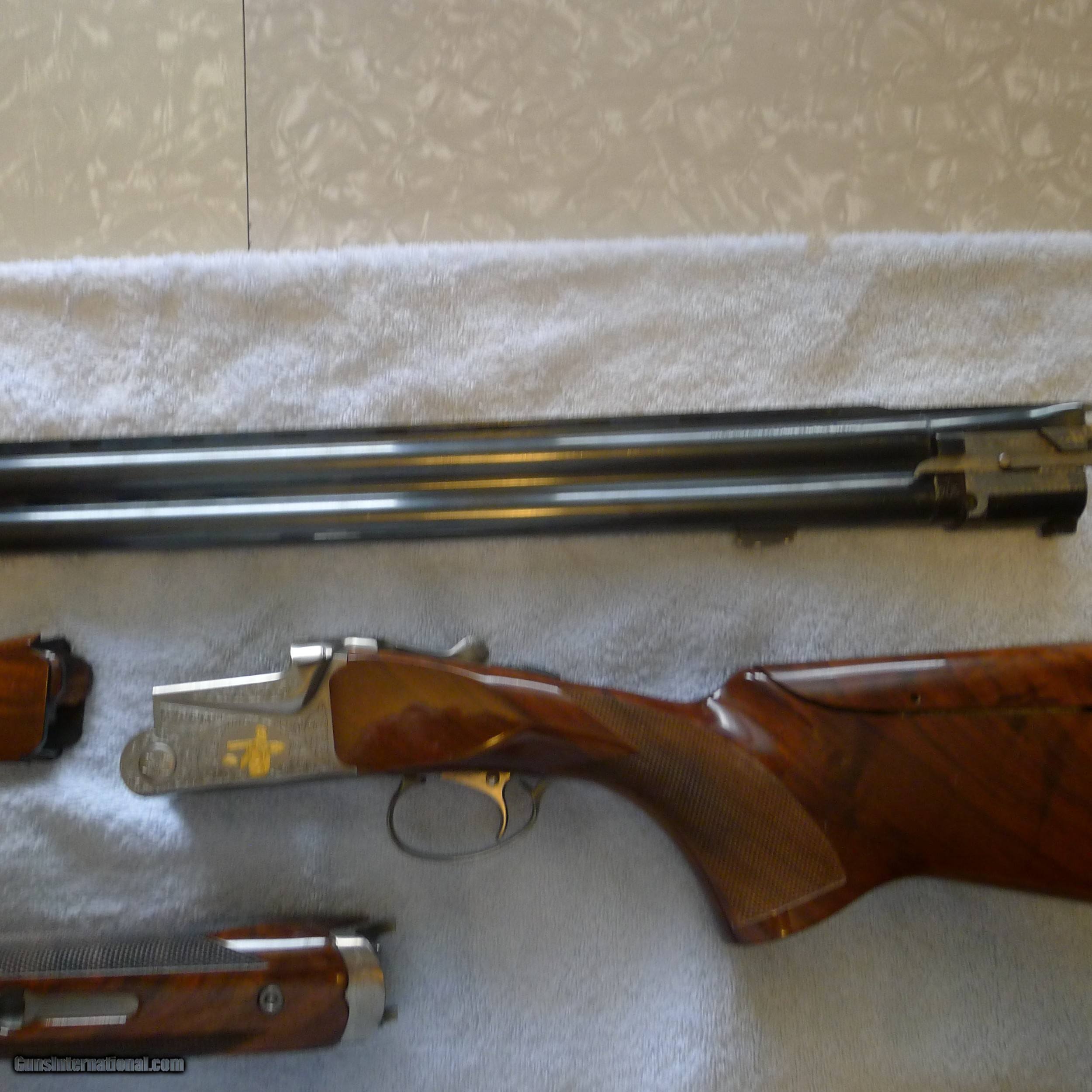 Description: This is a beautiful multi functional SKB 685 Over/Under shotgun barrel markings Made by SKB Co. Japan it has 30" ported barrels with 6 choke tubes (1) imp. cyl. (2) skeet (1) mod. (1) full and (1) cyl.. It also has TWO BUTT STOCKS one a conventional the other with an adjustable comb. length of pull from center of trigger to center of butt is 14 5/8". The gun was returned to SKB several years ago for a complete overhaul including all new springs. Unfortunately the owner does not have the work order for the work completed. It has been shot app.6 rounds of Sporting Clays since trhe rebuild. there is also a custom carrying case made by SKB to transport the shotgun.The overal condition of the gun is better then 95%. There are some rub marks on the butt stock with the adjustable comb. I don't think the other stock was ever on the gun. See all photos. have more then space allows. Questions refer by email. Shipping will be determined after location of buyer, BUT IT WILL BE SHIPPED IN A SPECIAL WOODEN CRATE LARGE ENOUGH TO ACCOMMODATE THE ENTIRE SET UP. BASED ON THE SIZE OF THE CARRYING CASE AND INSURANCE FOR THE PURCHASE PRICE SHIPPING WILL BE APPROXIMATELY $100.00 IT WILL BE SHIPPED USPS PRIORITY MAIL 3 DAY GUARANTEE. ANY DEVIATION FROM SHIPPING WILL HAVE TO BE IN WRITING FROM THE PURCHASER AND ANY DAMAGE OCCURRED WILL BE THE PURCHASER'S EXPENSE. will consider a layaway, also a reasonable offer. SOLD PENDING RECEIPT OF FUNDS SOLD |