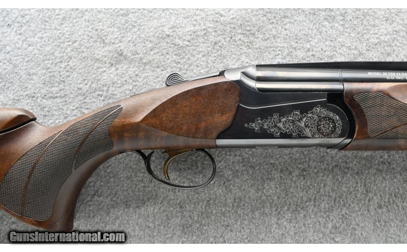 Description: The fit and feel of a tournament stock is a key element in the performance tuned 90TSS competition shotguns. The personalized fit of an adjustable stock enables the shooter to acquire the target faster, enhances swing control, improves overall handling and reduces fatigue. 12 Gauge SOLD Chambers: 12 Gauge 3" O/U and 2 3/4" Single Barrel Metal Condition: "Very good, small mark on the ribs Wood Condition: "Very good, a few small dents at the pistol grip and a light scratch on the left side of the buttstock Bore Condition: Bright Barrels: "32"" O/U Barrels, 34"" Single, auto ejectors Triggers: Single selective mechanical at the top tang safety Stock Dimensions: Adjustable 1 1/4" LOP and comb height Fore End: Checkered Turkish Walnut with grasping grooves and Deeley style release Butt Pad: XLT rubber adjustable Weight: 8 lbs. 14 oz. Sights: "Fiber optic pipe front, Metallic mid-bead Chokes: "Screw-in chokes, Full, 3 Improved Modified, Modified & Trap Item Location: Grand Junction, CO |