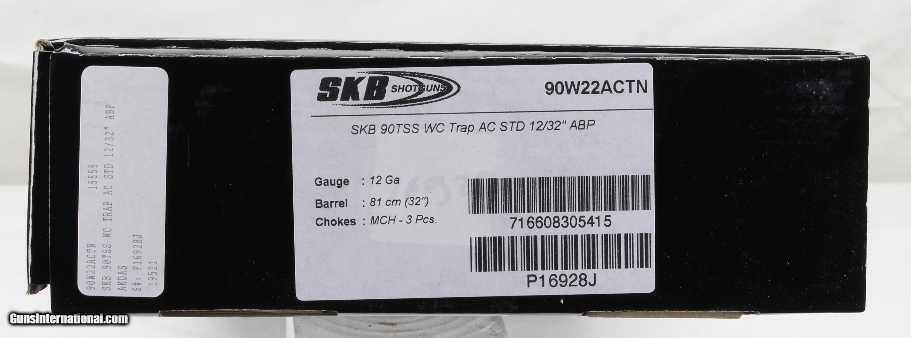 Description: SKB, 90TSS TRAP, 12GA, WC 32" Barrels, Choke Tubes, LOP: Adjustable 14-15 1/2", DAC: 1 1/2" Adjustable, DAH: 1 1/2" Adjustable. Weight: 8lbs, 10ozs. Right Hand Palm Swell, SKB Chokes: FULL, IMOD MOD. , SKB Soft Takedown Case. New Gun, Two Year Factory Warranty. This Gun Fits a Shorter Shooter Best. Ships to Lower 48, W/Insurance. $45.00 SOLD Manufacturer: SKB Model: 90TSS Serial Number: P16928J Condition: NEW Barrels: 32 Gauge Info: 12GA |
