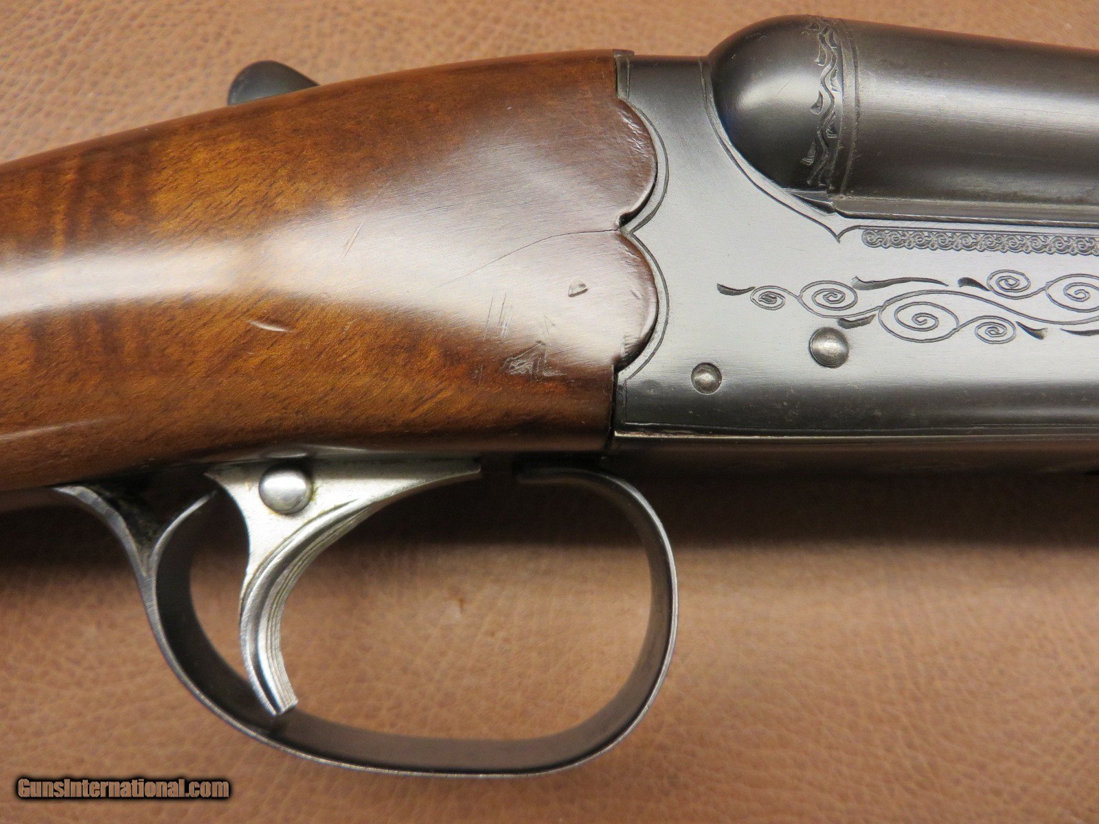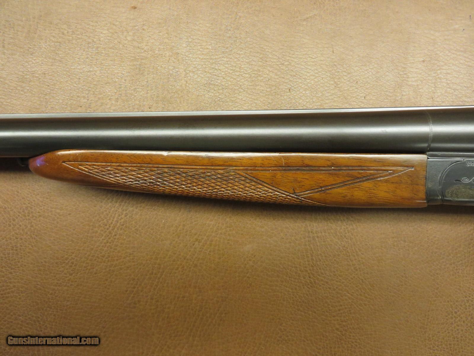 Description: 20 ga. 3 inch chambered side by side has 25 inch barrels choked improved cylinder and modified. Ray-Bar front bead. Lightly engraved receiver has extractor and single selective trigger. Checkered walnut splinter forend and stock with pistol grip cap and Ithaca-SKB butt plate. Blue and forend finish are 95%. The stock is 90% and has a hairline crack on right side where it meets the receiver. SOLD Shotgun Gauge: 20 Gauge |