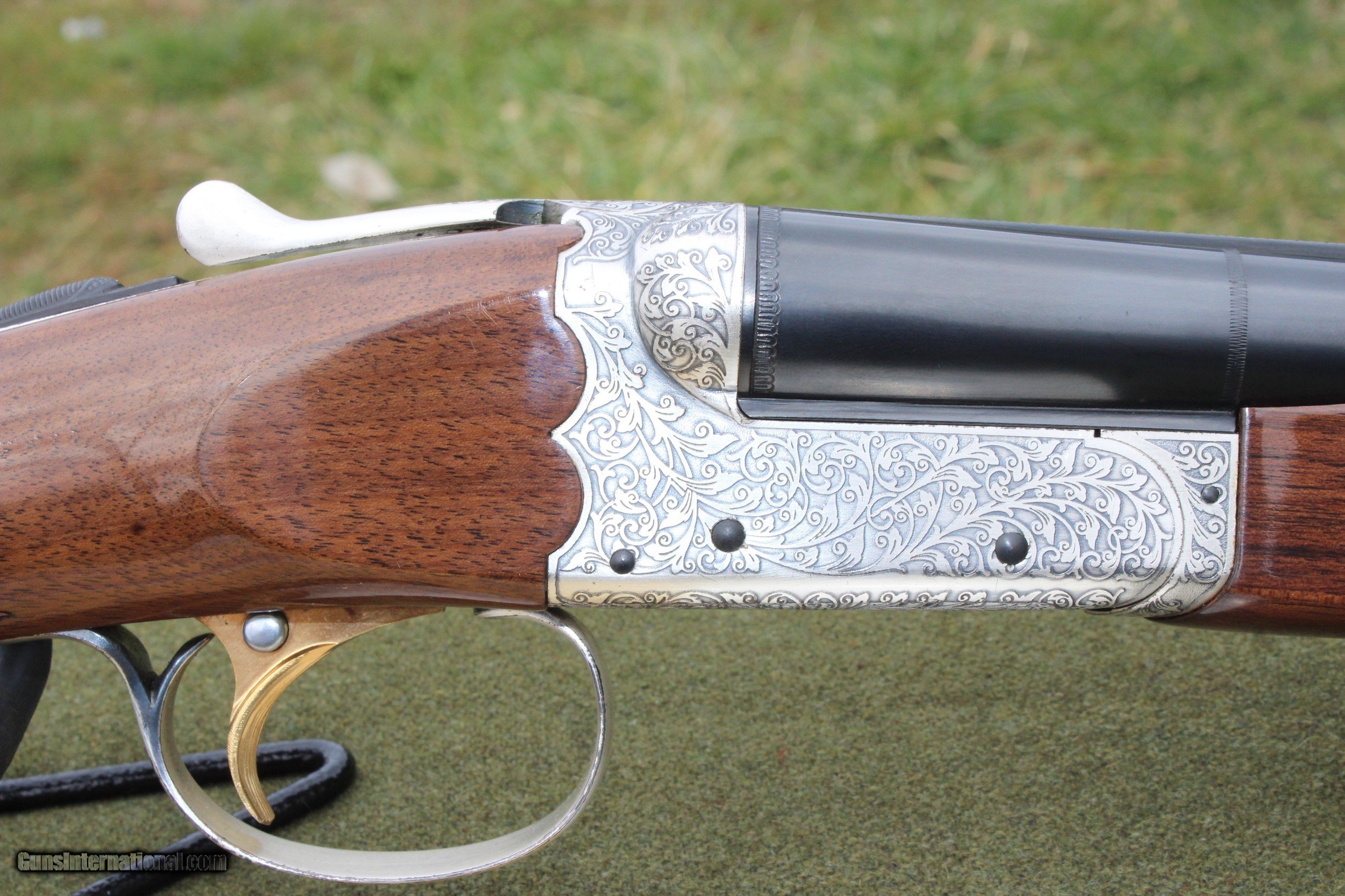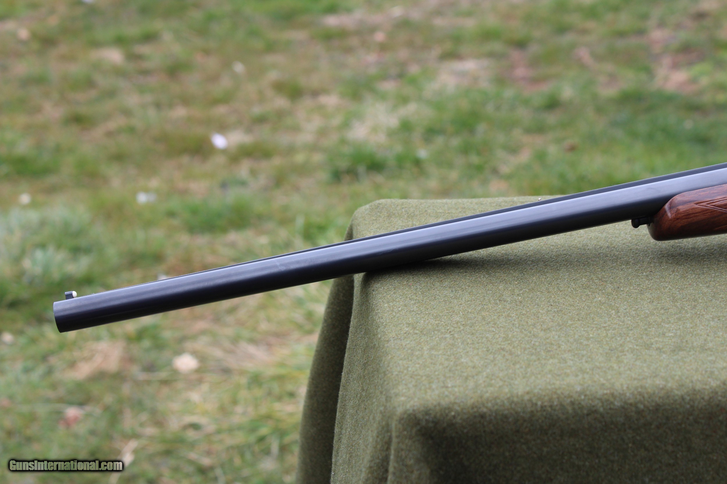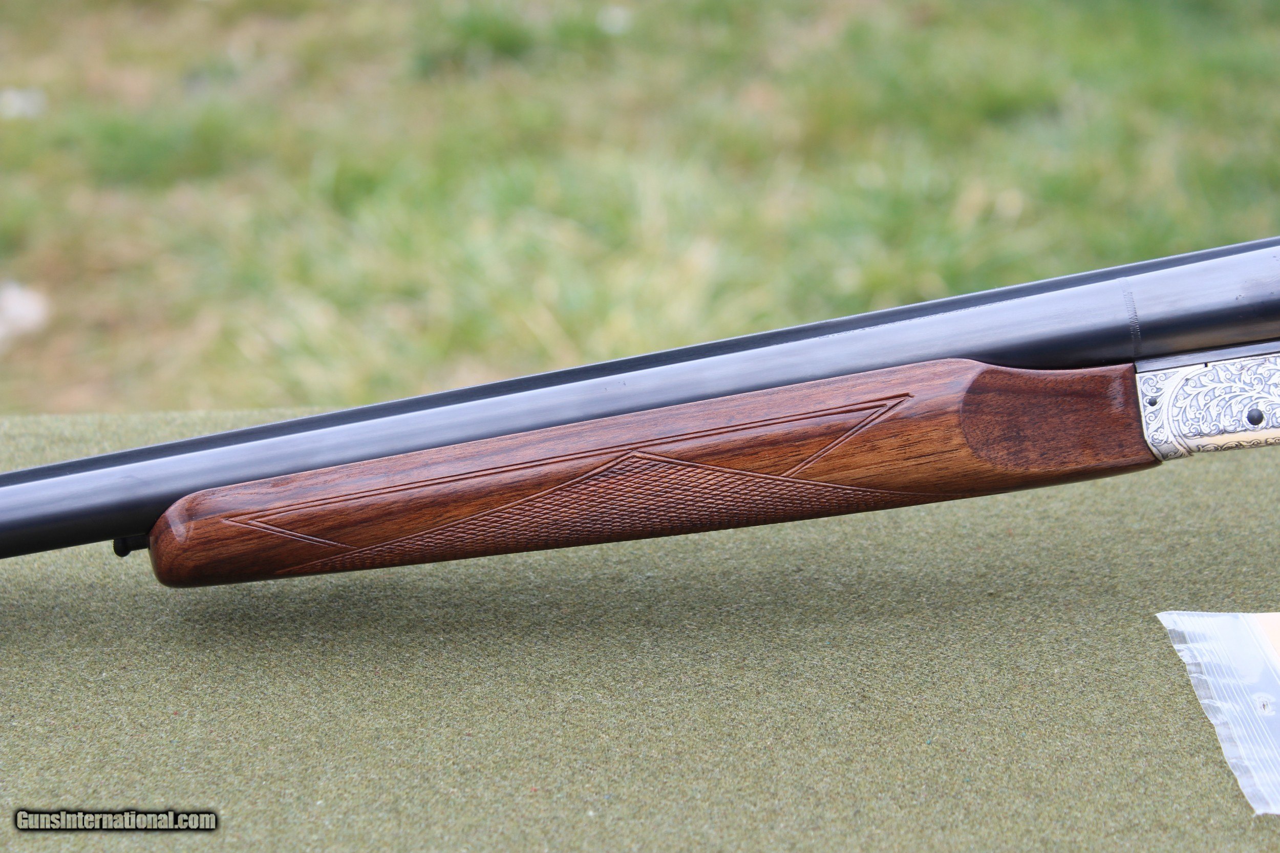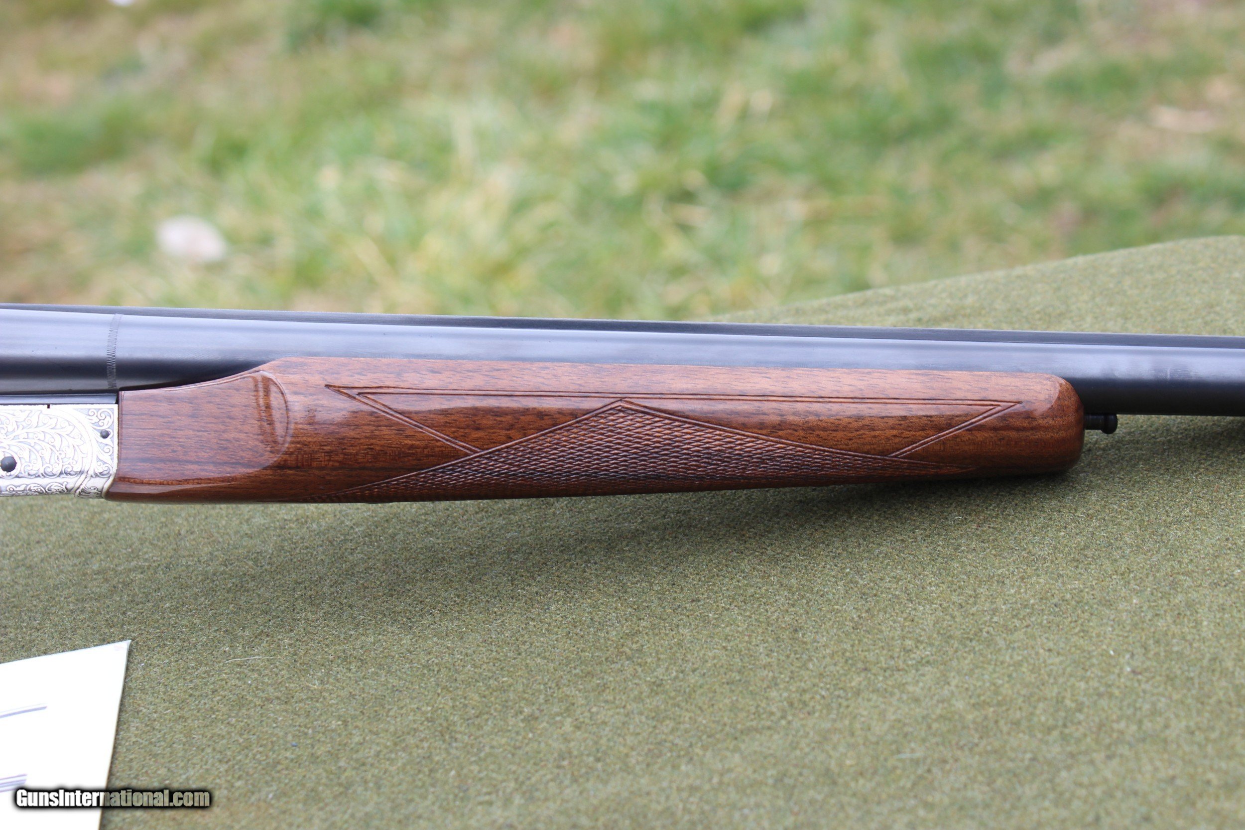 Description: Retailed by Ithaca, made in Japan by SKB Arms 25 " barrel with excellent bores Choked skeet & skeet.004 Single trigger ejector Scalloped boxlock action with full coverage engraving Factory high gloss stocks & beavertail fore end 14 1/8 " LOP over factory pad Drop at heel 2 1/2 " drop at comb 1 1/2 " 98 % bluing, 97% stock finish Weighs 6 lbs 2 oz Quality built gun $ 1749 +Shipping SOLD |