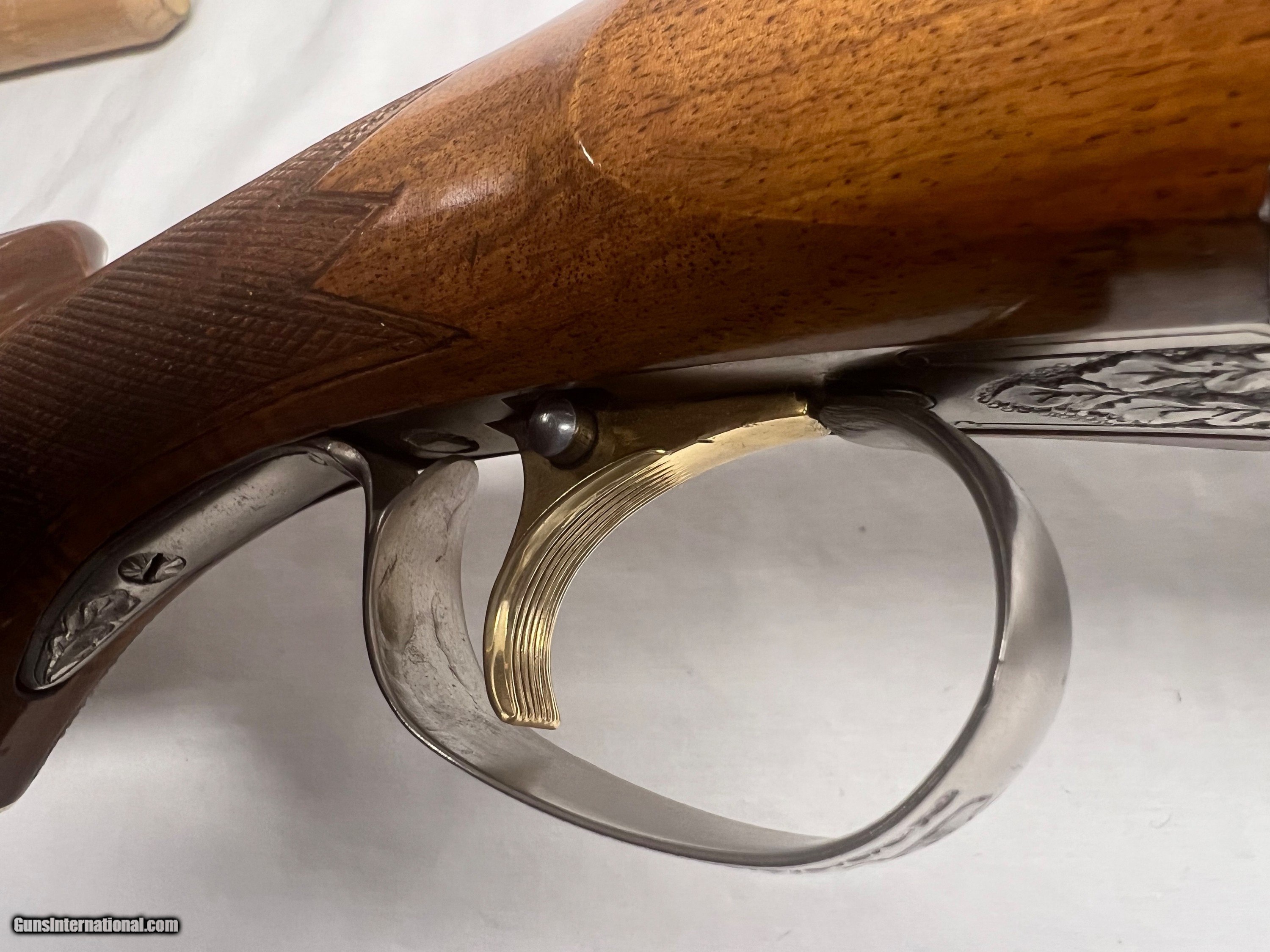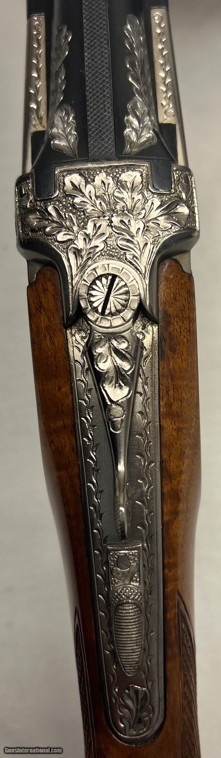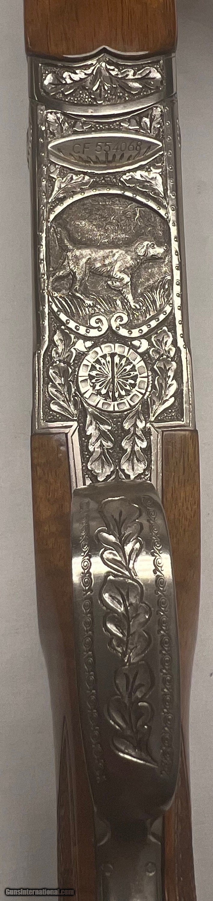 Description: Gentlemen, for sale is a SKB model 500, 20 gauge over/under shotgun. This gun is beyond spectacular it has thousands of dollars of engraving on the piece. The gun was engraved and signed by master engraver Neil Hartliep. Please see the great pictures attached. The gun was made in the early 1970’s in Japan. This gun has been lightly used, and is in excellent condition. Metal is excellent bluing probably 99%+ and wood on has a couple of very small handling marks. Specifications are as follows: 26 inch barrels, fixed improved cylinder/modified chokes, original butt plate, gold trigger, auto ejectors, select trigger, and 14” LOP. The weight of the gun is only 6 lbs 7 ozs. It is a great piece to carry in the field all day. The 20 gauge SKB with a 26” bbls. is a nice combination that can be used quail, upland birds ,pheasants, or skeet shooting. This weapon is a great shooter or a super collector’s piece. You don’t want to miss out on this beautiful gun. Good luck, and thanks for looking. Flat shipping fee of $60. Reasonably priced at $3,195.00. Call Greg 315-481-8005, or email SOLD Shotgun Gauge: 20 Gauge Manufacturer: SKB/ Ithaca Model: 500 Serial Number: CF 554XXX Bore: Excellent Chambers: 3 inch Ejectors: Yes Condition: Excellent Metal Condition: Excellent Wood Condition: Excellent Bore Condition: Excellent Barrels: Steel Barrel Type: Vent Rib Action: Box lock Triggers: Select Stock: Walnut Butt Pad: Original LOP: 14 Finish: Varish/Factory Weight: 6 lbs 7oz Manufacture Date: 1970's Chokes: Fixed Imp Cyl & Mod Engraving: Yes/Super Case: no Item Location: Syracuse, NY |