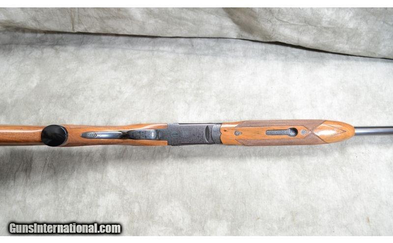 Description: This field weight gun features nice wood, fiberoptic fore bead, ventilated rib and soft recoil pad. 20 Gauge SOLD Chambers: 3 inch chamber and ejectors. Metal Condition: Very good to excellent with little evidence of use. Wood Condition: Very good to excellent with a few handling marks. Barrels: 26 Inch - blue with ventilated rib. Triggers: Factory gold selective single trigger. Stock Dimensions: 13 - 1/8 inch LOP. Fore End: Well-matched walnut semi-beavertail. Butt Pad: Soft rubber recoil pad. Sights: Ventilated rib with fiberoptic bead. Chokes: Fixed Mod. and I.C. Item Location: Rogers |