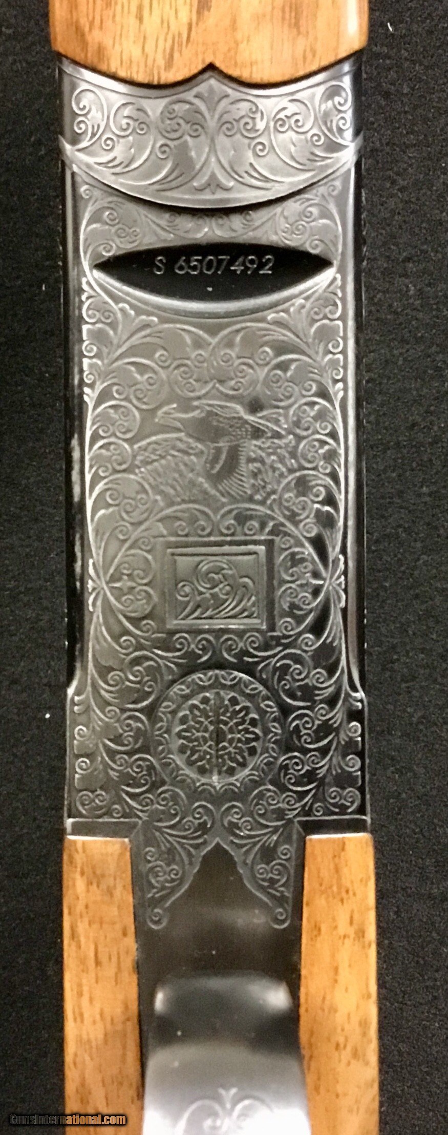 Description: SKB Model 500 O/U Field Shotgun. Made for Ithaca Gun Company. 20ga. SN:S6507xxx 26" vent rib barrels choked IC/M. Single selective trigger. Ejectors. Non-automatic safety. Fully game scene and scroll engraved receiver with pheasant on left, quail on bottom, and duck on right side. Nicely checkered American walnut pistol grip stock and forend. 14 3/4" LOP over vent pad. Condition: Gun is in excellent overall condition showing very little use. Bores are bright and clean. Action tight. Ejectors strong. Mechanically fine. Wood and metal retain all original finishes and are in near new condition with no reportable marks or wear. Gentlemen, this is a fine little game gun and ready for the hunt. Well balanced and easy pointing. Please call now! Priced to sell! FFL required. Buye to pay flat $45 S/H/I SOLD Manufacturer: SKB Model: 500 Gauge Info: 20ga LOP: 14 3/4 Weight: 6.75lbs |