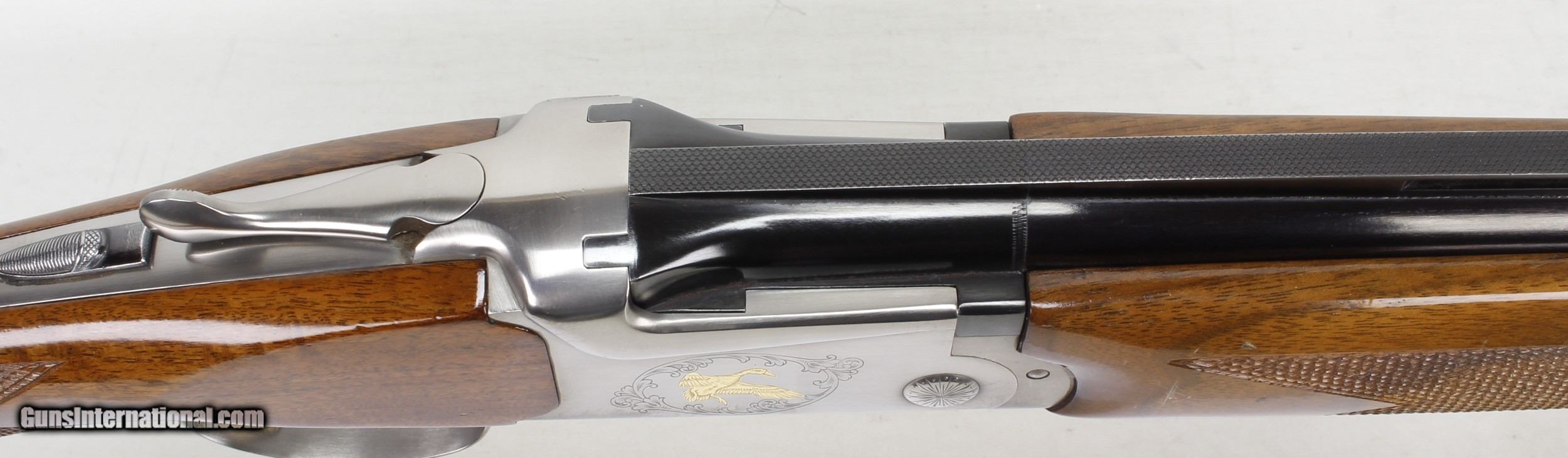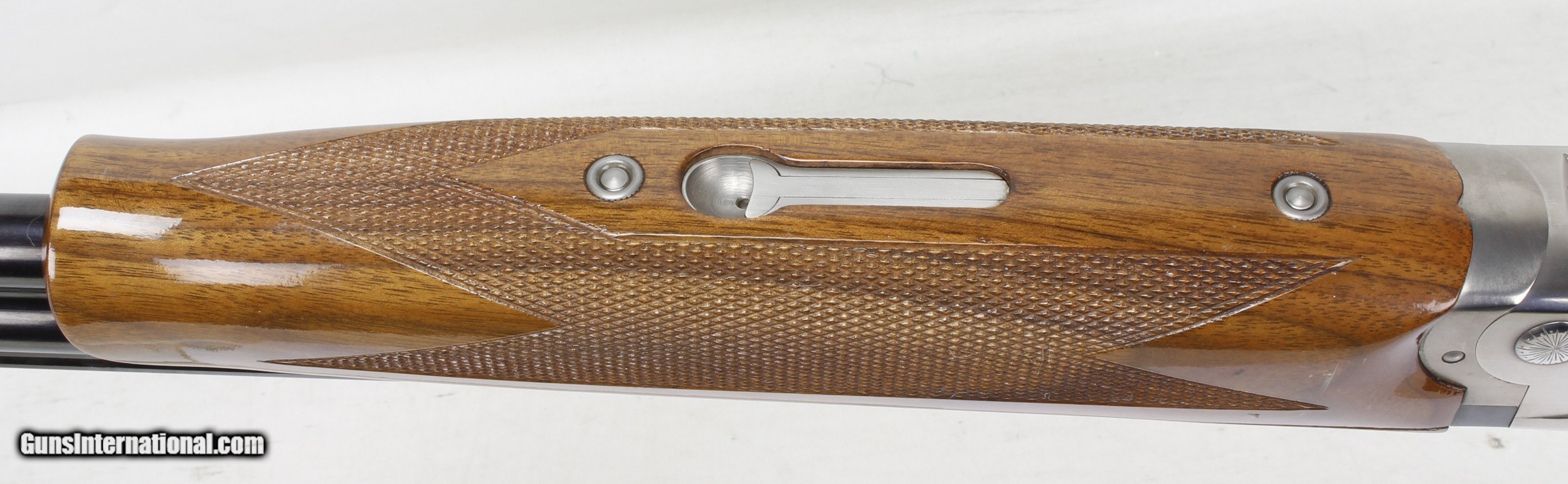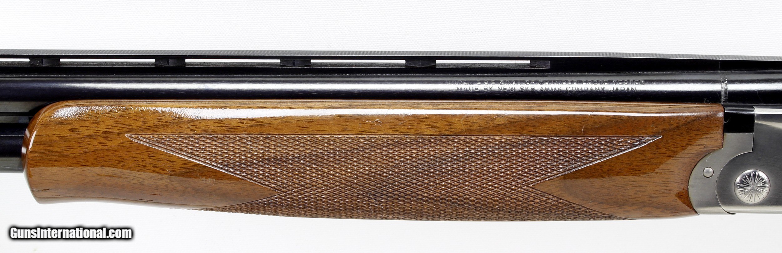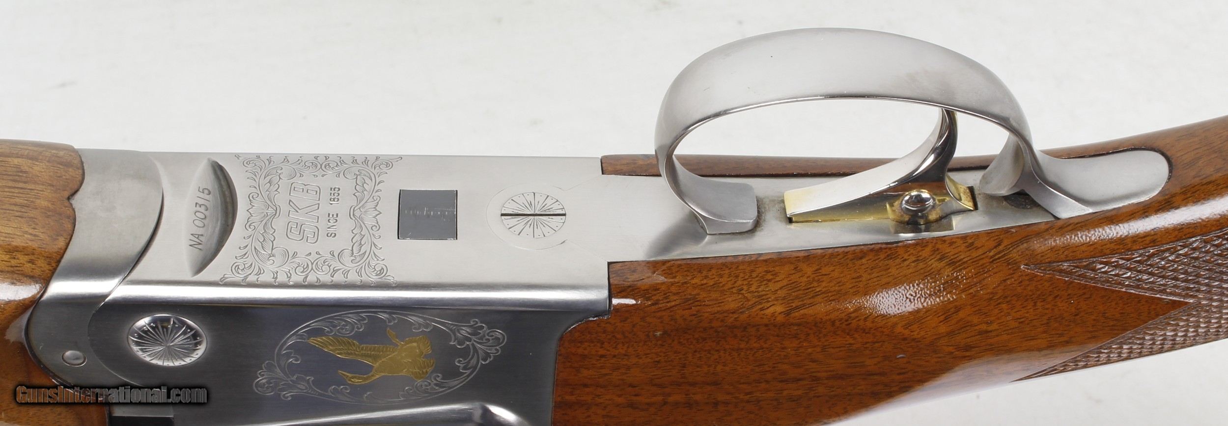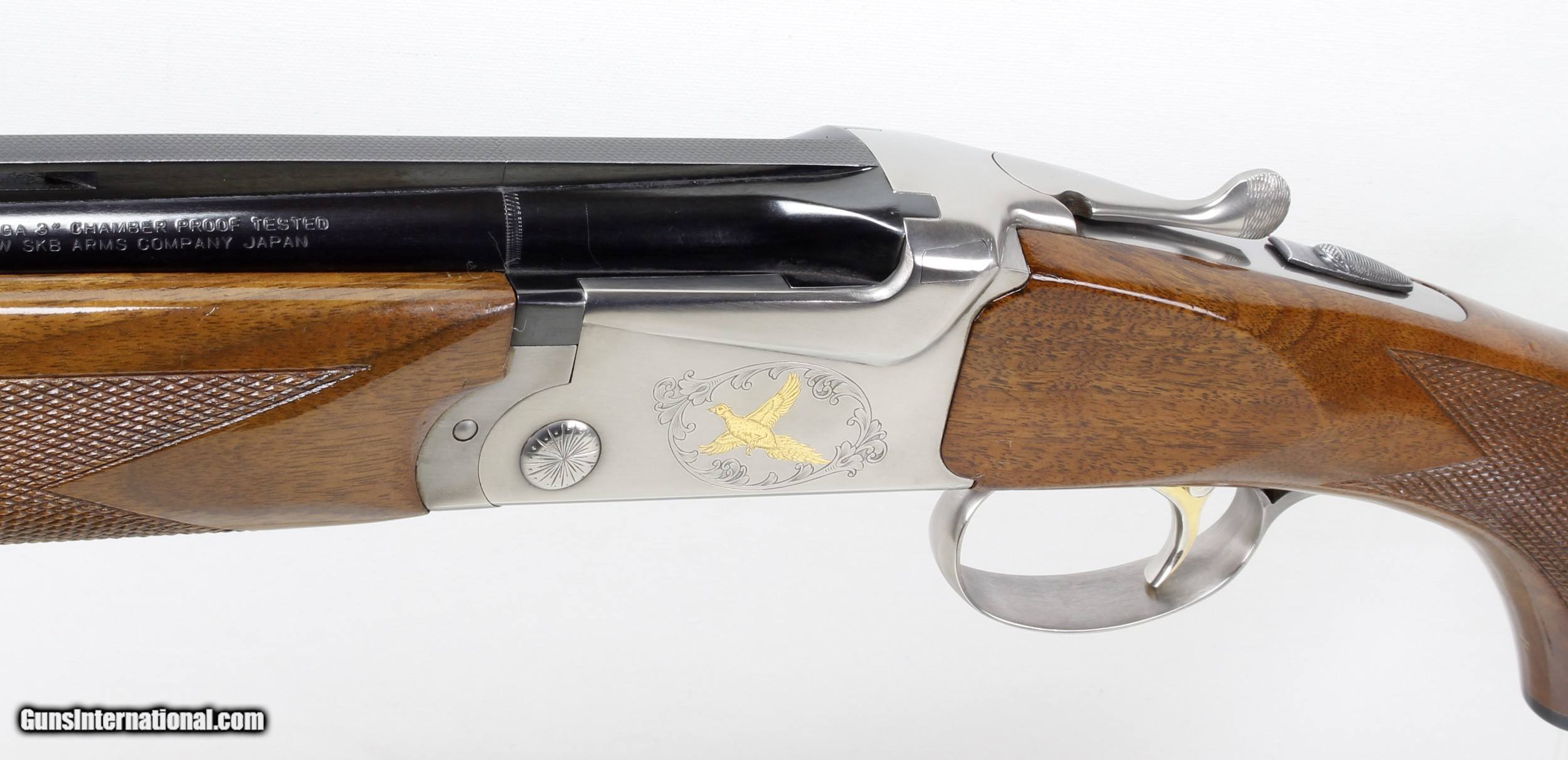Description: SKB Model 585 O/U Shotgun in 20Ga. SN #NA00315. Mfg. in Japan 1992-2008. LOP 13 5/8". Chamber 3". DAH 2 1/4"- DAC 1 1/2". 28" Vent Rib Barrels with EXCELLENT Bright Bores. The Blued Metal and Checkered Pistol Grip Turkish Walnut Stock and Forend are in VERY GOOD condition with a couple of light handling marks. Engraved Receiver with Gold Inlay of a Pheasant on the left side of receiver and Duck on right side. Single Select Trigger. Ejectors. Rubber Recoil Pad. Comes with 2 Choke Tubes, a Full and a Modified. Weight: 6.7 lbs. Trigger Pull: 4 1/4 lbs and 7 lbs. More photos available upon request. Ships to Lower 48 W/ Insurance $45.00. SOLD Shotgun Gauge: 20 Gauge Manufacturer: SKB Model: 585 Serial Number: NA00315 Barrel Length: 28 Chambers: 3 Ejectors: Yes Condition: VG Metal Condition: VG Wood Condition: VG Bore Condition: Excellent LOP: 13 5/8 Finish: Blue / Silver Weight: 6.7 lbs. Manufacture Date: 1992-2008 |