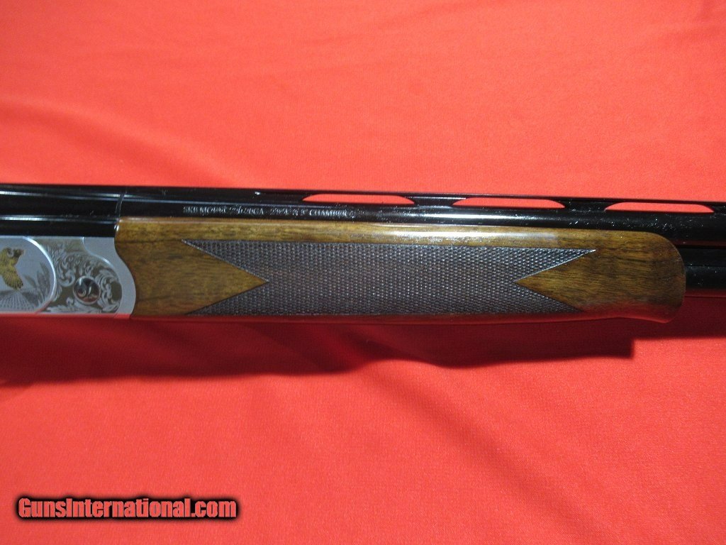 Description: SKB Model 720 Field 20ga/28" Multichoke (NEW)-- SKB 720 Field with sculpted receiver from a solid billet of chrome-moly steel, white chrome finish, scroll engraving with gold accented game scenes, grade II Turkish walnut stcok and forend, chrome lined chambers, auto ejectors, mechanical trigger, selective safety, threaded for choke tubes. Scaled frame 20ga. SOLD |