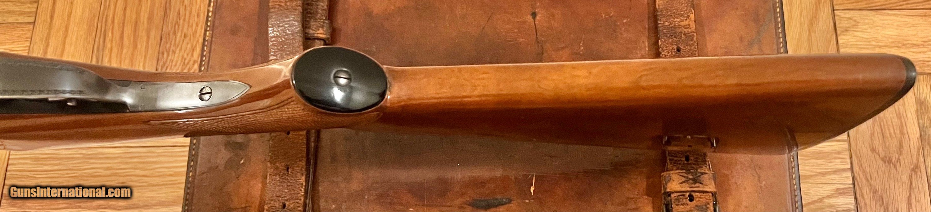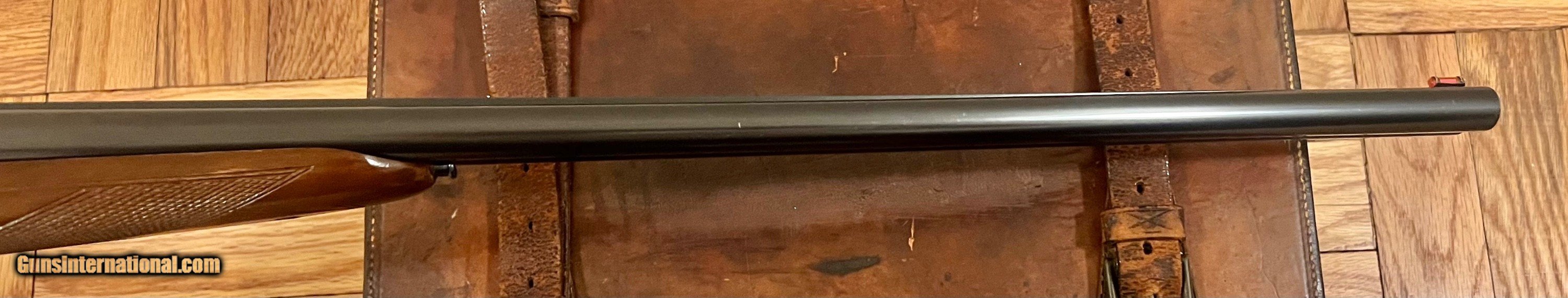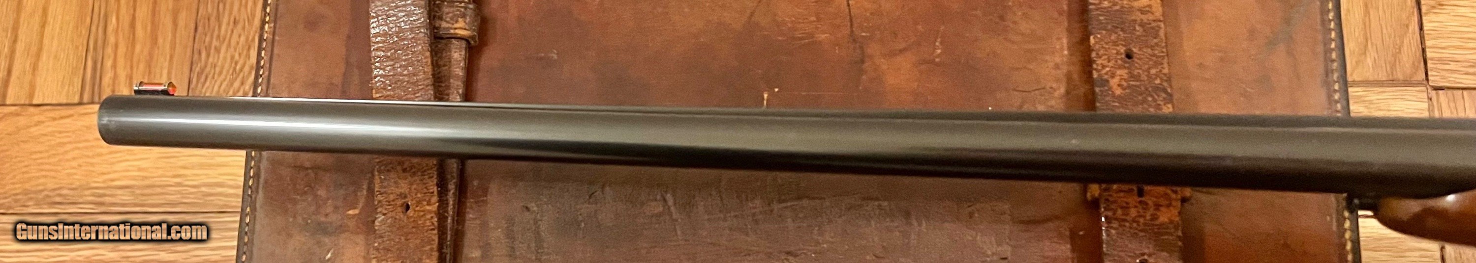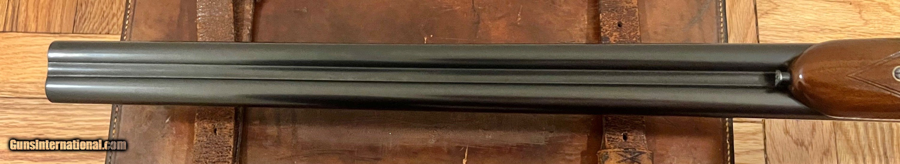Description: SKB model new royal (same as model 100) 25" non ejector barrels with flat matted rib Bores in excellent condition Lockup is tight as new Chokes: .006/.014 IC/M Bores: .615/.615 Minimum wall thickness R:0.028 L:0.029 Scaled frame scroll back action Single selective trigger Pistolgrip stock with splinter forend LOP 14 1/4" over original buttplate (will go to 15" with 1" pad installed) DAC 1 5/8 DAH 2 5/8 Neutral cast 5lbs 13oz Very good condition overall with minor blue wear and few handling marks on the wood. Classic well built SKB SxS 20ga that will definitely be a joy to carry in the field. SOLD Curio/Relic: Yes Shotgun Gauge: 20 Gauge Chambers: 3” Ejectors: No Condition: Very good Metal Condition: Very good Bore Condition: Excellent |