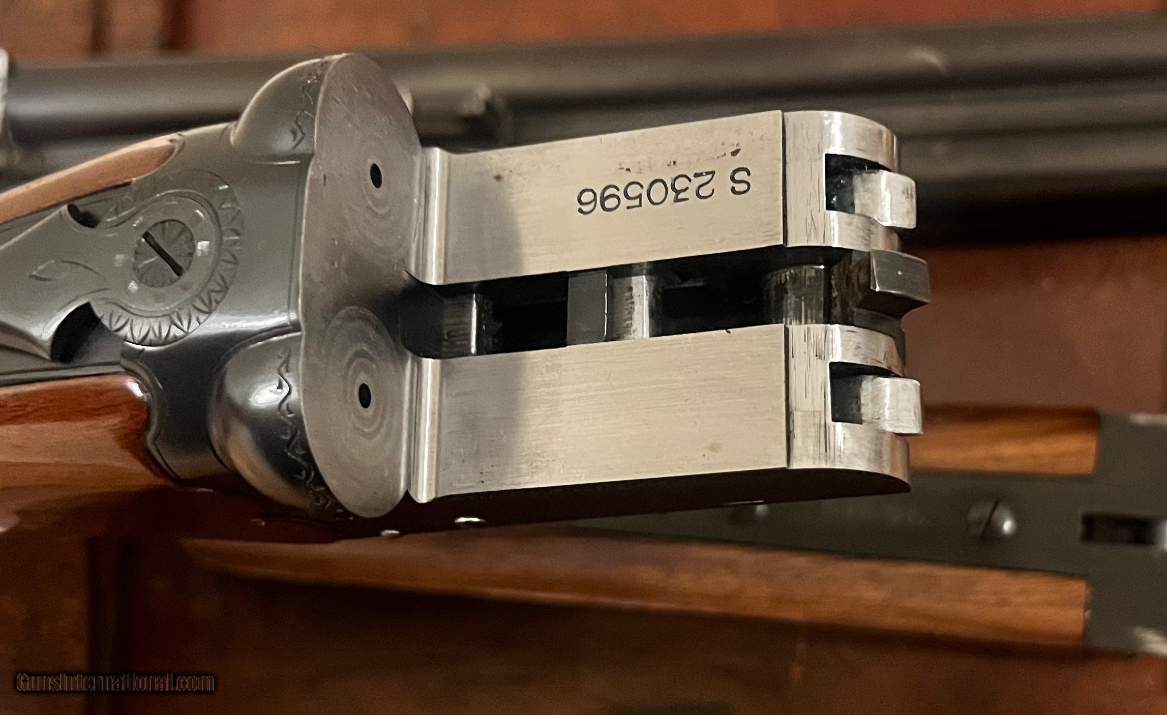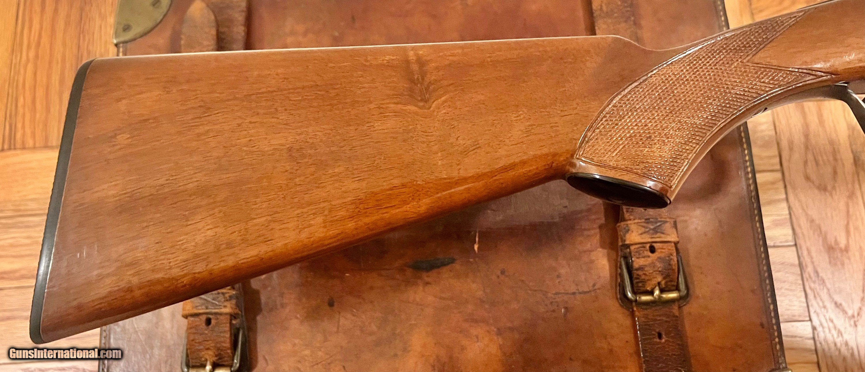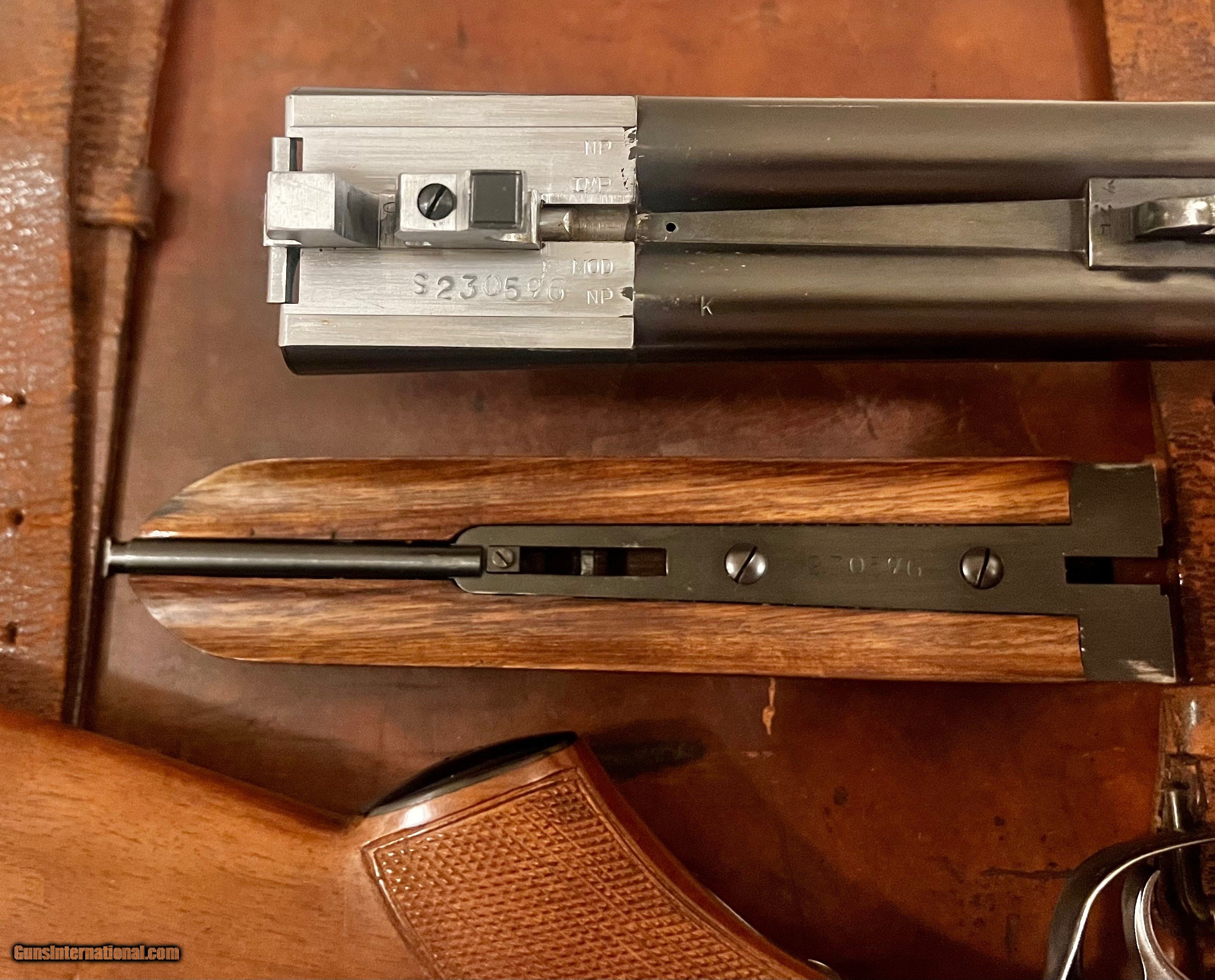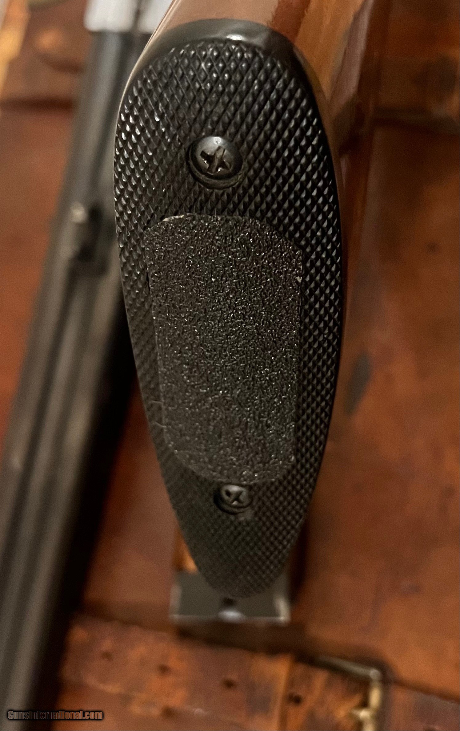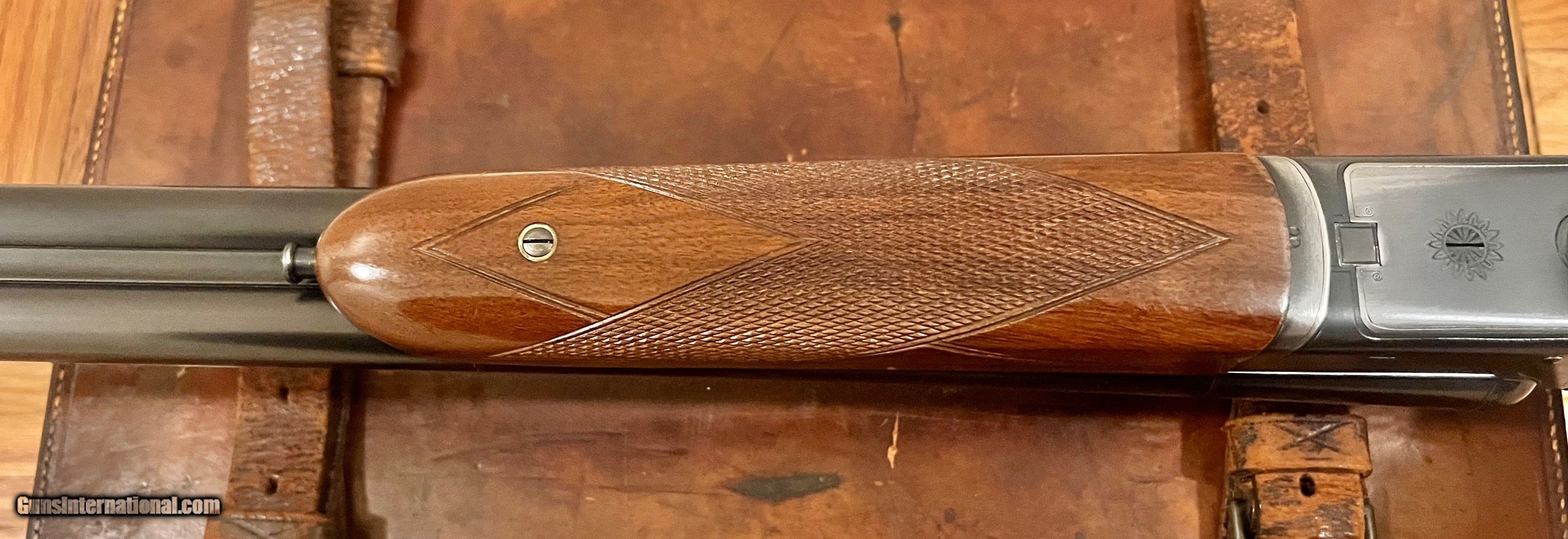 Description: SKB model new royal (same as model 100) 25" non ejector barrels with flat matted rib Bores in excellent condition Lockup is tight as new Chokes: .006/.014 IC/M Bores: .615/.615 Minimum wall thickness R:0.028 L:0.029 Scaled frame scroll back action Single selective trigger Pistolgrip stock with splinter forend LOP 14 1/4" over original buttplate (will go to 15" with 1" pad installed) DAC 1 5/8 DAH 2 5/8 Neutral cast 5lbs 13oz Very good condition overall with minor blue wear and few handling marks on the wood. Classic well built SKB SxS 20ga that will definitely be a joy to carry in the field. SOLD Curio/Relic: Yes Shotgun Gauge: 20 Gauge Chambers: 3” Ejectors: No Condition: Very good Metal Condition: Very good Bore Condition: Excellent |