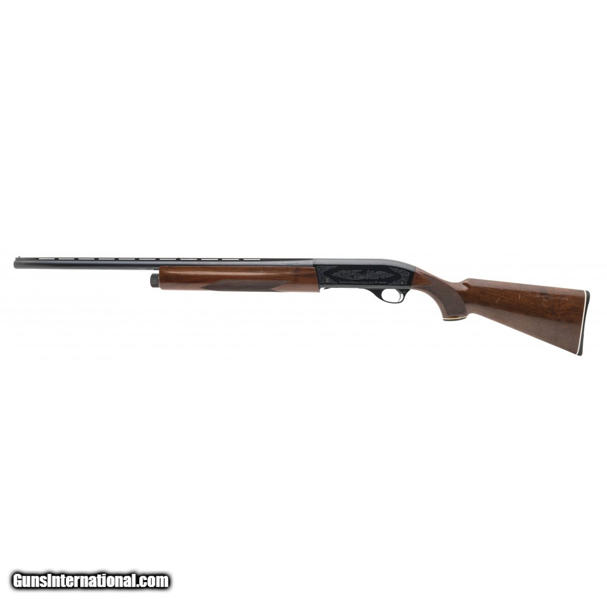 Description: " SN: FS07807. 12 gauge with a 26"" barrel, bore is excellent. Semi automatic shotgun with engraved receiver, vent rib, improved modified choked barrel and walnut stock. Overall very good condition. SOLD |