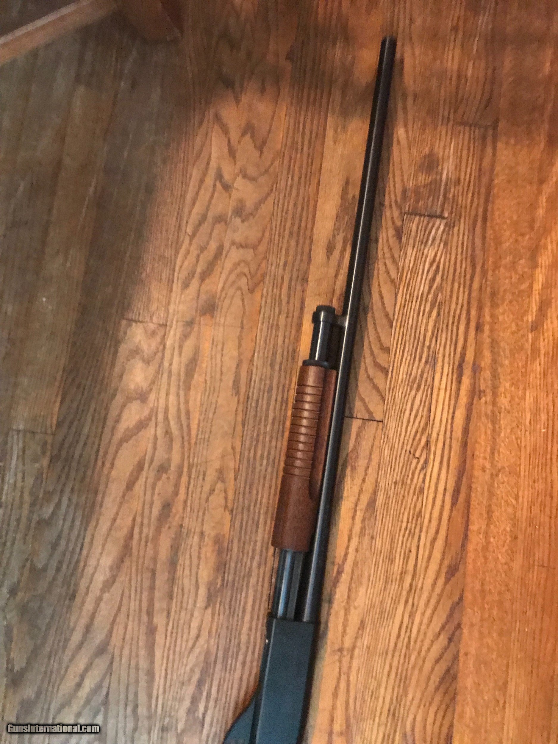Description: A pump action 12 gauge full choke. 3” mag, 30” barrel. Shotgun function is 100%. Finish is 98%, as new only blue loss is on mag tube due to cycling of pump action. Receiver is 100% original blue. Stock and forearm are as new, oil finish finish. Original butt plate. Barrel is removable. Bore is excellent. FFL required. Shipping $40 SOLD |