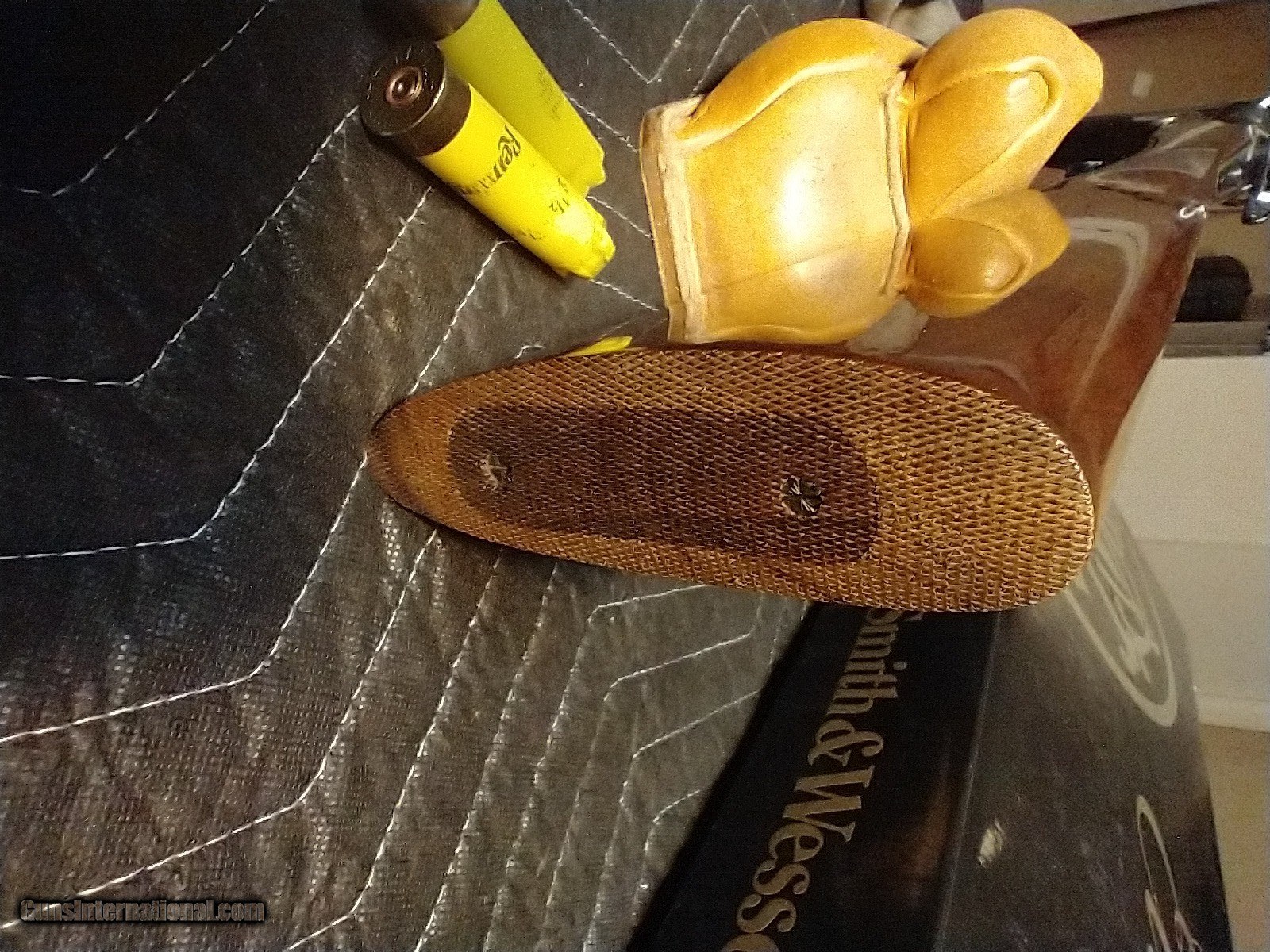 Description: This is a brand new never fired in the factory box Elite Gold sxs 20 guage. It has 3" chambers, scalloped boxlock action,28' tubes, fixed chokes at s and ic, ejectors, double triggers, grade III english style sock with 14 5/8' lop, color case hardened frame and rec. with scroll engraving. Weighs about 6# 5oz. Everything is new, beautiful. SOLD Shotgun Gauge: 20 Gauge Manufacturer: S&W Model: Elite Gold I Barrel Length: 28 Bore: New Chambers: 3 Ejectors: yes Condition: New Metal Condition: New Wood Condition: New Bore Condition: New Barrels: 28 Barrel Type: sxs Action: boxlock Triggers: dbl Stock: straight Stock Cast: rh Fore End: splinter Butt Pad: wood LOP: 14 5/8 Rib: solid Finish: satin Weight: 6.3 Sights: mid Chokes: ic and s Engraving: scroll |