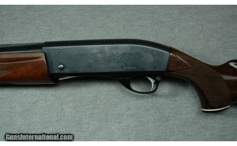 Description: Smith & Wesson Model 1000M in 12 Gauge. This is a semi-automatic shotgun offered by Smith & Wesson during the 1970s and 1980s. It was manufactured in Japan by Howa Machinery. It has an aluminum-alloy receiver and trigger guard with black anodizing. The receiver has scroll engravings. The barrel is high gloss chrome-molybdenum steel. The ventilated rib showed a matte finish. The stock is American walnut with cut checkering and a high-gloss finish. This Model 1000M has a 3-inch chamber and a 30-inch barrel. It is choked Full. No Box. 12 Gauge SOLD Chambers: 3 Inch Metal Condition: Very good Wood Condition: Very good with handling marks Bore Condition: Bright Barrels: 30 Inches Triggers: Factory Stock Dimensions: LOP 14 Inches Fore End: Cut checkered Walnut Butt Pad: Rubber pad Weight: 7 Lbs 12 Oz Sights: Two silver beads on a ventilated rib Chokes: Full Item Location: La Vista, NE |