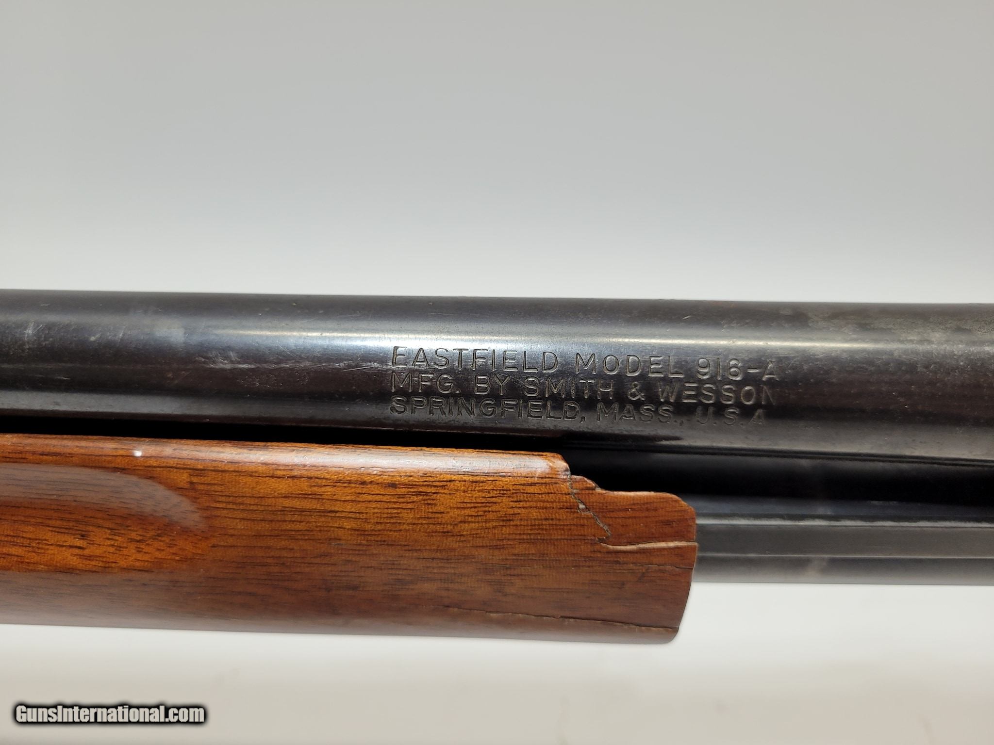 Description: Guns Listing ID: 672249 In fair condition light rust spots on the barrel. Later version of the 916-A pre-68 as no serial # Noble Manufacturing Company of Haydenville village within Williamsburg, Massachusetts, was a small gunmaker that produced shotguns and .22 caliber rifles. Noble, incorporated in 1943, was in bankruptcy as of mid-1971, and went out of business in 1973. In 1972, Smith & Wesson—located in Springfield, approximately 25 miles from Haydenville—bought patents and tooling for Noble‚‚s Model 66, a 12-gauge pump-action shotgun. Smith & Wesson produced the shotgun as their Model 916, with a sportsman version (916), takedown version (916T), and tactical version (916A). The guns were plagued by a variety of quality issues, including a recall due to a safety issue with barrels of the 916T version rupturing. The series was later discontinued and replaced by the pump-action Model 3000 and the semi-automatic Model 1000 SOLD Manufacturer: SMITH & WESSON Model: EASTFIELD 916-A Condition: Used - Non-Certified Barrels: 28 BARREL Gauge Info: 12 GA Finish: BLACK /W WOOD STOCK |