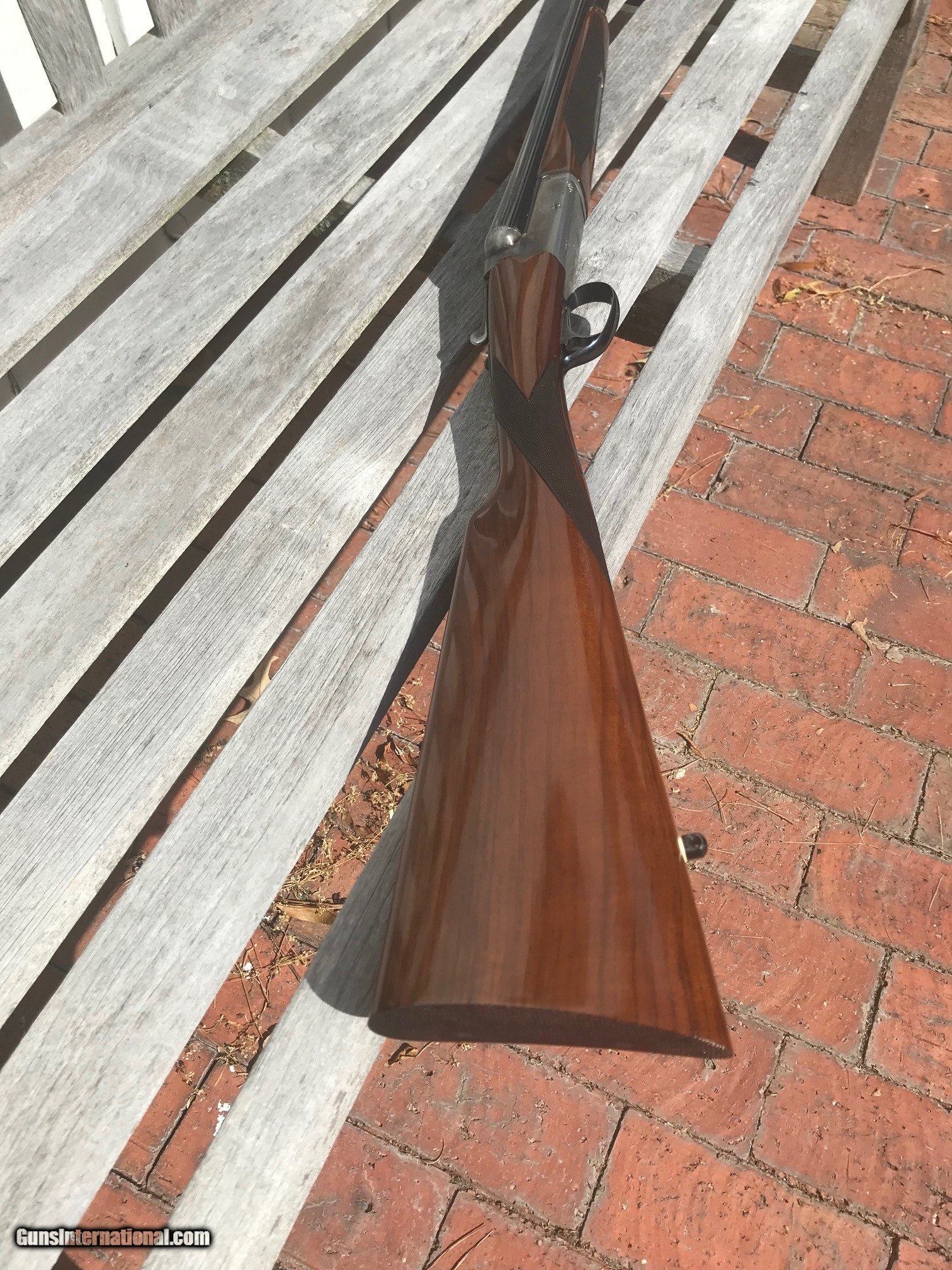 Description: S & W ELITE GOLD 20ga SXS, now marketed in USA as Dickinson Estate, made by Akus. I bought new, Excellent Condition, Choke reamed to Fixed Skeet - Skeet, Single trigger, shipping box, sling studs. SOLD Manufacturer: Akus - S & W Importer Model: 20ga Elite Gold Bore: 20ga Chambers: 3 inch Ejectors: YES Condition: Excellent Metal Condition: Case Harden warn on receiver bottom Wood Condition: Excellent Bore Condition: Excellent Barrels: 26 Barrel Type: SXS Action: Box Lock Triggers: Single Stock: English straight Stock Heel: 2 1/4 Butt Pad: Checkered Wood LOP: 14 1/2 Rib: Solid raised Finish: Orriginal Weight: 6 lb 5 oz Manufacture Date: Circa 2007 Chokes: Fixed Choke Left: Skeet Choke Right: Skeet Engraving: Some Item Location: Maryland |