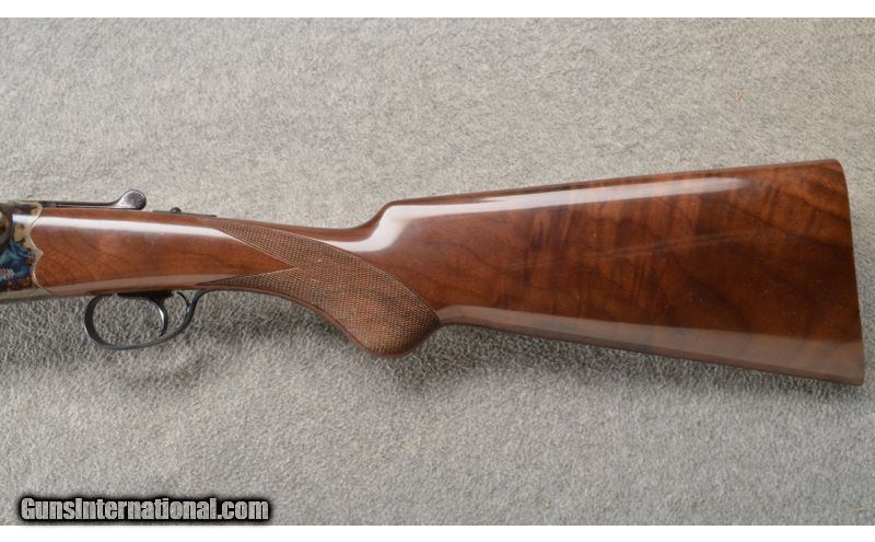 Description: This Smith & Wesson shotgun is very nice and well made. Its action is designed to keep the profile slim and center the weight of the gun between your hands. Ejectors are often ignored on guns in this price bracket, but not on the Elite Gold. The barrels wear a deep rich polished blue. Real color case hardening strengthens the engraved scalloped boxlock action while adding deep rich colors to the action body. A richly hued Turkish walnut stock sports a gloss finish and checkered butt for an additional touch of elegance. This is a new gun with a single trigger. 20 Gauge SOLD Item Location: Owatonna, MN |