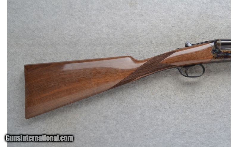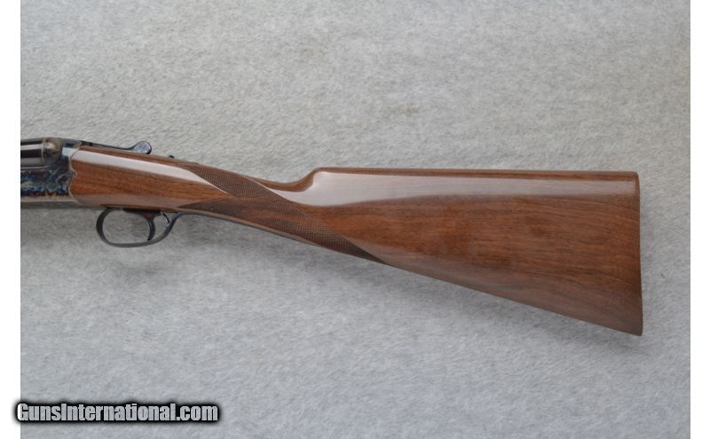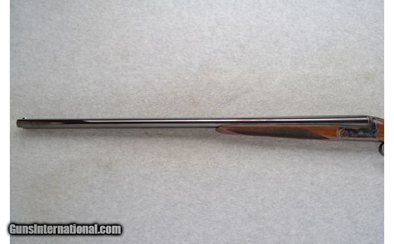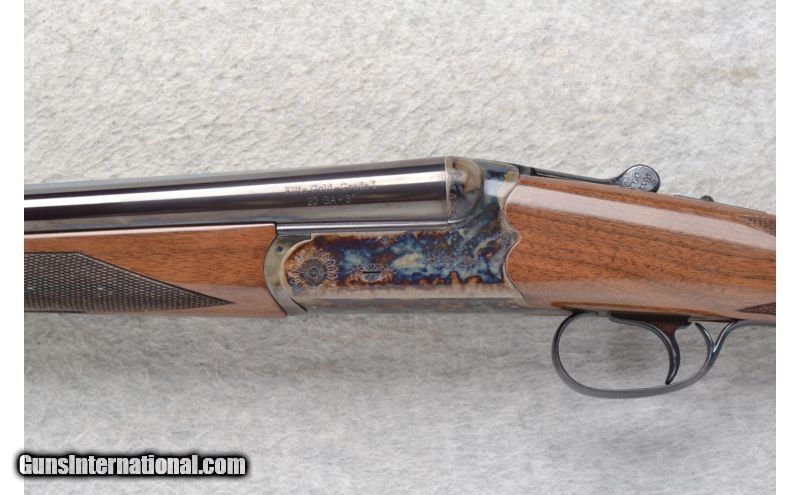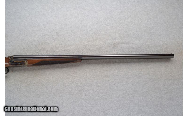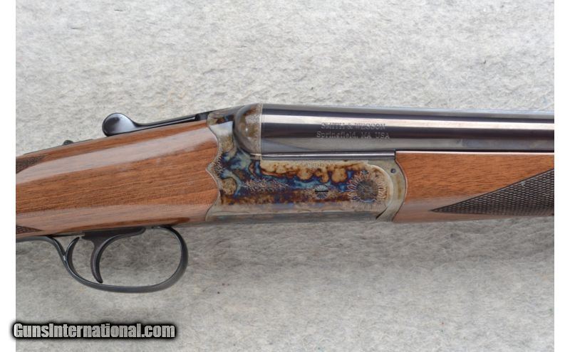Description: This Smith & Wesson Model Elite Gold - Grade I is a 20 Ga. Side by Side shotgun. It has 28 inch barrels with a solid rib. 3 inch chambers with fixed Imp.Cyl. and Mod. chokes. The stock is a checkered Grade III walnut straight grip with a checkered Grade III walnut splinter forearm. A single trigger. Has a scalloped boxlock action with ejectors. A color case hardened frame with light scroll engraving. This is a New In Box shotgun. SOLD Manufacturer: Made in Turkey. Caliber Info: 20 Ga. Chambers: 3 inch Side x Side with ejectors. Metal Condition: New Wood Condition: New Bore Condition: New Barrels: 28 inch blued with a solid rib. Front and middle bead sights on the rib. Triggers: Single Stock: Checkered Grade III walnut straight grip stock. Scalloped boxlock action. Color case hardened frame with light scroll engraving. Stock Dimensions: LOP 14 inches. Fore End: Checkered grip Grade III walnut splinter. Butt Pad: Checkered walnut butt. Weight: 6 lbs. 6 oz. Sights: White bead front. Brass middle bead. Chokes: Fixed Imp.Cyl. and Mod. Extras: This New In Box shotgun comes in its original cardboard box. Item Location: Richfield, WI |