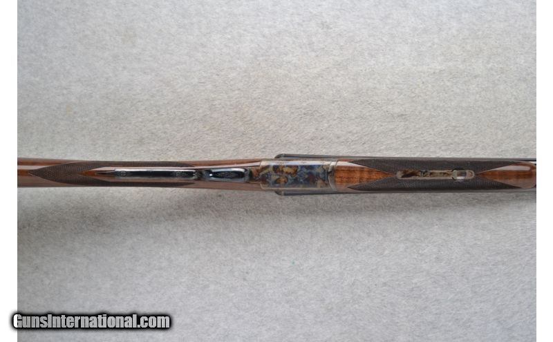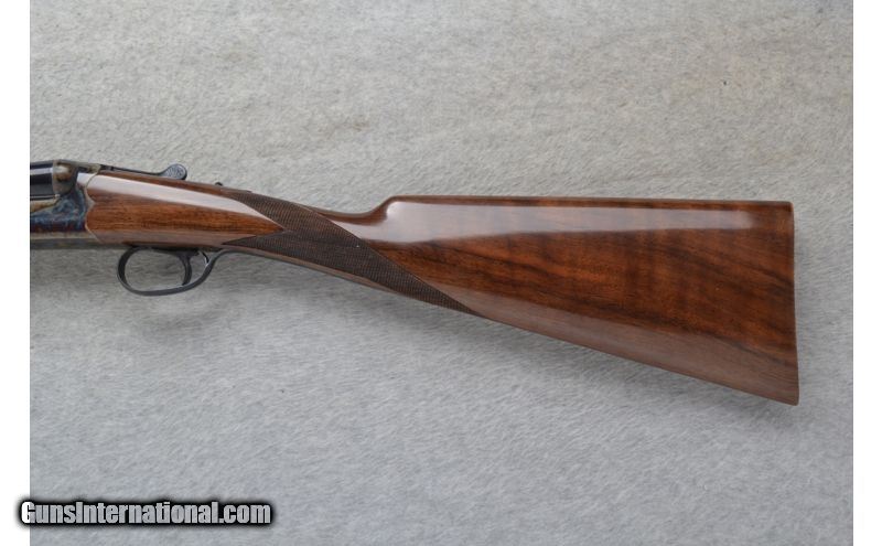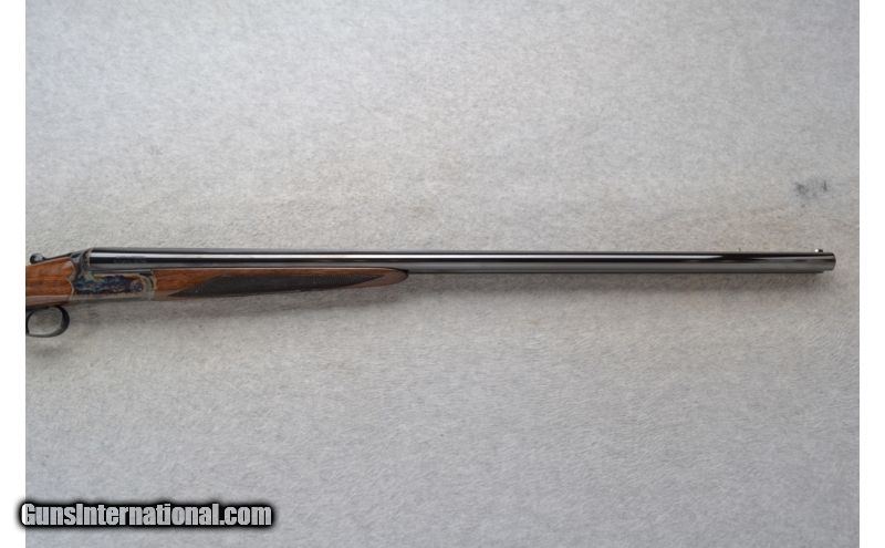 Description: This Smith & Wesson Model Elite Gold - Grade I is a 20 Ga. Side by Side shotgun. It has 28 inch barrels with ejectors and a solid rib. A white bead front and brass middle bead sight. 3 inch chambers with fixed Imp.Cyl. and Modified chokes. The stock is a checkered Grade III walnut straight grip with a checkered splinter forearm. A single trigger. Has a scalloped boxlock action. A color case hardened frame with light scroll engraving. As new condition in box. SOLD Manufacturer: Made in Turkey. Caliber Info: 20 Ga. Chambers: 3 inch Side x Side with ejectors. Metal Condition: New Wood Condition: New Bore Condition: New Barrels: 28 inch blued with a solid rib. Front and middle bead sights on the rib. Triggers: Single Stock: Checkered Grade III walnut straight grip stock. Stock Dimensions: LOP 14 1/2 inches. Fore End: Checkered grip Grade III walnut splinter. Butt Pad: Checkered walnut butt. Weight: 6 lbs. 8 oz. Sights: White bead front. Brass middle bead. Chokes: Fixed Chokes - Imp.Cyl. and Mod. Extras: Comes in its original carton. Item Location: Richfield, WI |