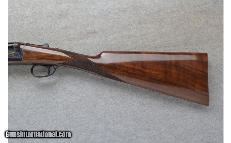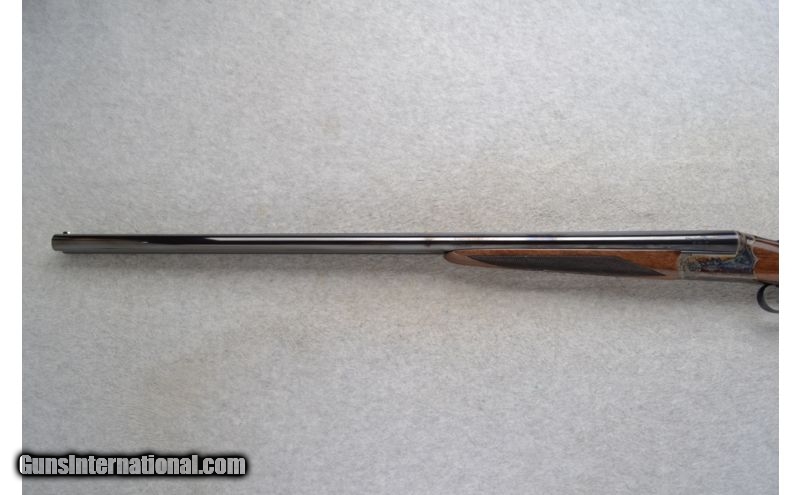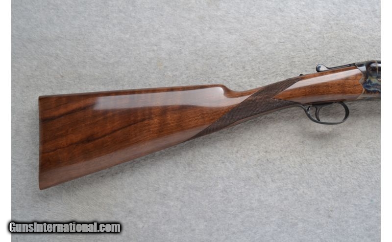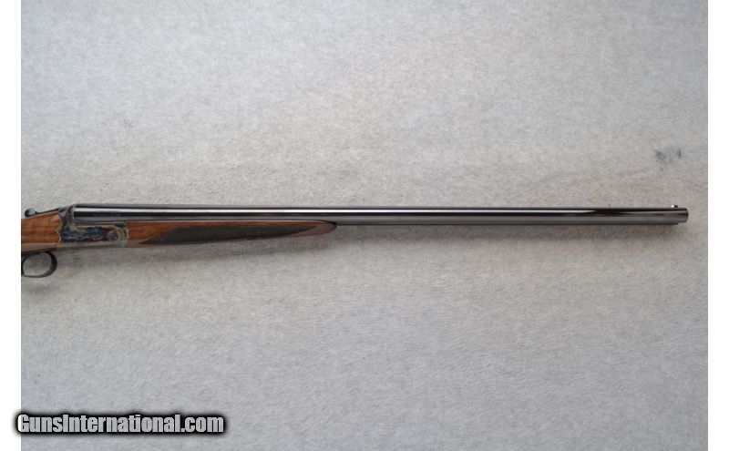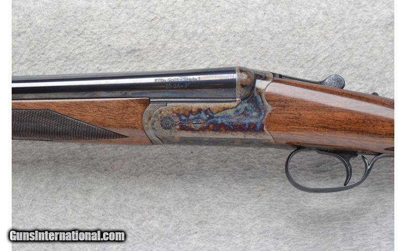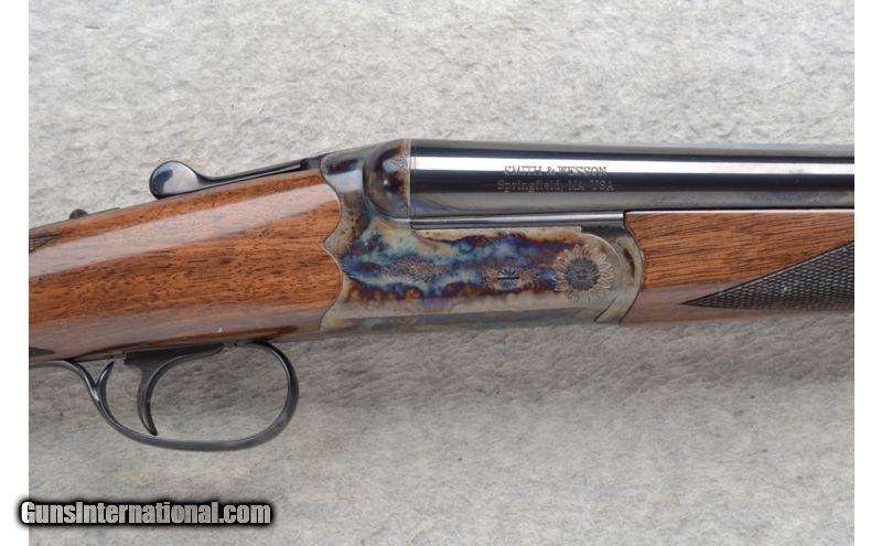 Description: This Smith & Wesson Model Elite Gold - Grade I is a 20 Ga. Side by Side shotgun. It has 28 inch barrels with ejectors and a solid rib. A white bead front and brass middle bead sight. 3 inch chambers with fixed Imp.Cyl. and Modified chokes. The stock is a checkered Grade III walnut straight grip with a checkered splinter forearm. A single trigger. Has a scalloped boxlock action. A color case hardened frame with light scroll engraving. As new condition in box. SOLD Manufacturer: Made in Turkey. Caliber Info: 20 Ga. Chambers: 3 inch Side x Side with ejectors. Metal Condition: New Wood Condition: New Bore Condition: New Barrels: 28 inch blued with a solid rib. Front and middle bead sights on the rib. Triggers: Single Stock: Checkered Grade III walnut straight grip stock. Stock Dimensions: LOP 14 1/2 inches. Fore End: Checkered grip Grade III walnut splinter. Butt Pad: Checkered walnut butt. Weight: 6 lbs. 7 oz. Sights: White bead front. Brass middle bead. Chokes: Fixed Chokes - Imp.Cyl. and Mod. Extras: Comes in its original carton. Item Location: Richfield, WI |