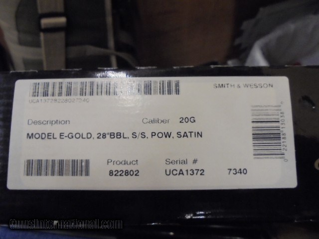 Description: CONSIGNMENT AS NEW IN BOX SMITH & WESSON MODEL E-GOLD SXS 20 GAUGE 822802 28' BARRELS M & IC 3" CHAMBERS The Elite Gold models feature a patent pending, Smith & Wesson designed trigger plate action, which enables a gracefully rounded and sculpted receiver; hand cut checkering and engraving; AAA (grade III) Turkish walnut stocks; and a precise wood to metal fit. Both the Elite Gold and Elite Silver shotguns are crafted with hand engraved receivers finished in a true bone charcoal case hardening, for added protection and distinct coloring. SPECIFICATIONS: Mfg Item Num: 822802 Category: FIREARMS - SHOTGUNS Action :Side by Side Gauge :20 GA Barrel Length :28" Capacity :2 Chamber :3" Length :45 1/2" Weight :6.7 lbs Drop :1 1/2" Comb & 2 1/4" Heel Stock :Turkish Walnut Finish :Black ****PLEASE CALL IN THE WITH THE SELLER’S INVENTORY NUMBER IF INQUIRING ABOUT A FIREARM****** WE DO NOT SHIP FIREARMS AND/OR FIREARMS’ PARTS OUT OF THE 50 UNITED STATES, SO DON’T ASK PRICE REFLECTS PAYMENT BY MONEY ORDER / CASHIERS CHECK. A 3% PREMIUM IS ADDED FOR CREDIT CARDS. WE DO ACCEPT PERSONAL OR BUSINESS CHECKS, BUT THERE IS A GRACE PERIOD OF 10 BUSINESSS DAYS ON THEM. Shipping is $40 for handgun and $30 for long gun. Shipping to Alaska and Hawaii will be more based on weight of firearm. WE DO OFFER LAYAWAY PLANS FOR 30,60, OR 90 DAYS. THERE IS A $5.00 CHARGE FOR EVERY 30 DAYS ITEM IS ON LAYAWAY. WE ALSO REQUIRE A 20% DOWN PAYMENT ON TOTAL OF LAYAWAY SALE. LAYAWAYS ARE NON- REFUNDABLE. HERE IS HOW THIS PROCESS WORKS. YOU WOULD CALL US AT 540-337-9218 WITH LISTER # TO PURCHASE THE GUN. THEN ONCE I HAVE RECEIVED PAYMENT AND AN FFL (FEDERAL FIREARMS LICENSE) FROM A LICENSED DEALER IN YOUR AREA OF YOUR CHOICE. WE WILL THEN SHIP THE GUN TO THEM. YOU WOULD THEN PICK UP THE GUN AT YOUR LOCAL DEALER AND DO PAPER WORK THERE. Please have your FFL Dealers contact information when you call. DOMINION OUTDOORS 15 ANGELA COURT FISHERSVILLE, VA 22939 540-337-9218 540-337-2422 fax M – F 9 to 6 ETZ Sat 9 – 4 ETZ ****PLEASE CALL IN THE WITH THE SELLER’S INVENTORY NUMBER**** ***PLANO HARD CASES AVAIABLE FOR PURCHASE $19.99 WITH THE PURCHASE OF A FIREARM** ****PLEASE CALL IN THE WITH THE SELLER’S SOLD |