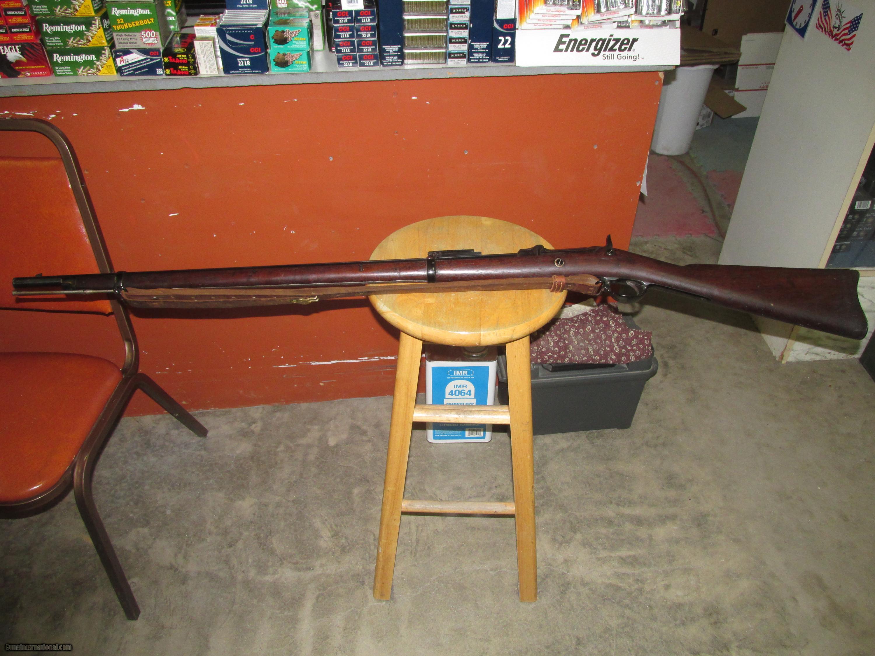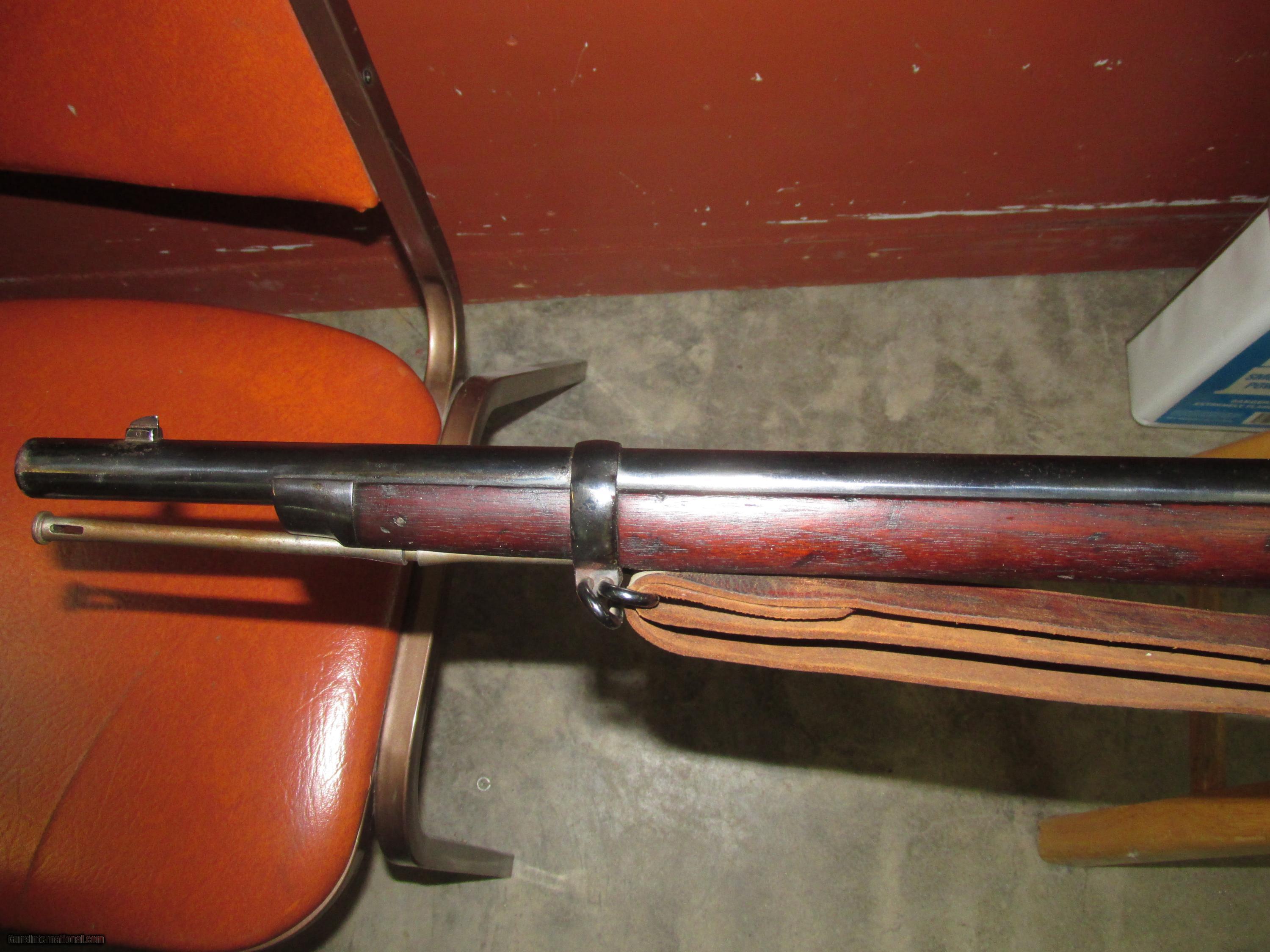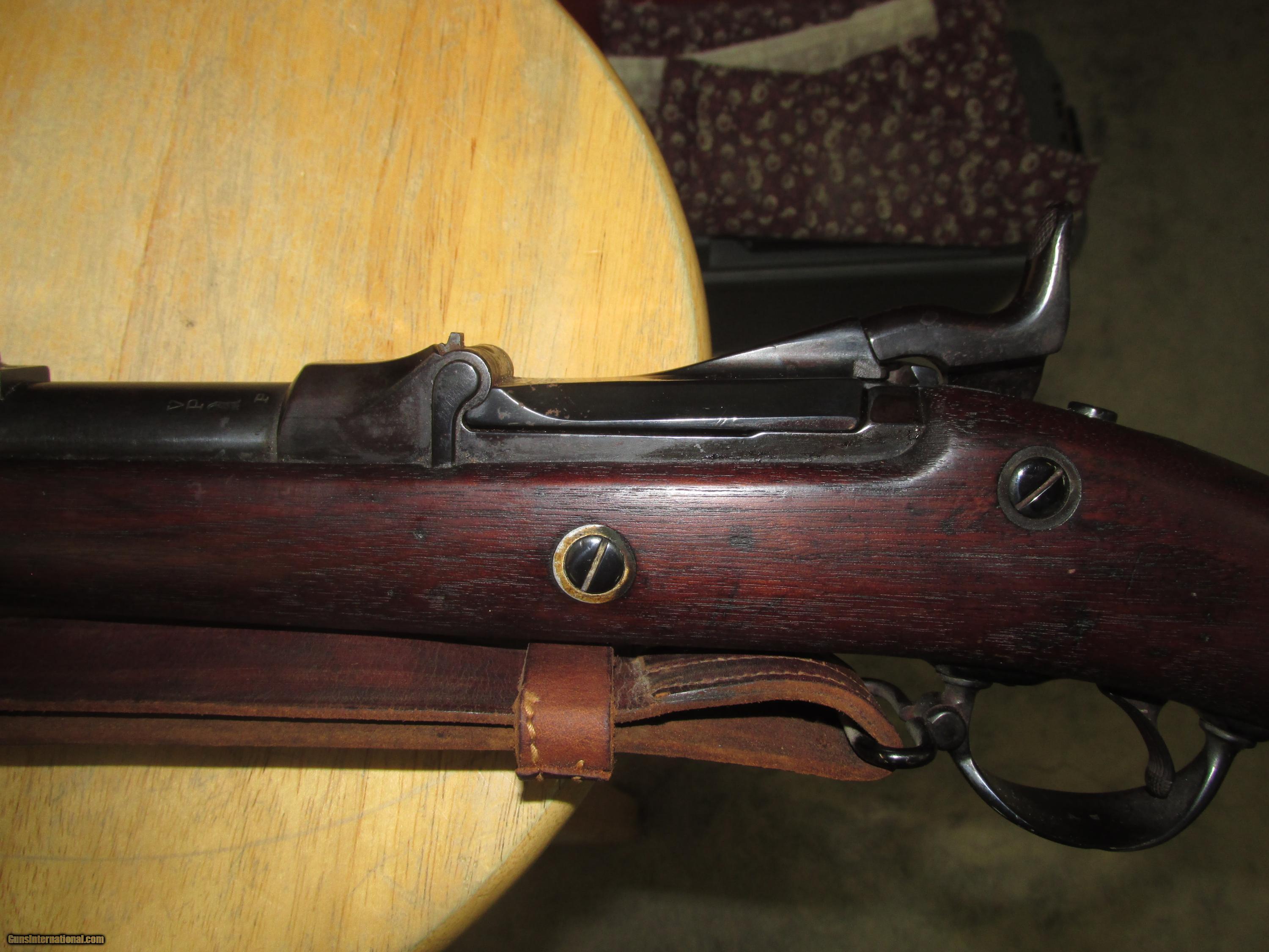 Description: this is an 1873 springfield trap door .the bore on this rifle is very good.the bluing I believe was redone at an earlier time.the bluing is just to bright.the rifle is nice and the sling is also very nice.the serial number is 3S4942.shipping will be 40.00.thankyou SOLD |
