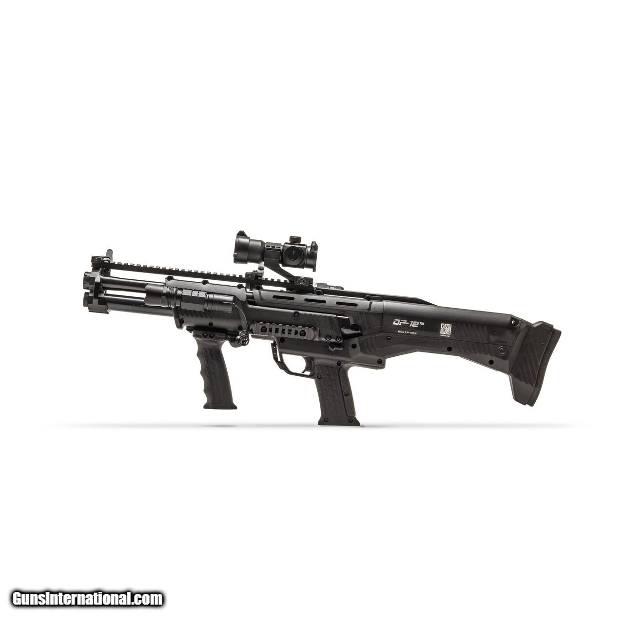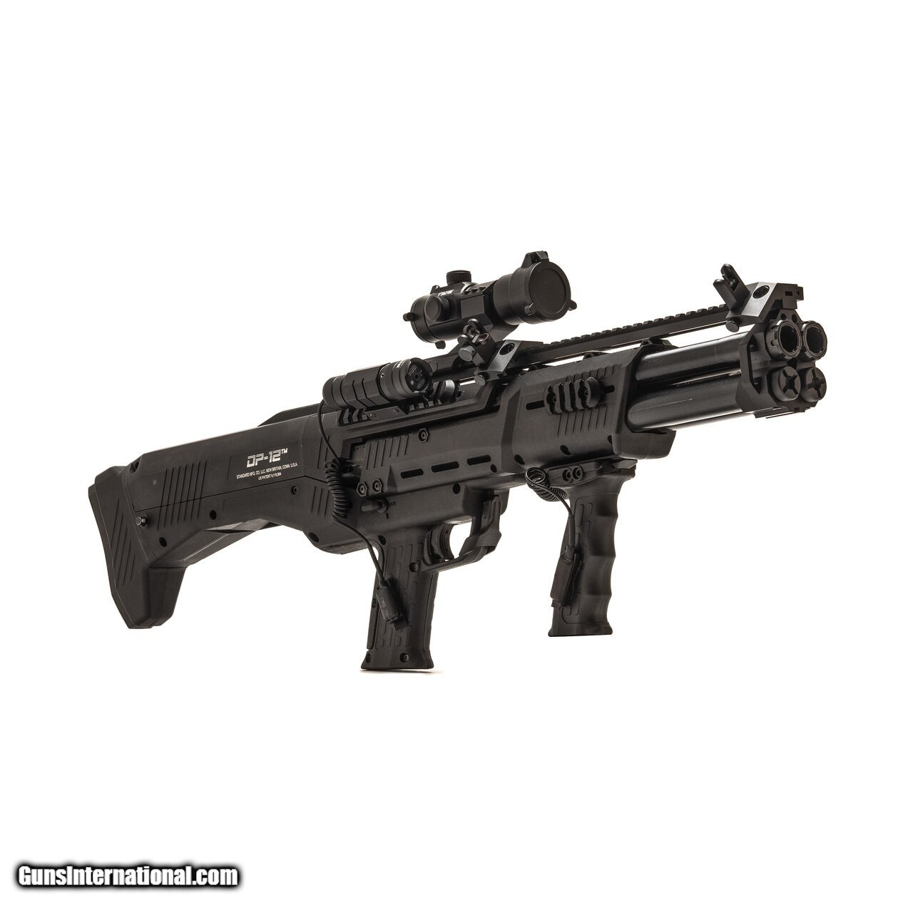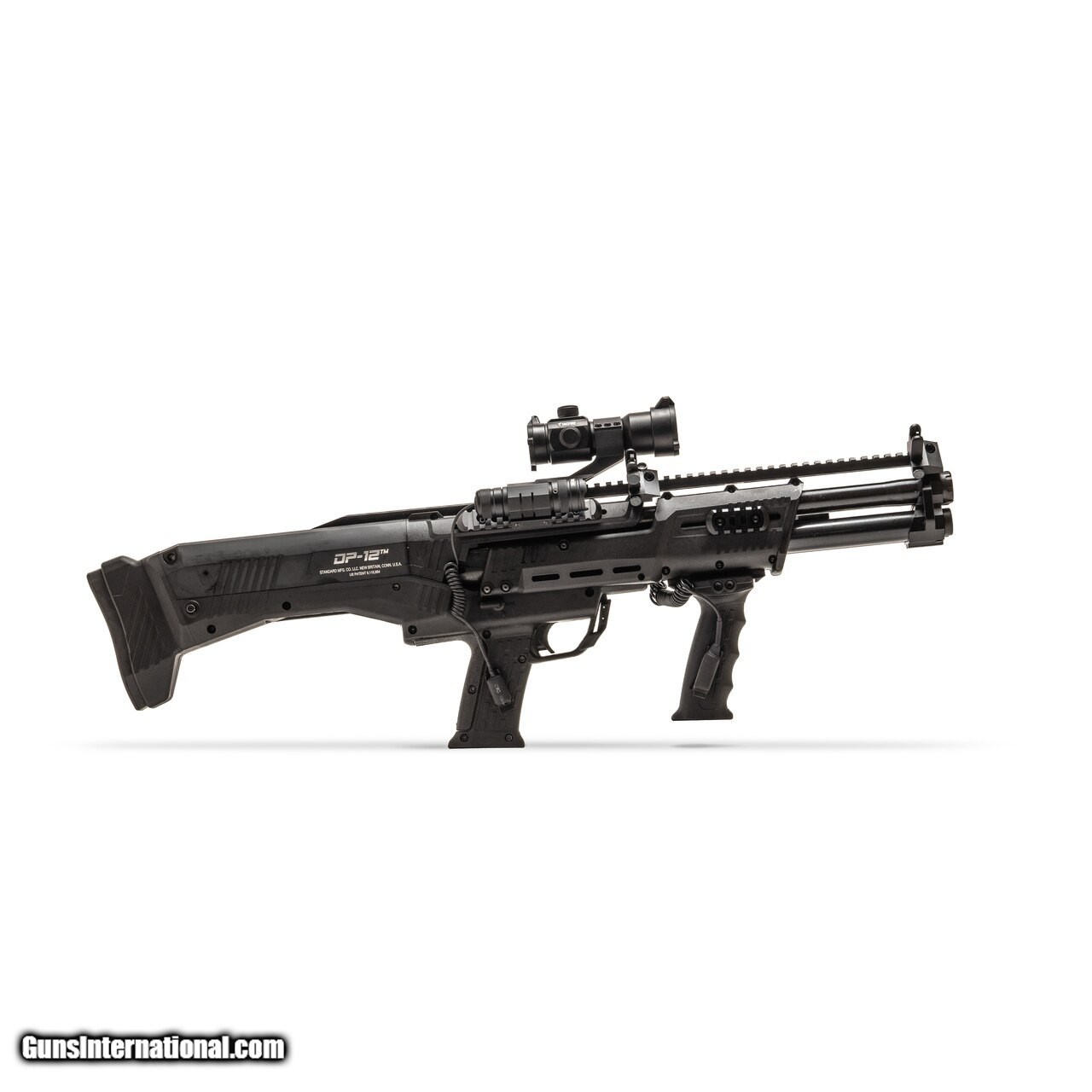 Description: Standard Manufacturing Company has raised the bar with this extraordinary shotgun that truly is one of kind that was manufactured in a state of the art facility. The innovative design and guaranteed functionality is well ahead of its time. Extreme detail has been a priority from conception through production of these double barrel repeater shotguns. The first of its kind, a premium defense, double barreled, pump, 12 gauge shotgun that quickly fires 16 rounds. Designed for the most discerning shooters who demand extreme firepower and require consistent reliability. The stock has a QR code you can scan with your smart phone or tablet to down load the manual and other information. Please be sure and fill out the warranty card and send it to Standard Manufacturing. The spreader choke tubes are designed to shoot a devastating pattern at 25 yards. The choke tubes have Tru-Choke thread patterns. Some pictures show door breachers, these are sold separately. The DP-12 provides accessory rails and slots that allow you to customize it with your own accessories. Ergonomically designed to balance the weight of a loaded gun for quick and efficient handling with minimal recoil. **PLEASE NOTE: This item MUST be shipped to Licensed Firearms Dealer. We will contact you for a copy of the FFL that you would like to use to transfer this firearm. ** Specs: Caliber: 12 Gauge Overall Length: 29.5" Weight (unloaded): 9 pounds 12 ounces Barrels: 2 x 18 7/8”, chambered for 2 ¾” or 3" shells Chokes: Both barrels include spreader choke tubes with Tru-Choke thread pattern Capacity: 14 rounds in magazine tubes + 2 in chambers - 16 total with indicator windows Action: pump action with two shots from single trigger, inline shell feeding Material: Machined from aircraft grade 7075 aluminum, Thermal coated receiver Controls: Ambidextrous safety, ambidextrous pump slide release Grip: Co-Molded non-slip rubber pistol grip, composite front vertical grip Stock: Synthetic stock Forend: Composite material with slots for MOE Rails Recoil Pad: Rubber with dual spring shock absorbing recoil mechanism Sling Points: Front sling attachment, sling swivel attachment on stock The Works Package #3 Includes: