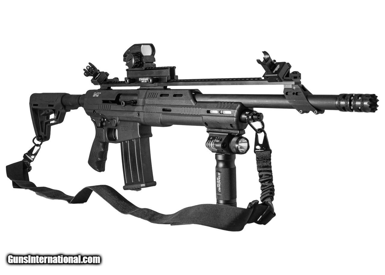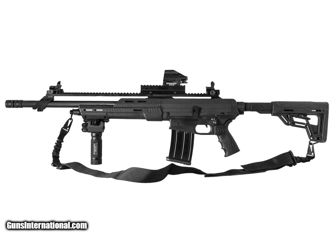 Description: SPECIAL OFFER! NORMALLY PRICED AT AROUND $1700.00, GET ALL OF THIS NOW FOR $1,100.00! This is one of our SHOWROOM pieces. Comes with FULL WARRANTY just as a new gun! Standard Manufacturing’s SKO shotgun, proudly made in the USA, offers superior firepower due to its fast semi-auto action and quick interchange magazines. It possesses the most reliable gas operated system available with smooth and flawless operation across a variety of loads. Machined from 7075 aircraft grade aluminum with the latest technology in CNC machining, then Mil-Spec hard anodized, the SKO Shorty is both lightweight and durable. Internal components are salt bath nitride coated for optimum lubricity. Notable features include an ambidextrous safety, familiar AR-style controls for an easy transition to this platform, and a threaded muzzle to accept a variety of choke tubes, door breachers, and accessories. The length is over 26” and has an 18 5/8” barrel made from 4140 steel that accepts both 2 ¾” and 3” shot shells; which can be loaded in the included 5 round magazine with optional 2, 5, or 10 round magazines available. Large 22” picatinny top rail which provides ample room for optics, lasers, and illumination devices. **PLEASE NOTE: This item MUST be shipped to Licensed Firearms Dealer. We will contact you for a copy of the FFL that you would like to use to transfer this firearm. ** Specs: Caliber: 12 Gauge Overall Length: 38” Weight (w/out mag): 7 lbs. 10 oz. Barrel: 18 7/8”, chambered for 2 ¾” and 3” shells Chokes: Tru-Choke thread pattern Capacity: 5 round magazine; optional 2, 5, 10 round mags available Action: Gas operated semi-automatic Material: Receivers machined from aircraft grade 7075 aluminum; Mil-Spec hard anodized Controls: Ambidextrous Safety, AR-style mag and bolt release Grip: Polymer; accepts most AR-style grips Stock: 6-position buttstock; accepts any Mil-Spec buttstock Forend: Composite material with slots for MOE and bolt on rails The Works Package includes: Reflex Sight Aluminum Tactical Grip with Red Laser & Flashlight Flip up Iron AR-15 Style Backup Sights 1” High 13 Slot Riser 45° Offset Sight Mounts(2) 2 Point Black Tactical Sling 1” Swivel Set Front Mounting Rail with Screw DP1990 Stiletto Chokes THE SKO IS UNAVAILABLE TO PURCHASE IN THE STATES OF NEW YORK, MASSACHUSETTS, CALIFORNIA AND CONNECTICUT. $50.00 Shipping SOLD Shotgun Gauge: 12 Gauge |
