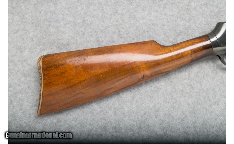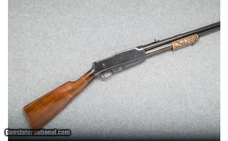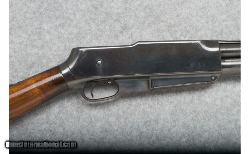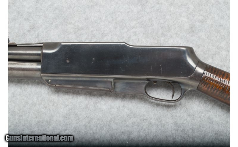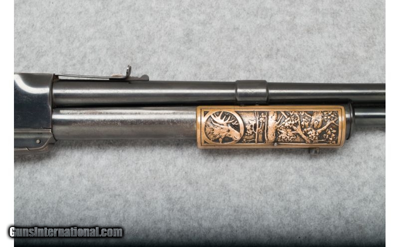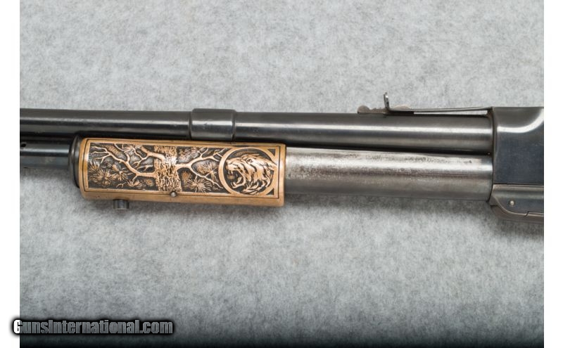 Description: Used. Fires as both a semi-auto and pump! SOLD Caliber Info: .35 Rem. Metal Condition: Very good; overall Wood Condition: Good; some handling marks; notches carved at wrist Bore Condition: Poor; corrosion throughout Barrels: 22 Triggers: Smooth blued steel Stock: Smooth straight grip walnut Stock Dimensions: LOP - 13 1/4 Fore End: Cast bronze with animal scenes Butt Pad: Cast bronze Weight: 8 lbs. 2 oz. Sights: Adjustable rear; ramp front with bead Item Location: Sun Prairie, WI |