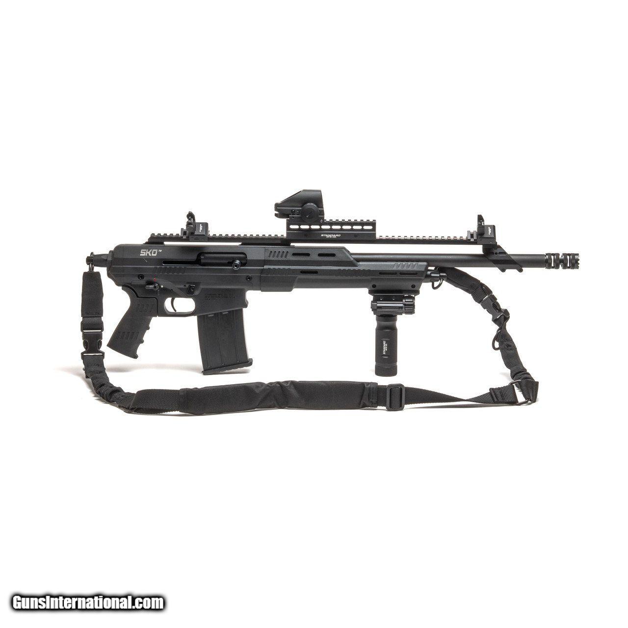 Description: Standard Manufacturing’s SKO Shorty, proudly made in the USA, offers superior firepower due to its fast semi-auto action and quick interchange magazines. It possesses the most reliable gas operated system available with smooth and flawless operation across a variety of loads. And even has bolt hold open after last round. Machined from 7075 aircraft grade aluminum with the latest technology in CNC machining, then Mil-Spec hard anodized, the SKO Shorty is both lightweight and durable. Internal components are salt bath nitride coated for optimum lubricity. Notable features include an ambidextrous safety, familiar AR-style controls for an easy transition to this platform, and a threaded muzzle to accept a variety of choke tubes, door breachers, and accessories. The length is over 26” and has an 18 5/8” barrel made from 4140 steel that accepts both 2 ¾” and 3” shot shells; which can be loaded in the included 5 round magazine with optional 2, 5, or 10 round magazines available. Large 22” picatinny top rail which provides ample room for optics, lasers, and illumination devices. **PLEASE NOTE: This item MUST be shipped to Licensed Firearms Dealer. We will contact you for a copy of the FFL that you would like to use to transfer this firearm. ** Specs: Caliber: 12 Gauge Overall Length: 28 ¾” Weight (w/out mag): 7.14 lbs. Barrel: 18 7/8”, chambered for 2 ¾” and 3” shells Chokes: Tru-Choke thread pattern Capacity: 5 round magazine; optional 2, 5, 10 round mags available Action: Gas operated semi-automatic Material: Receivers machined from aircraft grade 7075 aluminum; Mil-Spec hard anodized Controls: Ambidextrous Safety, AR-style mag and bolt release Grip: Polymer; accepts most AR-style grips Forend: Composite material with slots for MOE and bolt on rails; INCLUDES forward vertical grip The Works Package includes: Reflex Sight CXHD113 Aluminum Tactical Grip with Red Laser & Flashlight Flip up Iron AR-15 Style Backup Sights 1” High 13 Slot Riser 45° Offset Sight Mounts 2 Point Black Tactical Sling 1” Swivel Set Front Mounting Rail with Screw Door Buster Door Breaching Chokes (DP1990 Stiletto Chokes available for an additional $75) * The accessories do not come assembled onto the SKO Shorty. We offer assembly at an additional charge of $175.00 * THE SKO SHORTY IS UNAVAILABLE TO PURCHASE IN THE STATES OF NEW YORK AND CALIFORNIA. $25.00 shipping SOLD |