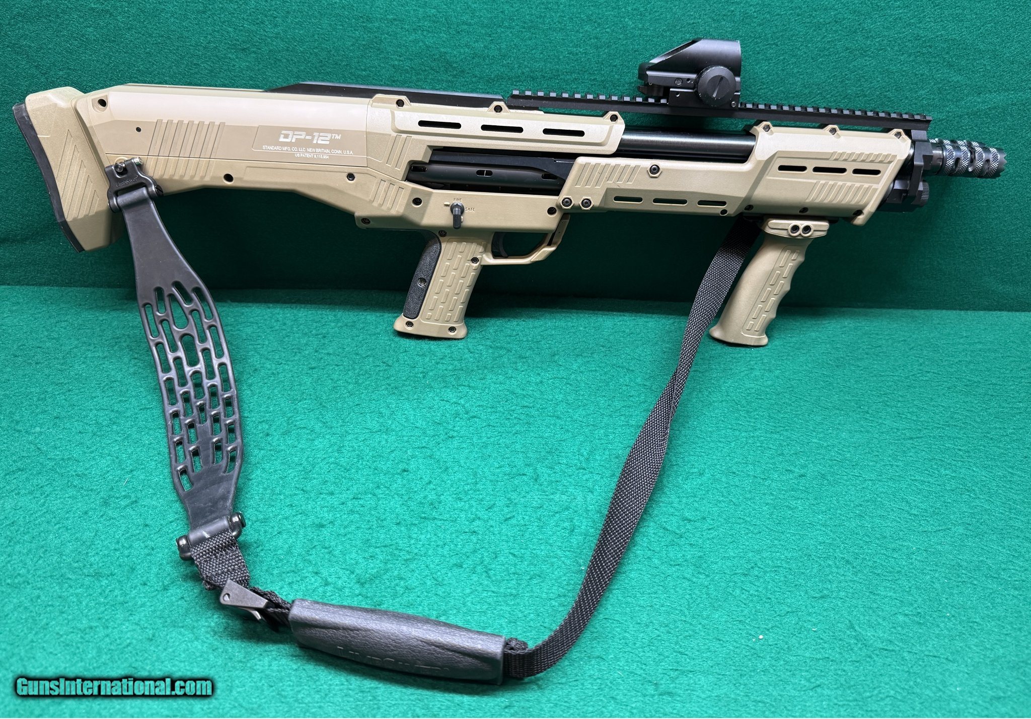 Description: Guns Listing ID: 534864 This listing is for a USED Standard Manufacturing DP-12 12GA 3” Black/FDE Finish 18.875\" BBL 14+2. This is a used gun, it has been fired and will have residue present. This Standard MFG DP-12 is chambered in 12 gauge, it will hold 14 total rounds in the magazine tubes, and it will chamber up to 3 inch shells. This shotgun comes with two 18.875 inch barrels, and both barrels come installed with extended spreader chokes. It comes equipped with a DP-12 labeled red dot sight. This shotgun also comes with a Limbsaver Kodiak sling. There are a few light scratches across this shotgun, and there is some light fouling present in the bores. There are several scuff marks present on the red dot sight. The action appears to be in good condition, the finish appears to be in good condition, and the bores appear to be in good condition. This would be a great self-defense shotgun. ** DISCLAIMER** THIS FIREARM HAS NOT BEEN TEST FIRED*** SOLD Manufacturer: STANDARD MANUFACTURING Model: DP-12 Condition: Used - Non-Certified Barrels: 18.87 Action: PUMP ACTION Gauge Info: 12 GA Finish: black/fde |