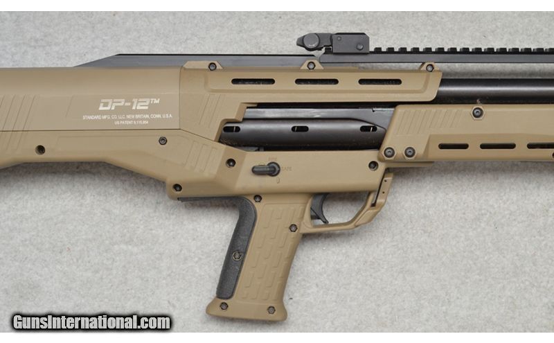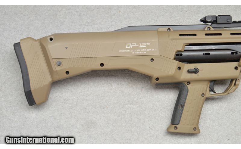 Description: Standard Manufacturing DP-12 12 Gauge shotgun is in Very good condition. It holds 14 rounds in the magazine tubes + 2 in chambers = =16 total with indicator windows. It Features a pump action and 2 trigger pulls to fire each barrel (they do not fire at the same time). It also comes with a tan sling. 12 Gauge SOLD Metal Condition: Good condition with handling marks Bore Condition: Clean Barrels: 18 Fore End: Composite material with slots for MOE Rails Butt Pad: Rubber with dual spring shock absorbing recoil mechanism Weight: 10 lb 10 oz Chokes: Both barrels include spreader choke tubes with Tru-Choke thread pattern Item Location: Fort Worth, TX |