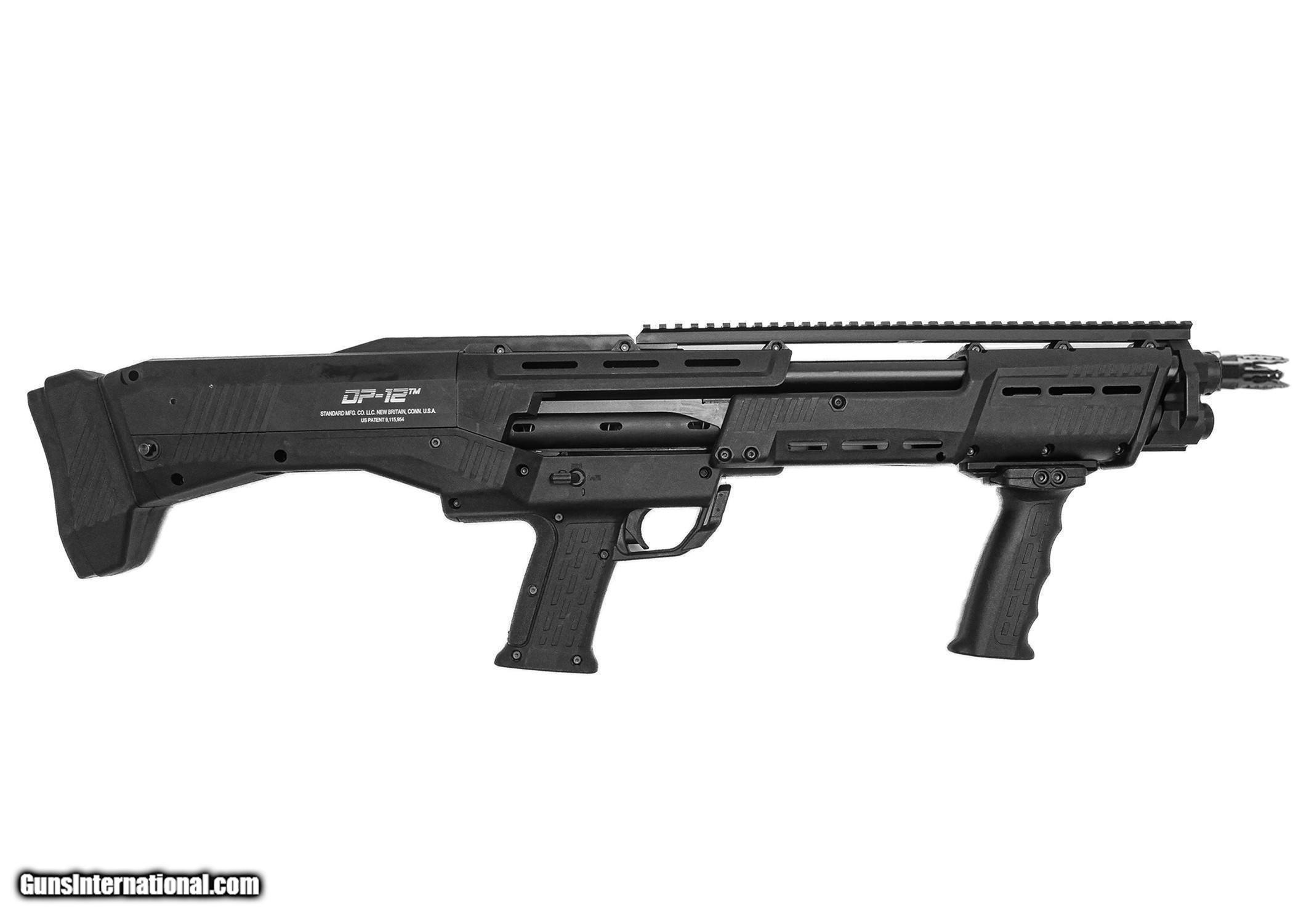 Description: ONE PUMP, TWO SHOTS: Standard Manufacturing Company has raised the bar with this extraordinary shotgun that truly is one of kind that was manufactured in a state of the art facility. The innovative design and guaranteed functionality is well ahead of its time. Extreme detail has been a priority from conception through production of these double barrel repeater shotguns. The first of its kind, a premium defense, double barreled, pump, 12 gauge shotgun that quickly fires 16 rounds. Designed for the most discerning shooters who demand extreme firepower and require consistent reliability. The stock has a QR code you can scan with your smart phone or tablet to down load the manual and other information. Please be sure and fill out the warranty card and send it to Standard Manufacturing. The spreader choke tubes are designed to shoot a devastating pattern at 25 yards. The choke tubes have Tru-Choke thread patterns. Some pictures show door breachers, these are sold separately. The DP-12 provides accessory rails and slots that allow you to customize it with your own accessories. Ergonomically designed to balance the weight of a loaded gun for quick and efficient handling with minimal recoil. **PLEASE NOTE: This item MUST be shipped to Licensed Firearms Dealer. We will contact you for a copy of the FFL that you would like to use to transfer this firearm. ** Specs: Caliber: 12 Gauge Overall Length: 29.5" Weight (unloaded): 9 pounds 12 ounces Barrels: 2 x 18 7/8”, chambered for 2 ¾” or 3" shells Chokes: Both barrels include spreader choke tubes with Tru-Choke thread pattern Capacity: 14 rounds in magazine tubes + 2 in chambers - 16 total with indicator windows Action: pump action with two shots from single trigger, inline shell feeding Material: Machined from aircraft grade 7075 aluminum, Thermal coated receiver Controls: Ambidextrous safety, ambidextrous pump slide release Grip: Co-Molded non-slip rubber pistol grip, composite front vertical grip Stock: Synthetic stock Forend: Composite material with slots for MOE Rails Recoil Pad: Rubber with dual spring shock absorbing recoil mechanism Sling Points: Front sling attachment, sling swivel attachment on stock Includes: Two Picatinny rails for accessories; seven slot rail on the bottom by the foregrip and a 13.75" 34 slot rail on top Choke tube wrench Heavy duty lock Instruction booklet and warranty card $50.00 Shipping SOLD |