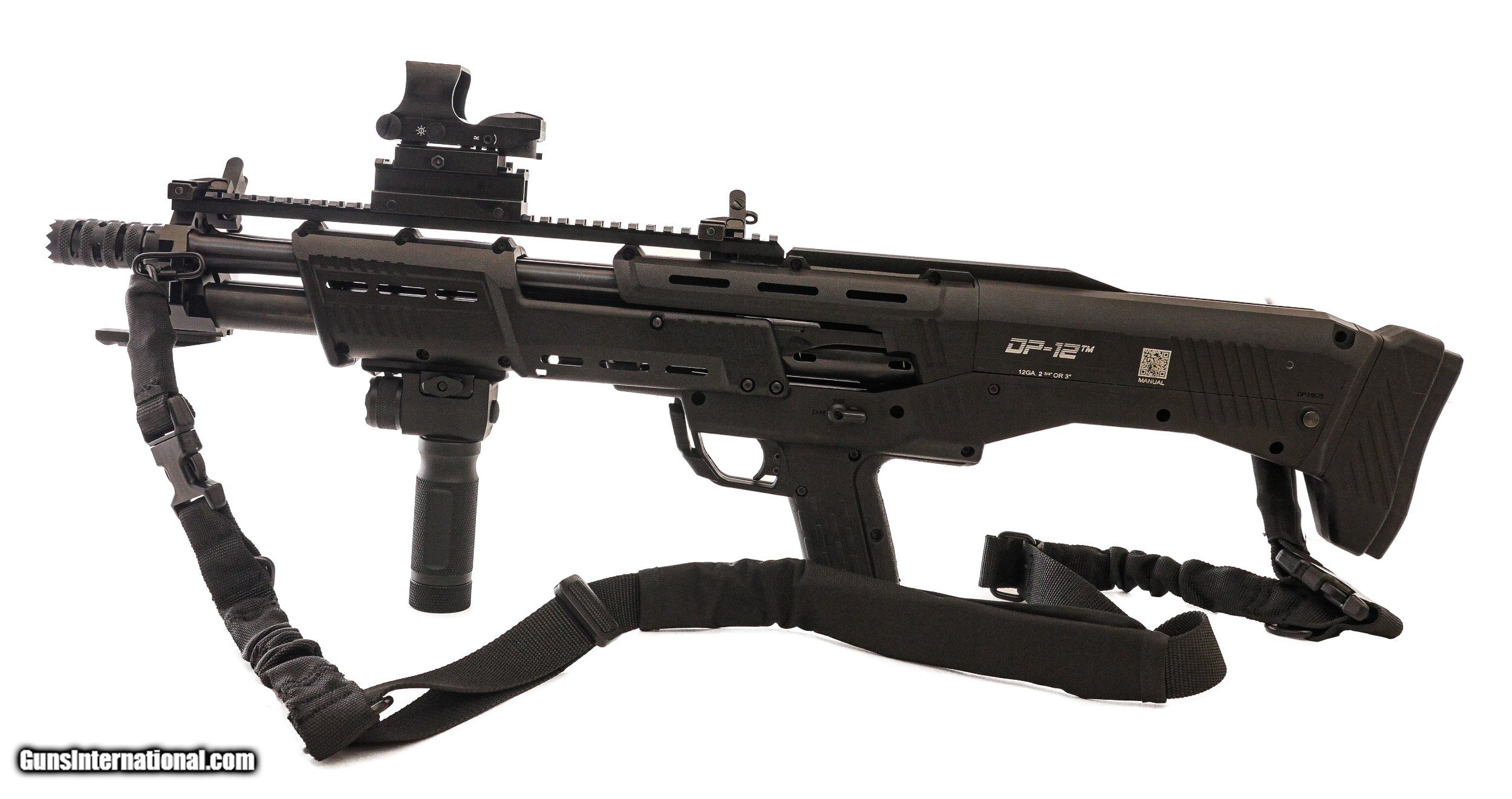 Description: Standard Manufacturing Company has raised the bar with this extraordinary shotgun that truly is one of kind that was manufactured in a state of the art facility. The innovative design and guaranteed functionality is well ahead of its time. Extreme detail has been a priority from conception through production of these double barrel repeater shotguns. The first of its kind, a premium defense, double barreled, pump, 12 gauge shotgun that quickly fires 16 rounds. Designed for the most discerning shooters who demand extreme firepower and require consistent reliability. The stock has a QR code you can scan with your smart phone or tablet to down load the manual and other information. Please be sure and fill out the warranty card and send it to Standard Manufacturing. The spreader choke tubes are designed to shoot a devastating pattern at 25 yards. The choke tubes have Tru-Choke thread patterns. Some pictures show door breachers, these are sold separately. The DP-12 provides accessory rails and slots that allow you to customize it with your own accessories. Ergonomically designed to balance the weight of a loaded gun for quick and efficient handling with minimal recoil. **PLEASE NOTE: This item MUST be shipped to Licensed Firearms Dealer. We will contact you for a copy of the FFL that you would like to use to transfer this firearm. ** Specs: Caliber: 12 Gauge Overall Length: 29.5" Weight (unloaded): 9 pounds 12 ounces Barrels: 2 x 18 7/8”, chambered for 2 ¾” or 3" shells Chokes: Both barrels include spreader choke tubes with Tru-Choke thread pattern Capacity: 14 rounds in magazine tubes + 2 in chambers - 16 total with indicator windows Action: pump action with two shots from single trigger, inline shell feeding Material: Machined from aircraft grade 7075 aluminum, Thermal coated receiver Controls: Ambidextrous safety, ambidextrous pump slide release Grip: Co-Molded non-slip rubber pistol grip, composite front vertical grip Stock: Synthetic stock Forend: Composite material with slots for MOE Rails Recoil Pad: Rubber with dual spring shock absorbing recoil mechanism Sling Points: Front sling attachment, sling swivel attachment on stock The Works Package #1 Includes: DP2000: Red Dot Reflex Sight DP2004: Aluminum Tactical Grip with Red Laser & Flashlight DP2010: 45° Offset Flip Up Sights DP2013: 1” High 8 Slot Riser DP2014: 4 piece MOE Rail Set DP2020: 2 Point Black Tactical Sling DP2024: 1” Swivel Set DP0209: Front Mounting Rail with Screw DP1999: Door Buster Door Breaching Chokes (DP1990 Stiletto Chokes available for an additional $75) Two Picatinny rails for accessories; seven slot rail on the bottom by the foregrip and a 13.75" 34 slot rail on top Choke tube wrench Heavy duty lock Instruction booklet and warranty card Assembly of accessories is required $50.00 Shipping SOLD |