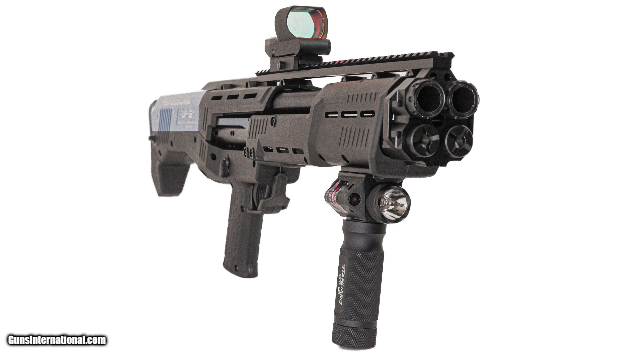 Description: THE DP12 PROFESSIONAL IS DESIGNED TO MEET THE MOST DEMANDING MILITARY AND LAW ENFORCEMENT REQUIREMENTS, THE EXTREME RELIABILTY OF THE DP-12 HAS BEEN FURTHER ENHANCED WITH THESE KEY FEATURES FOUND ONLY ON THE DP-12 PROFESSIONAL: AIRCRAFT GRADE ALUMINUM FRAME WITH MIL SPEC HARD ANODIZED FINISH ALL WEAR SURFACES PVD COATED FOR SMOOTH OPERATION AND CORROSION PROTECTION REFLEX SIGHT FEATURING MULTIPLE LEVELS OF BRIGTNESS HEAVY DUTY ALUMINUM FRONT GRIP WITH INTEGRAL LASER AND FLASH LIGHT MOUNTED TO RUGGED ALUMINUM PICATINNY RAIL HEAVY DUTY ALUMINUM MAGAZINE FOLLOWERS WITH A HARD COAT ANODIZED FINISH PRECISION HONED AND HAND LAPPED BORES AND CHAMBERS COMPLETELY HAND BUILT BY MASTER GUNSMITHS LIFETIME WARRANTY SOLD |