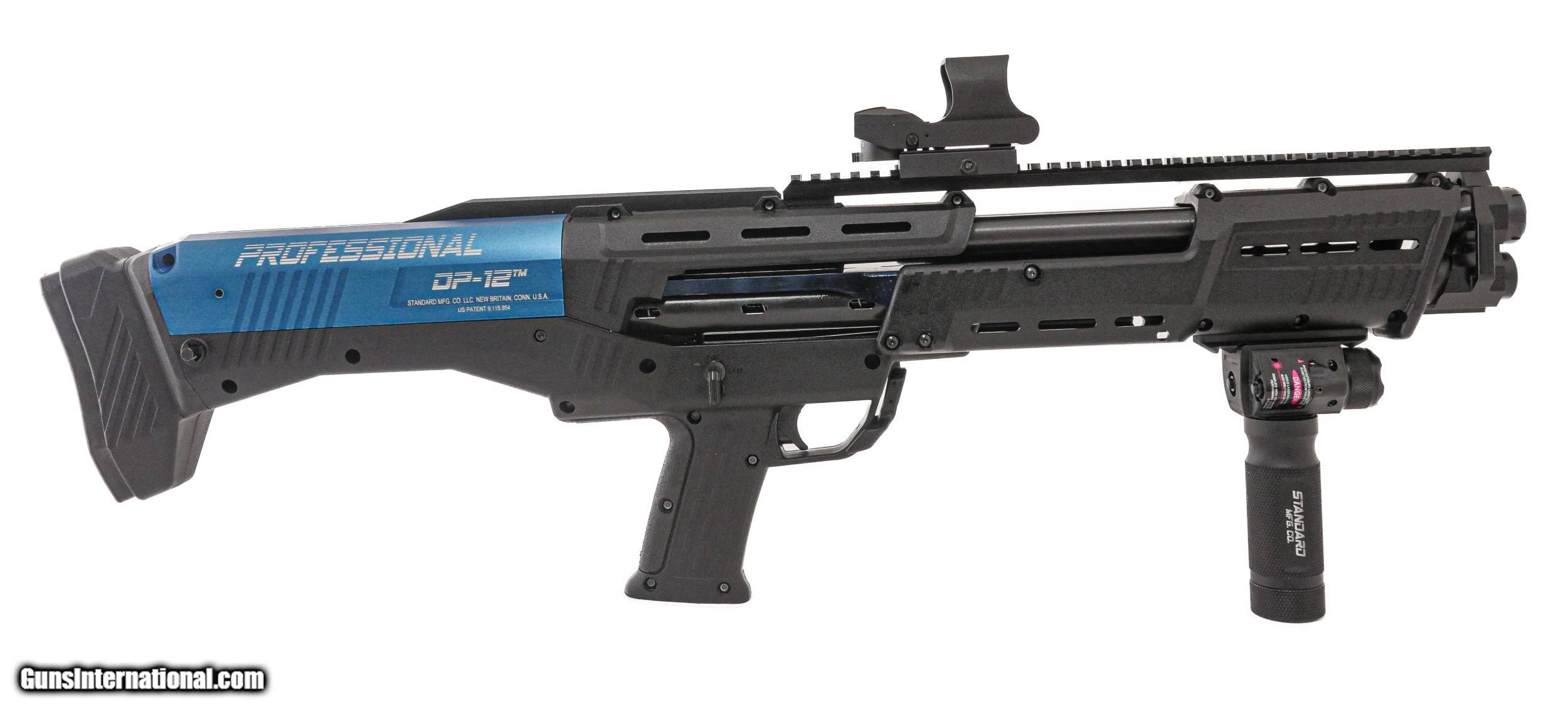 Description: THE DP12 PROFESSIONAL IS DESIGNED TO MEET THE MOST DEMANDING MILITARY AND LAW ENFORCEMENT REQUIREMENTS, THE EXTREME RELIABILTY OF THE DP-12 HAS BEEN FURTHER ENHANCED WITH THESE KEY FEATURES FOUND ONLY ON THE DP-12 PROFESSIONAL: AIRCRAFT GRADE ALUMINUM FRAME WITH MIL SPEC HARD ANODIZED FINISH ALL WEAR SURFACES PVD COATED FOR SMOOTH OPERATION AND CORROSION PROTECTION REFLEX SIGHT FEATURING MULTIPLE LEVELS OF BRIGTNESS HEAVY DUTY ALUMINUM FRONT GRIP WITH INTEGRAL LASER AND FLASH LIGHT MOUNTED TO RUGGED ALUMINUM PICATINNY RAIL HEAVY DUTY ALUMINUM MAGAZINE FOLLOWERS WITH A HARD COAT ANODIZED FINISH PRECISION HONED AND HAND LAPPED BORES AND CHAMBERS COMPLETELY HAND BUILT BY MASTER GUNSMITHS LIFETIME WARRANTY SOLD Shotgun Gauge: 12 Gauge |