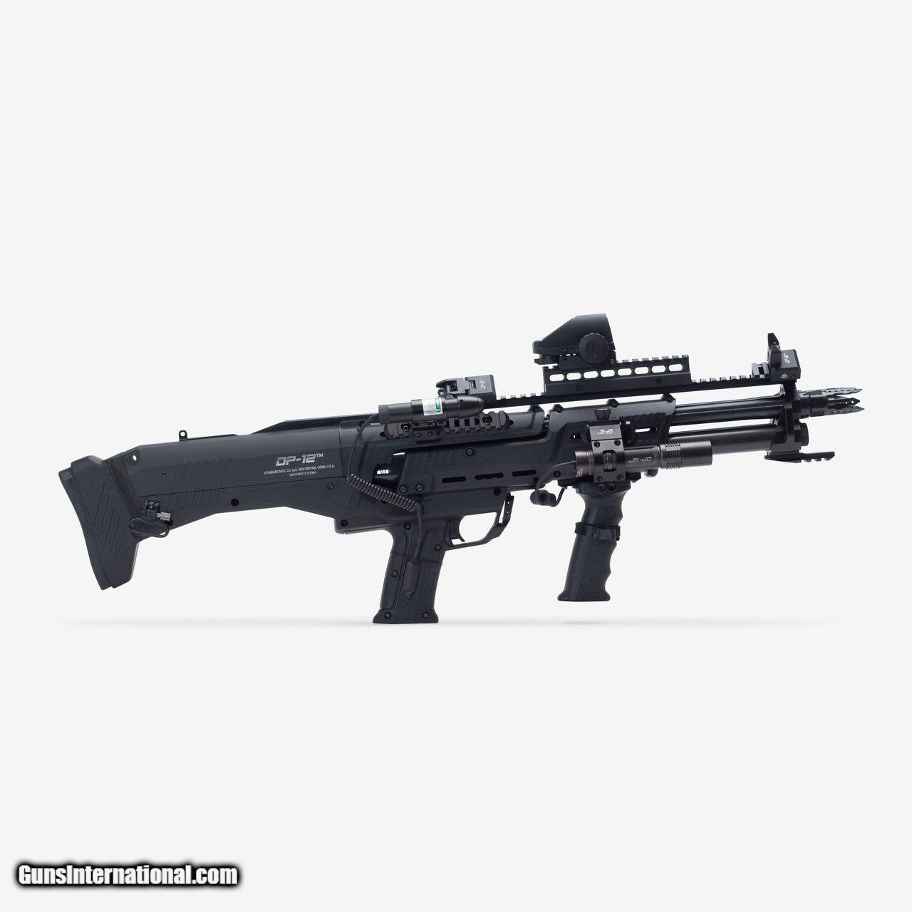 Description: Standard Manufacturing Company has raised the bar with this extraordinary shotgun that truly is one of kind that was manufactured in a state of the art facility. The innovative design and guaranteed functionality is well ahead of its time. Extreme detail has been a priority from conception through production of these double barrel repeater shotguns. The first of its kind, a premium defense, double barreled, pump, 12 gauge shotgun that quickly fires 16 rounds. Designed for the most discerning shooters who demand extreme firepower and require consistent reliability. The stock has a QR code you can scan with your smart phone or tablet to down load the manual and other information. Please be sure and fill out the warranty card and send it to Standard Manufacturing. The spreader choke tubes are designed to shoot a devastating pattern at 25 yards. The choke tubes have Tru-Choke thread patterns. Some pictures show door breachers, these are sold separately. The DP-12 provides accessory rails and slots that allow you to customize it with your own accessories. Ergonomically designed to balance the weight of a loaded gun for quick and efficient handling with minimal recoil. **PLEASE NOTE: This item MUST be shipped to Licensed Firearms Dealer. We will contact you for a copy of the FFL that you would like to use to transfer this firearm. ** Specs: Caliber: 12 Gauge Overall Length: 29.5" Weight (unloaded): 9 pounds 12 ounces Barrels: 2 x 18 7/8”, chambered for 2 ¾” or 3" shells Chokes: Both barrels include spreader choke tubes with Tru-Choke thread pattern Capacity: 14 rounds in magazine tubes + 2 in chambers - 16 total with indicator windows Action: pump action with two shots from single trigger, inline shell feeding Material: Machined from aircraft grade 7075 aluminum, Thermal coated receiver Controls: Ambidextrous safety, ambidextrous pump slide release Grip: Co-Molded non-slip rubber pistol grip, composite front vertical grip Stock: Synthetic stock Forend: Composite material with slots for MOE Rails Recoil Pad: Rubber with dual spring shock absorbing recoil mechanism Sling Points: Front sling attachment, sling swivel attachment on stock The Works Package #1 Includes: DP2001: Reflex Sight CXHD113 DP2010: Flip up Iron AR-15 Style Backup Sights DP2011: 45° Offset Sight Mounts (2 required) DP2012: 1” High 13 Slot Riser DP2014: 4 piece MOE Rail Set DP2020: 2 Point Black Tactical Sling DP2024: 1” Swivel Set DP2040: Tactical Flashlight with Strobe DP2042: Remote Switch for Flashlight DP2045: 45° Offset Flashlight Mount DP2051: Green Laser DP0209: Front Mounting Rail with Screw DP1999: Door Buster Door Breaching Chokes *DP1990: Stiletto Chokes available for an additional $75.00 Two Picatinny rails for accessories; seven slot rail on the bottom by the foregrip and a 13.75" 34 slot rail on top Choke tube wrench Heavy duty lock Instruction booklet and warranty card * The accessories do not come assembled onto the DP-12. We offer assembly at an additional charge of $175.00 * SOLD |