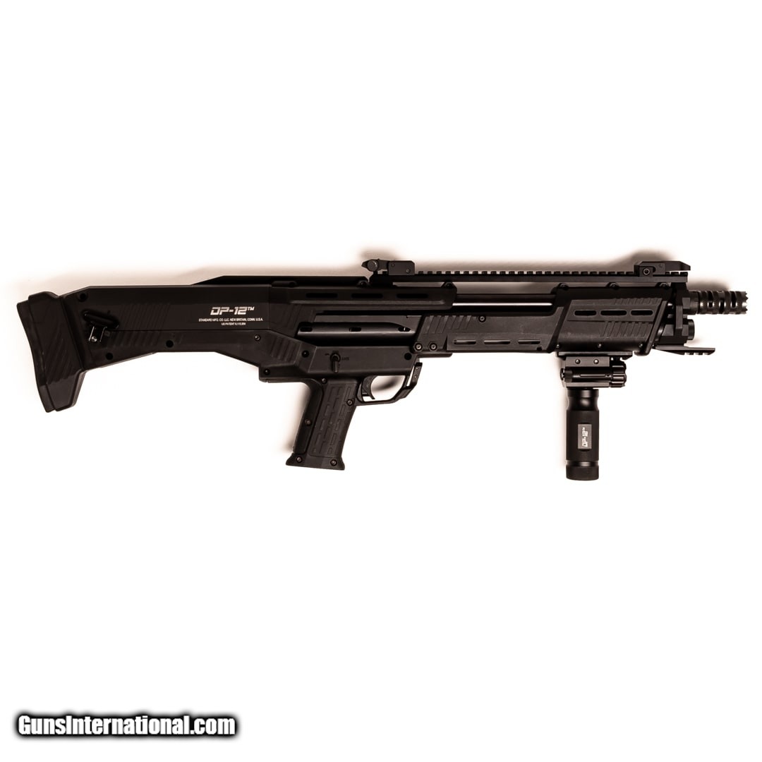 Description: Guns Listing ID: 651476 The first of its kind, this Standard Manufacturing DP-12 is a premium defense double-barreled pump-action 12-gauge shotgun. It was designed for the most discerning shooters who demand extreme firepower and require consistent reliability. This fast-shooting DP-12 has a 3\" chamber, cylinder Tactical Door Buster choke, vertical grip, flip-up sights, and a light and laser combo. Get the best bang for your buck when you get a Certified Used Firearm . When you see the Certified Used stamp on any of our firearms, you can be confident that you’re getting exactly what you want – a gun only in very good to excellent condition and held to the highest quality standard. All Certified Used Guns come with a ‘no questions asked’ return policy . PLUS, ALL CERTIFIED USED GUNS SHIP FREE! SOLD Manufacturer: STANDARD MANUFACTURING Model: DP-12 Condition: Used - Certified Barrels: 18.5 barrel Gauge Info: 12 GA Finish: BLACK |