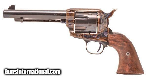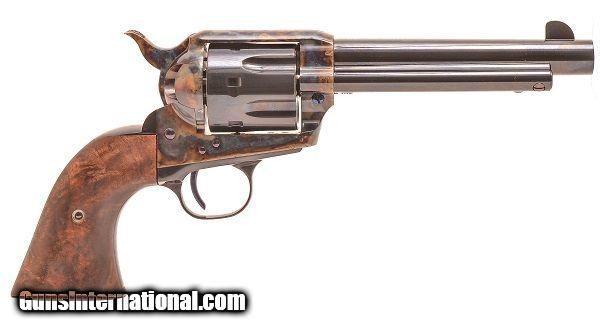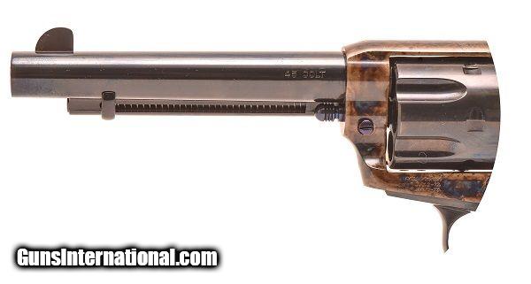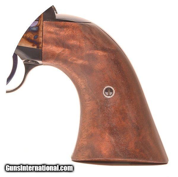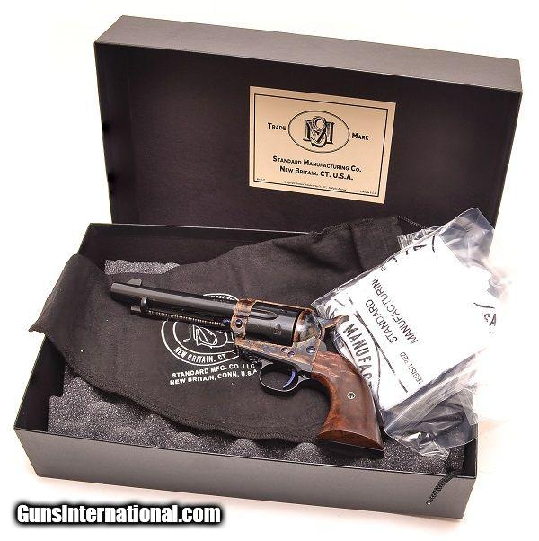 Description: Never before in history has an effort been put forth to produce the finest single action revolver. To start, this entire gun is made of solid 4140 steel; there are no inferior cast or metal injection molded parts used. No other maker of this type of gun can make such a claim. Additionally, the precision machining equipment used in the manufacture of our guns is the absolute finest in the industry and because the machining is done in-house, quality is carefully controlled. Even the very best parts are of little value without the hands and minds of experienced gunsmiths. The master gunsmiths here at Standard Manufacturing are versed in making iconic guns that include the Ansley H. Fox, Parker, and Model 21 double shotguns. Upon close inspection of our Single Action Revolver, you will immediately recognize that this gun is something very special. With its perfect fit between all of the parts to the hand polishing and stoning. From the deep blued finishes to the traditional bone and charcoal color case hardening on all of the metal surfaces.Even all of the screws are perfectly timed from north to south. Our Single Action Revolver is true to form, which is to say the man who designed this gun originally would immediately recognize it as his own, as would the legends of the Wild West. These guns are available for immediate delivery starting at $1,895, plus $40 shipping and handling to your local FFL dealer. As a special introductory and limited time offer, we are providing a lifetime warranty on these Single Action Revolvers. If you do not agree with any of our statements upon receipt of this gun, we will 100% refund your money and pay return shipping. Specifications and Features Action Type: Single Action, with cone shaped firing pin and no transfer bar Caliber: .45 LC Capacity: 6 Barrel Length: 4 ¾”, 5 ½”, 7 ½” Hammer Type: Spurred and bone and charcoal color case hardened Grips: Hand made and fitted 2 piece Fancy Walnut Sights: Fixed Weight: 40 oz. (approx.) Finish: Frame is bone and charcoal color case hardened Barrel, cylinder, and metal parts are deep blued All screws and pins are fire blued. SOLD |