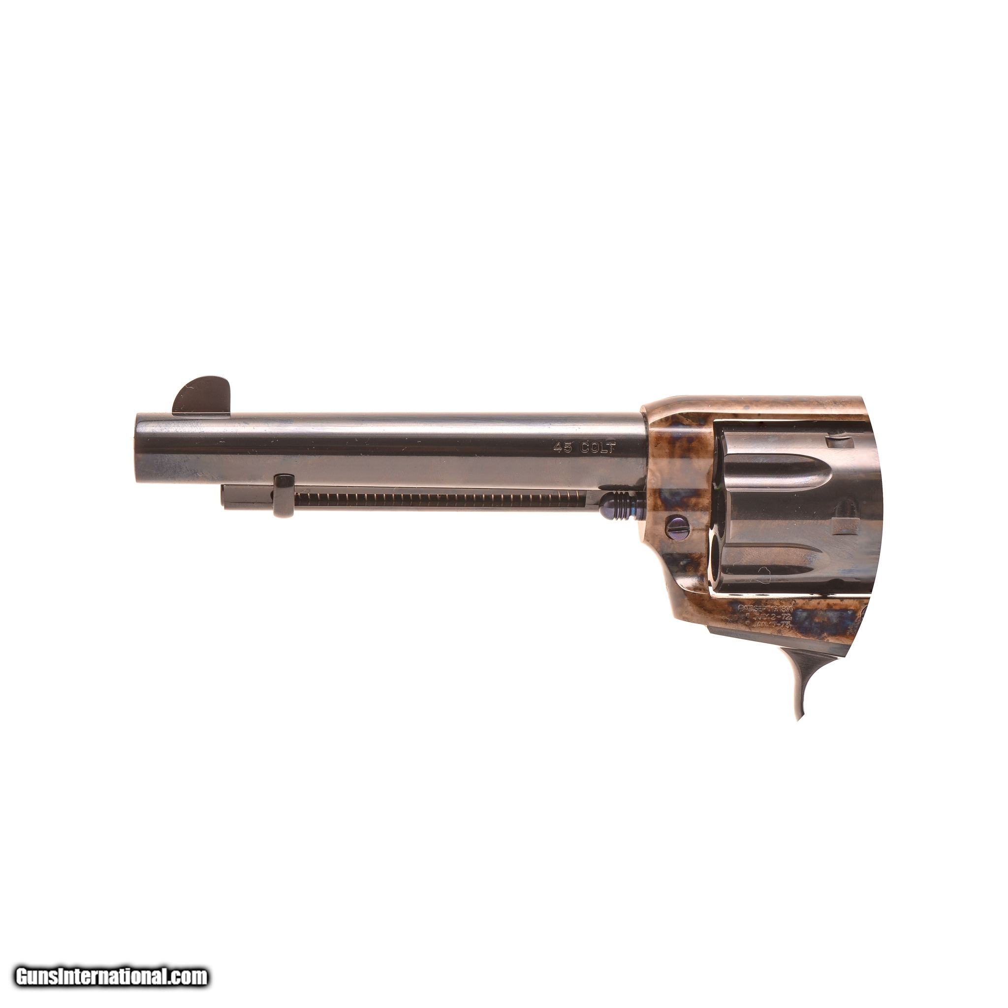 Description: Never before in history has an effort been put forth to produce the finest single action revolver. To start, this entire gun is made of solid 4140 steel; there are no inferior cast or metal injection molded parts used. No other maker of this type of gun can make such a claim. Additionally, the precision machining equipment used in the manufacture of our guns is the absolute finest in the industry and because the machining is done in-house, quality is carefully controlled. Even the very best parts are of little value without the hands and minds of experienced gunsmiths. The master gunsmiths here at Standard Manufacturing are versed in making iconic guns that include the Ansley H. Fox, Parker, and Model 21 double shotguns. Upon close inspection of our Single Action Revolver, you will immediately recognize that this gun is something very special. With its perfect fit between all of the parts to the hand polishing and stoning. From the deep blued finishes to the traditional bone and charcoal color case hardening on all of the metal surfaces.Even all of the screws are perfectly timed from north to south. Our Single Action Revolver is true to form, which is to say the man who designed this gun originally would immediately recognize it as his own, as would the legends of the Wild West. These guns are available for immediate delivery starting at $1,895, plus $40 shipping and handling to your local FFL dealer. As a special introductory and limited time offer, we are providing a lifetime warranty on these Single Action Revolvers. If you do not agree with any of our statements upon receipt of this gun, we will 100% refund your money and pay return shipping. Specifications and Features Action Type: Single Action, with cone shaped firing pin and no transfer bar Caliber: .45 LC Capacity: 6 Barrel Length: 4 ¾”, 5 ½”, 7 ½” Hammer Type: Spurred and bone and charcoal color case hardened Grips: Hand made and fitted 2 piece Fancy Walnut Sights: Fixed Weight: 40 oz. (approx.) Finish: Frame is bone and charcoal color case hardened Barrel, cylinder, and metal parts are deep blued All screws and pins are fire blued. SOLD |